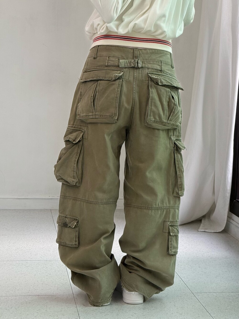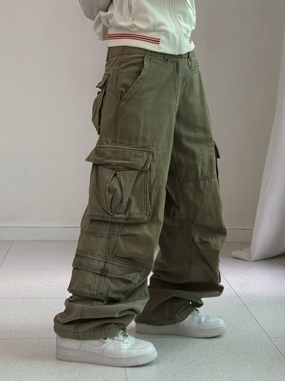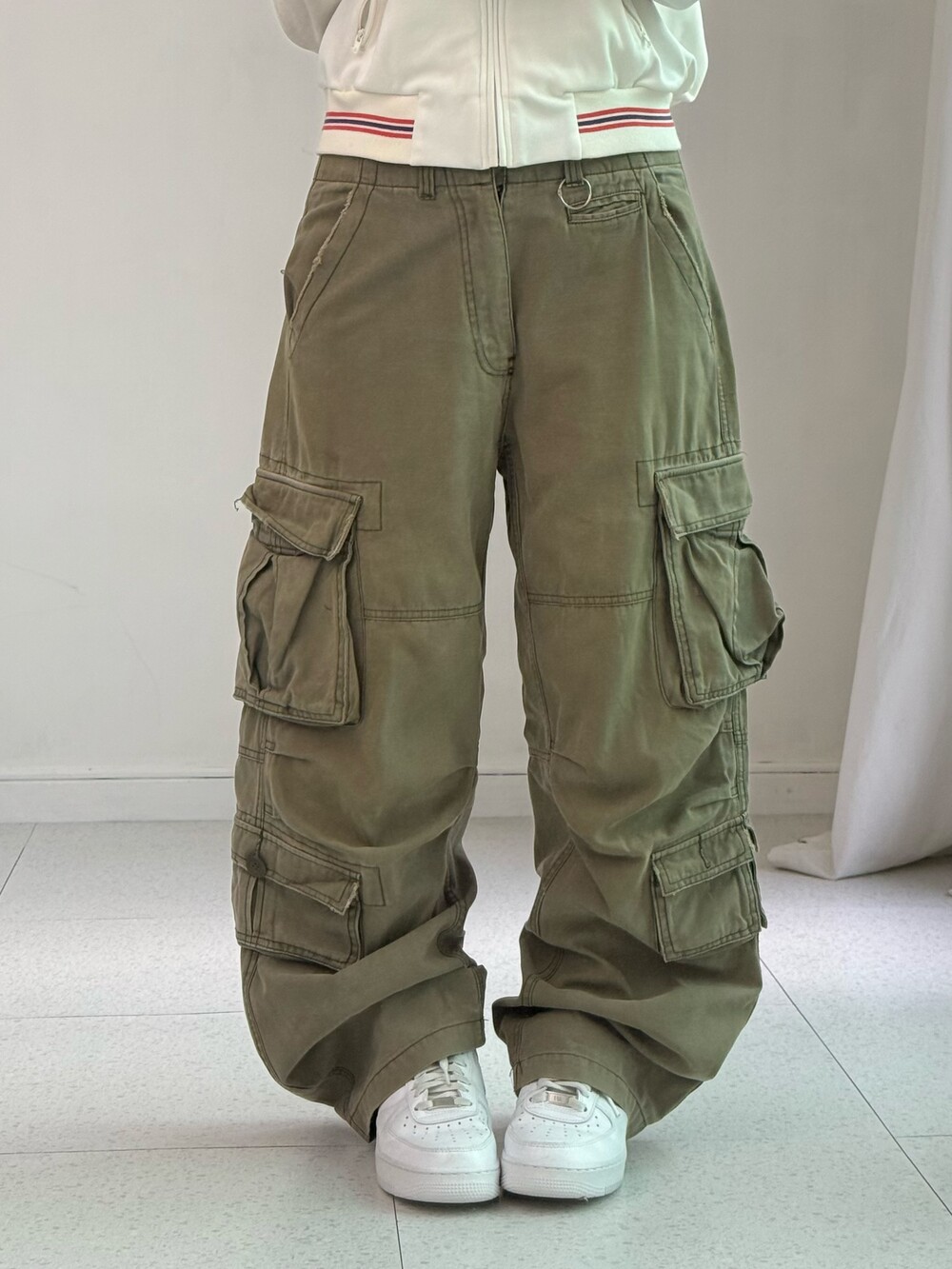 •멀티포켓 디자인 카키 카고팬츠 입니다. 적당한 와이드루즈함이라 부담 없이 휘뚤마뚤 입어주시기 좋은 아이템이에요ㅎㅎ