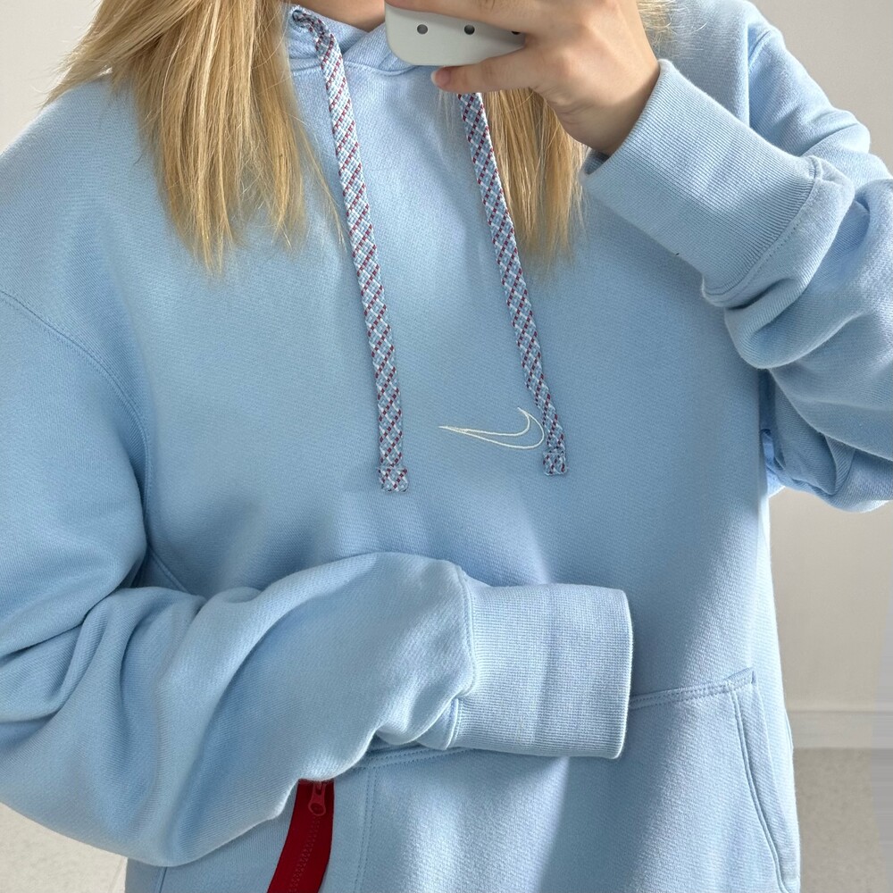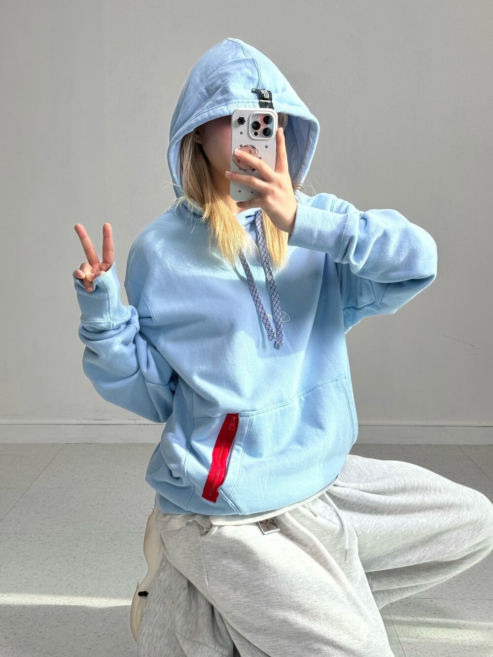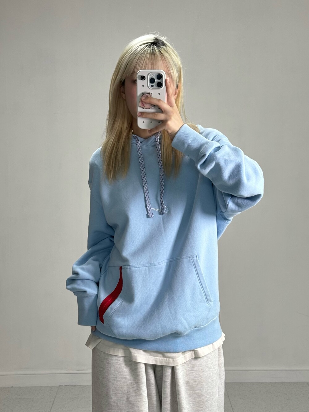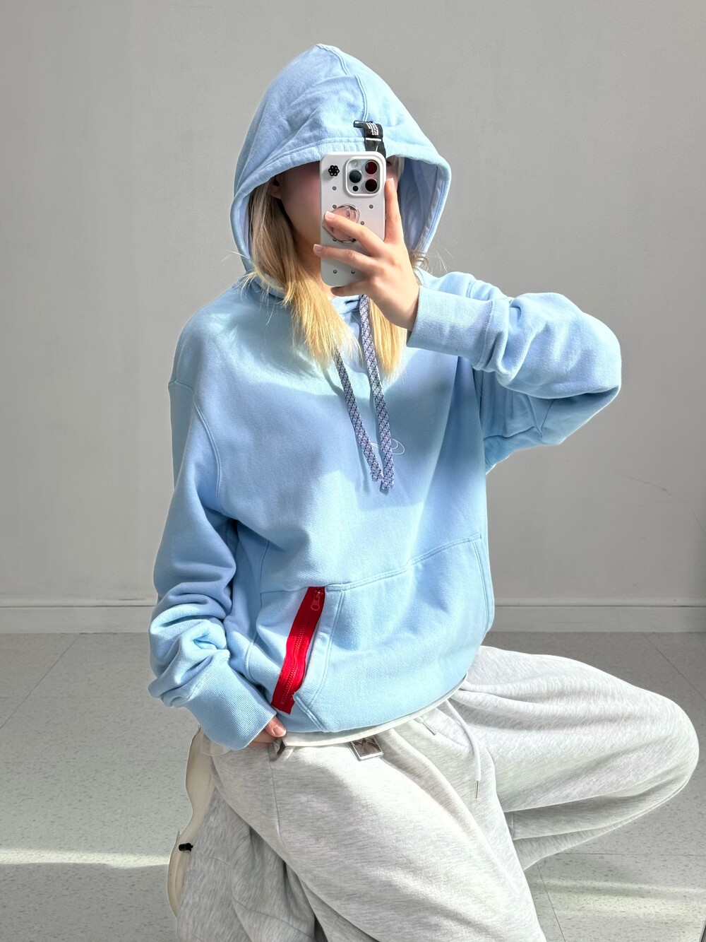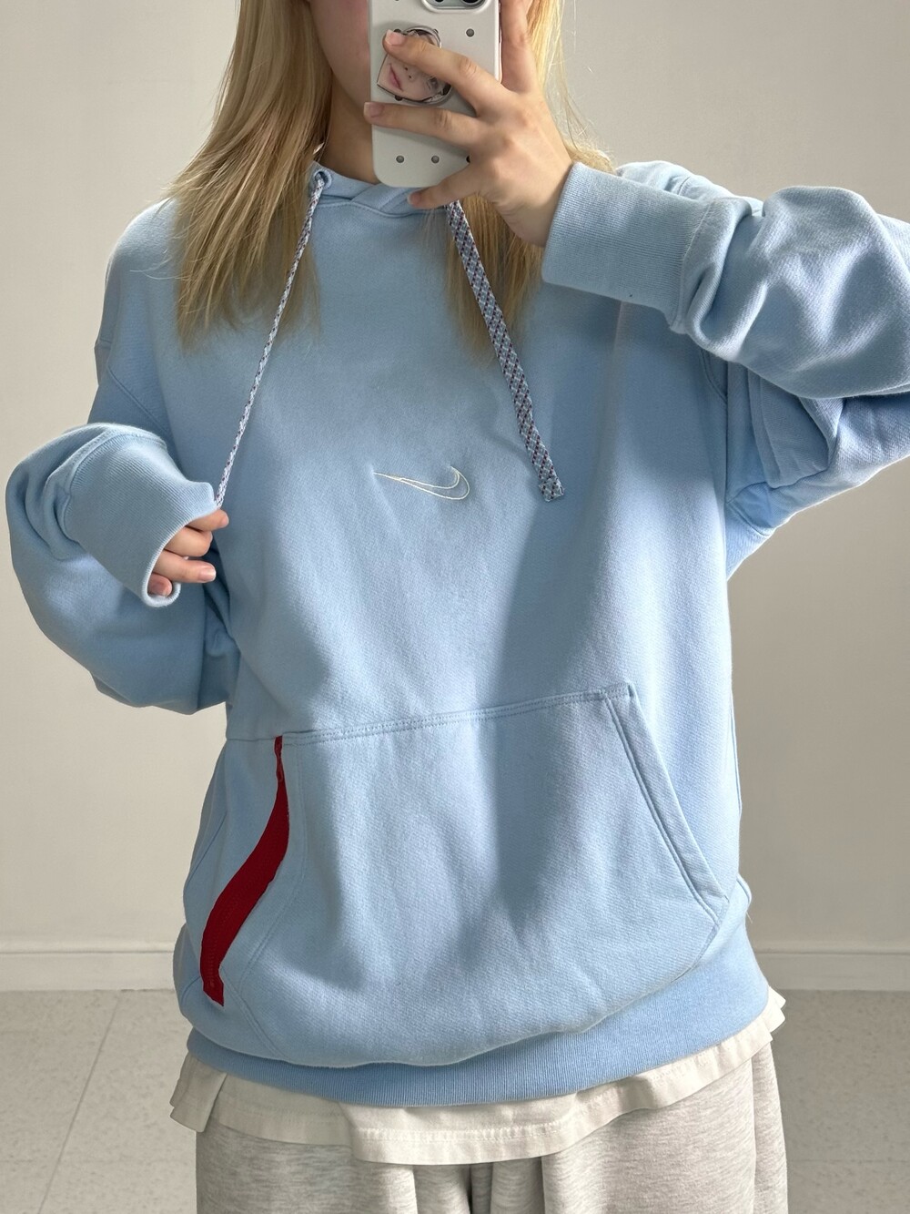 •스카이블루 컬러가 너무 폭닥스,, 사랑스러운 컬러감과 아방핏이 예쁜 후디에요! 주머니에 레드 지퍼 포인트가 들어가있어 더욱 독특하구 중간에 나이키 스우시가 들어가있어 완전 매력덩이랍니닷