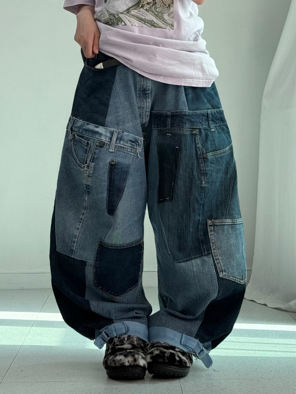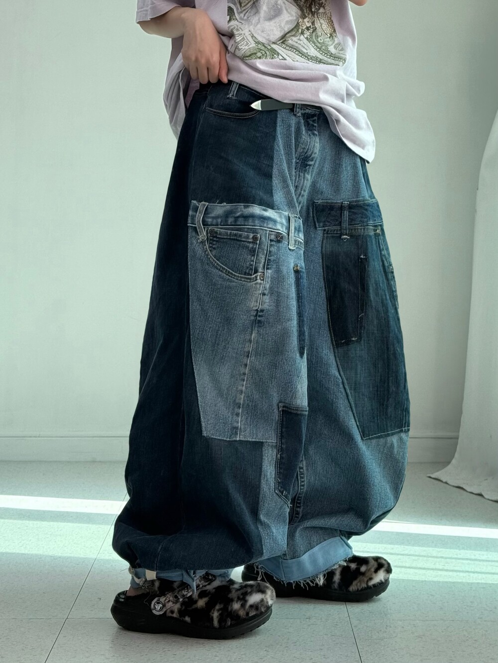 •서로 다른 디자인의 데님들이 모여 만들어진 극레어템! 심지어 벌룬핏이라 더욱 힙하게 입어주시기 좋습니다ㅎ.ㅎ