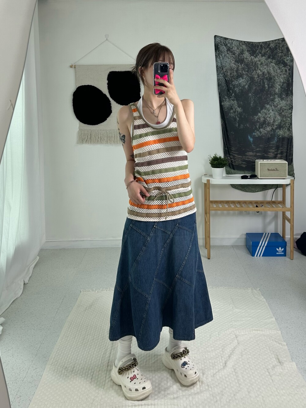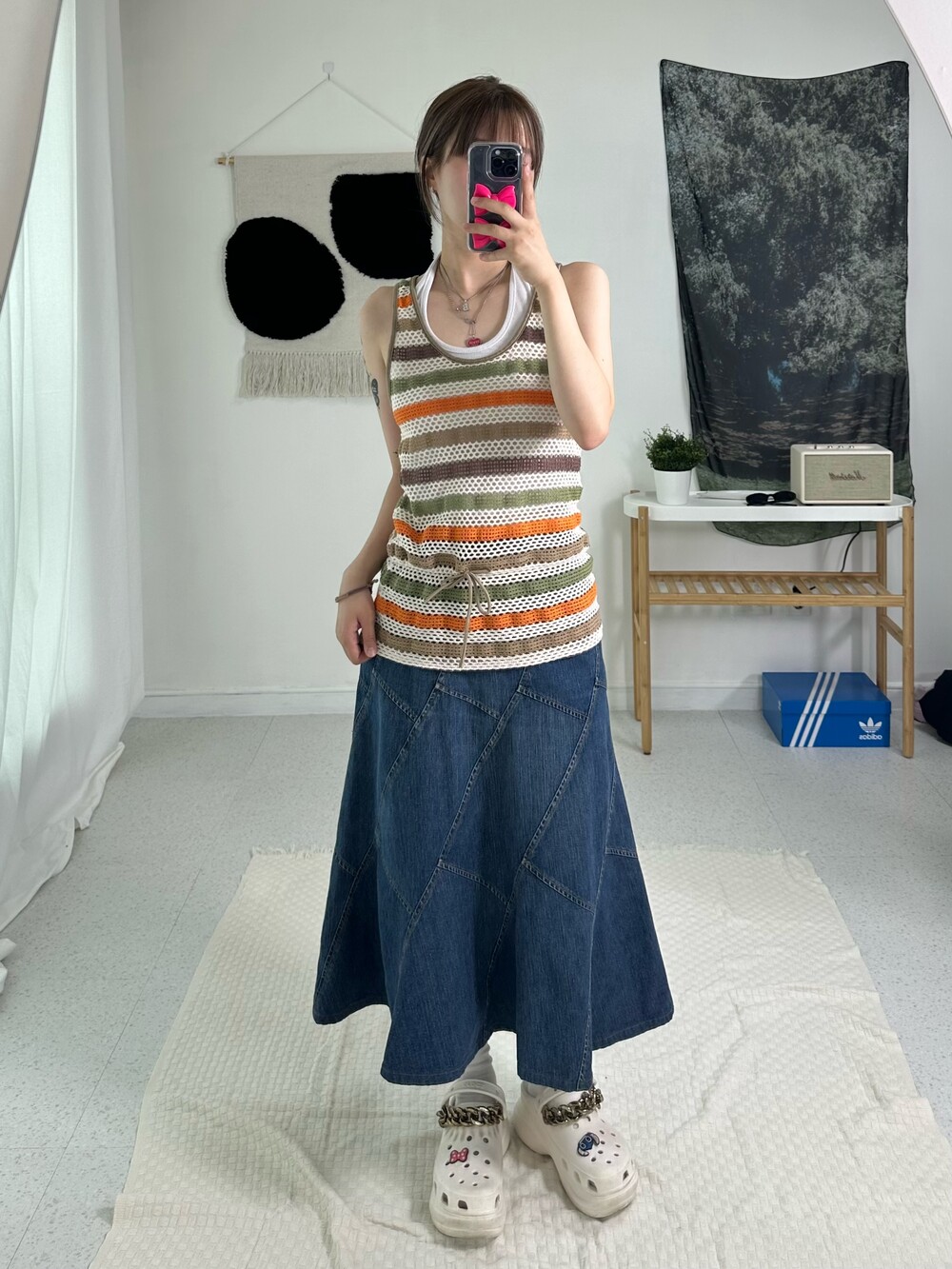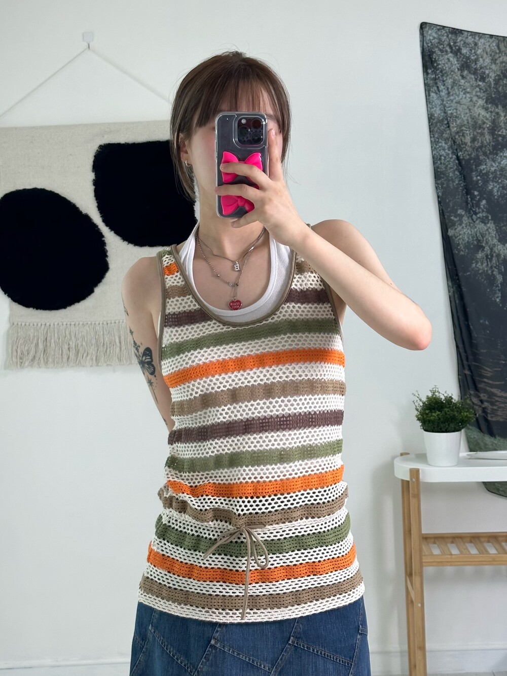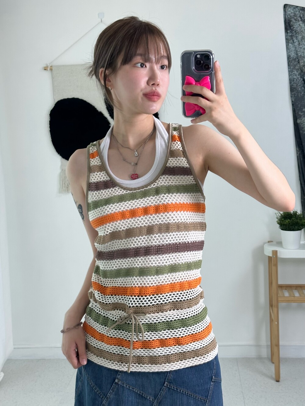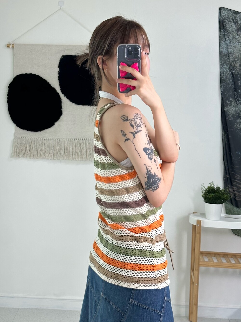 •에스닉하고 귀여운 느낌이 가득한 메쉬 슬리브리스에요! 허리를 잡아줄 수 있는 리본이 있어 라인을 살려줄 수 있고 가을에는 레이어드로 착용해주시는것도 좋아요! 실물이 더 예쁜 강추템👍🏻