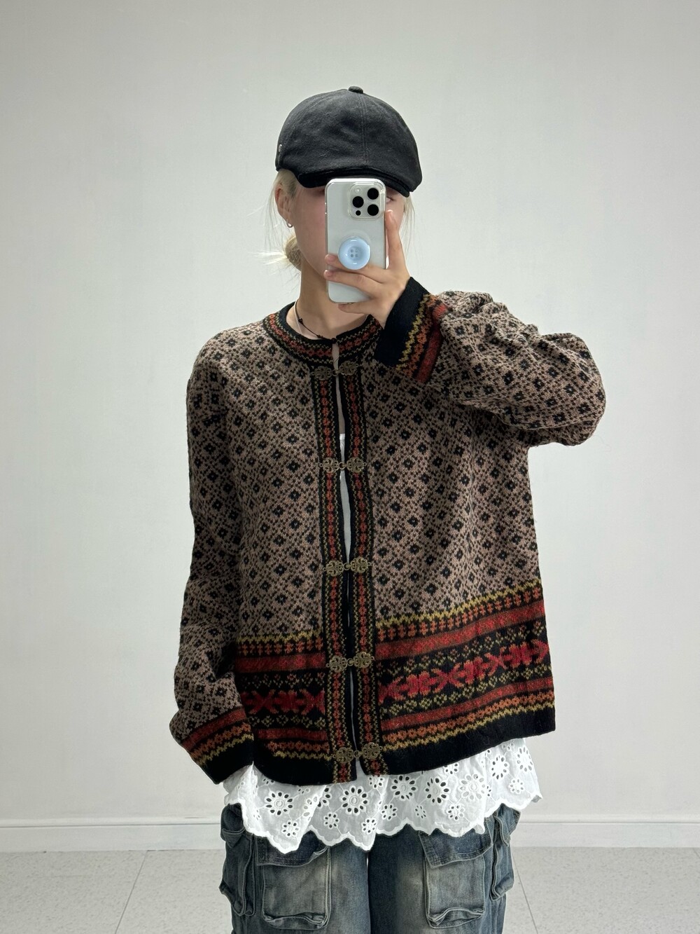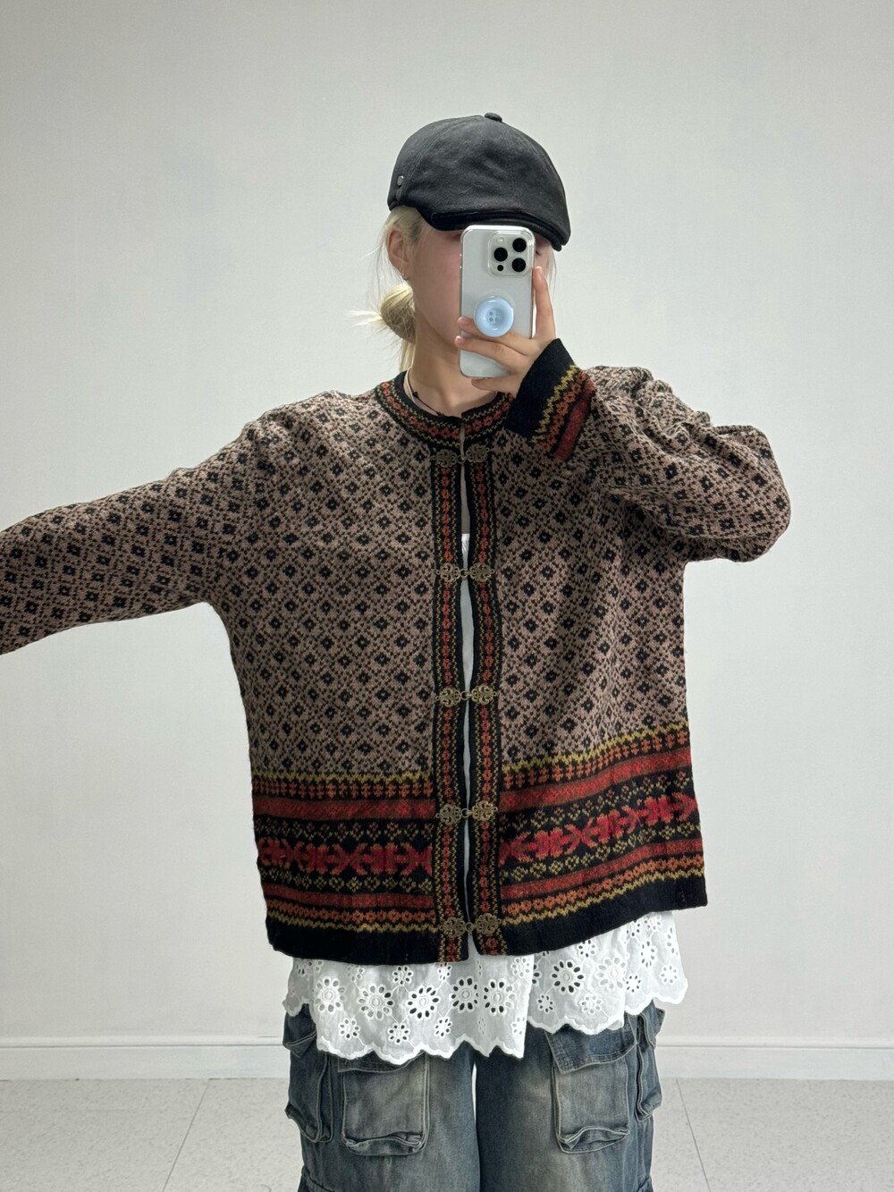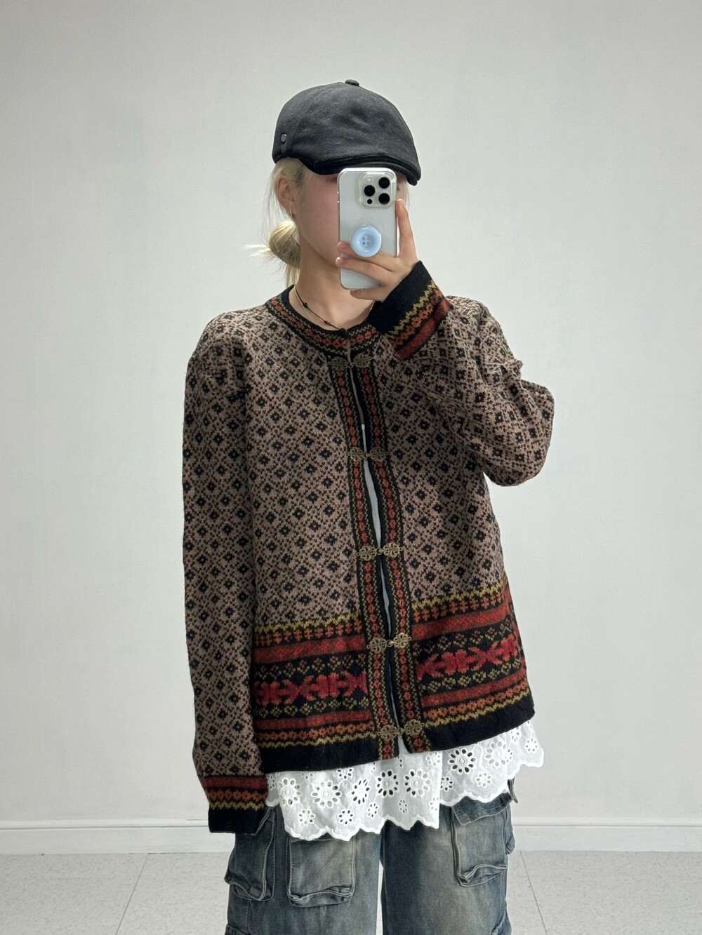 •유럽에서 건너온 노르딕 후크 가디건이에요! 전체적으로 브라운톤이라 코디하기 어렵지 않고 빈티지스러움과 앤틱한 느낌이 가득한 멋쟁이 가디건이랍니닷 ㅎㅎ🖤