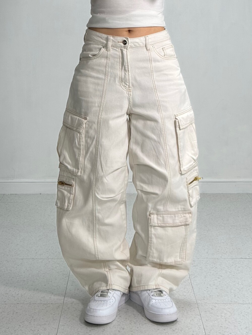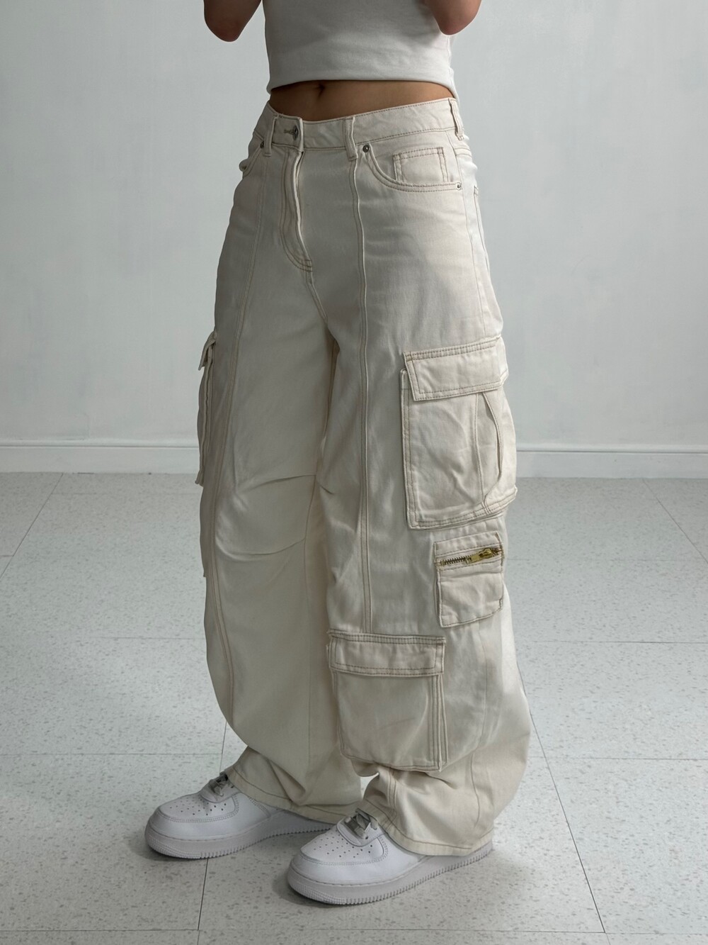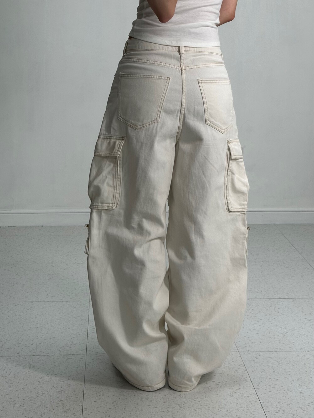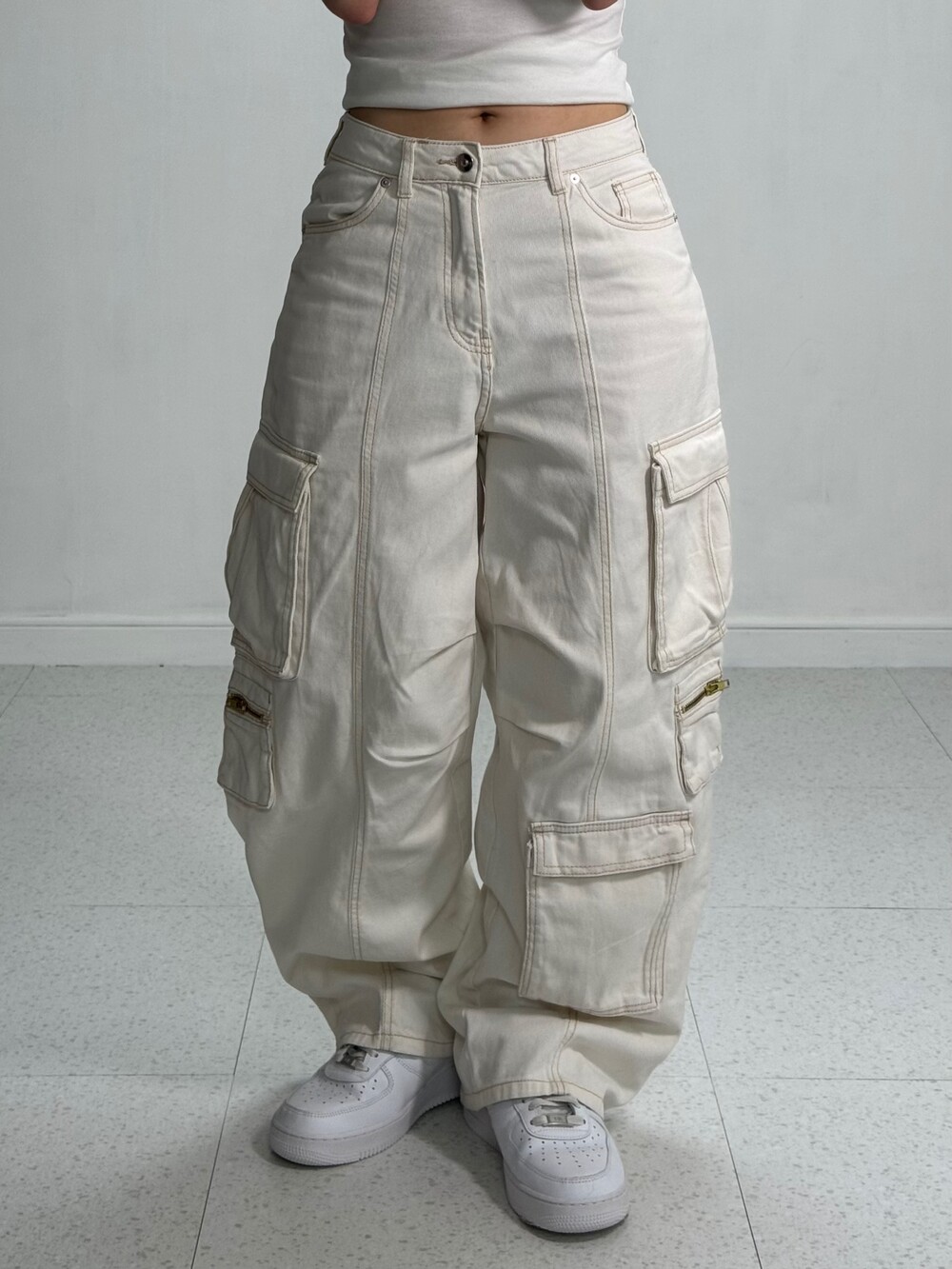 •멀티포켓 디자인이 넘 예쁜 아이보리 카고 입니다! 루즈한 느낌이 낭낭하여 더욱 멋스러워요>,<