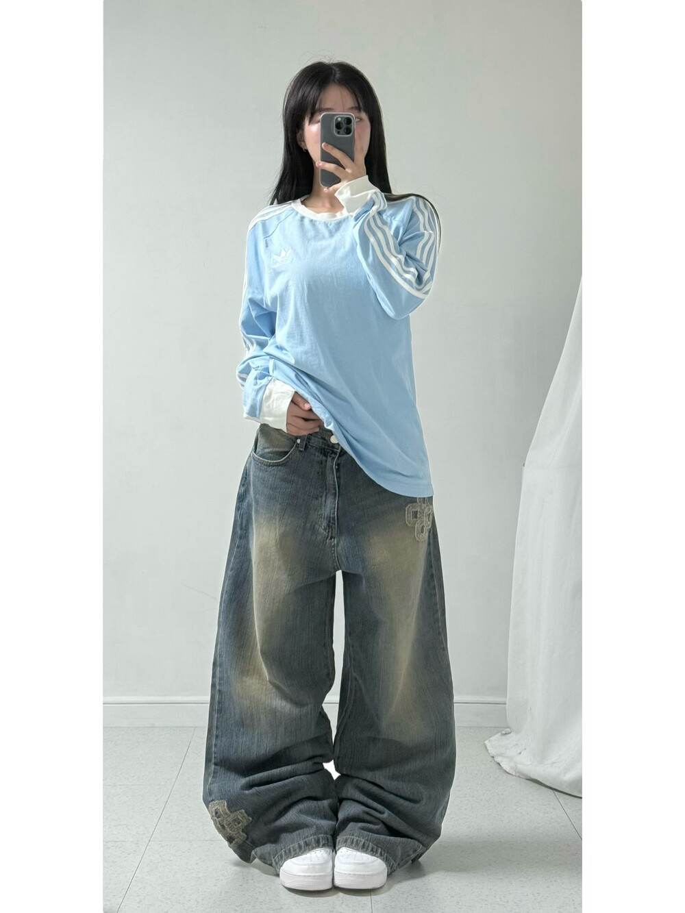 • 무오데 유일 매물 스카이블루 대대장 나그랑 입니다! 소매가 긴 편이라 여리여리하게 입어주시기 좋아요! 뽀오얀 스카이블루 컬러가 미쳤숩니다ㅜㅜ