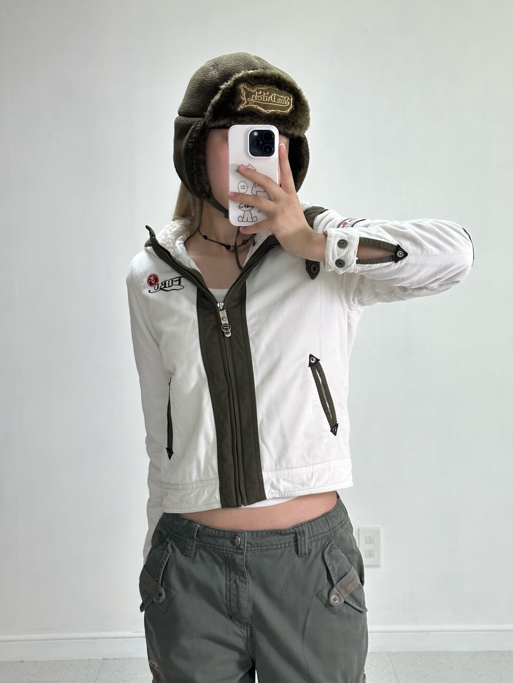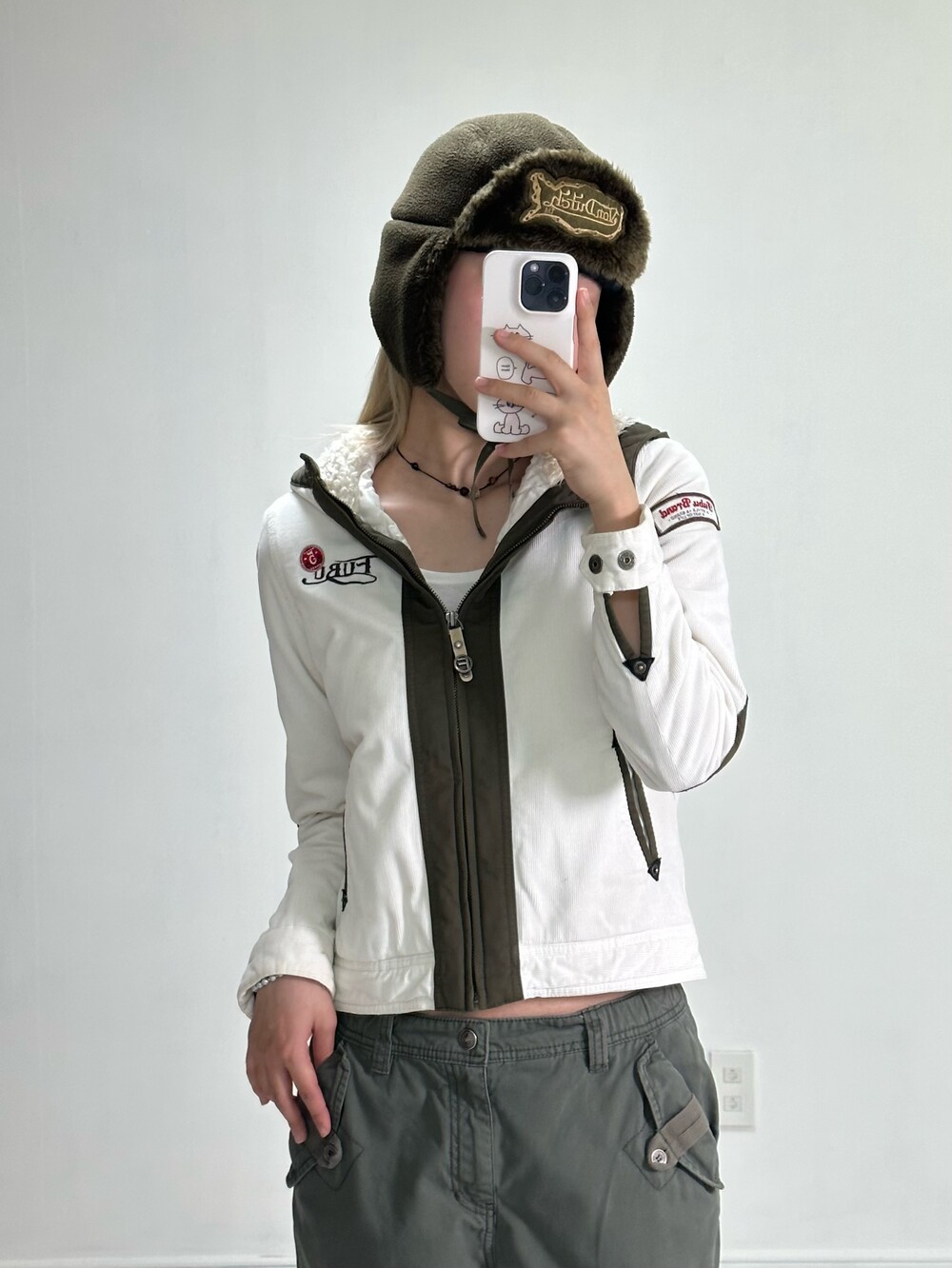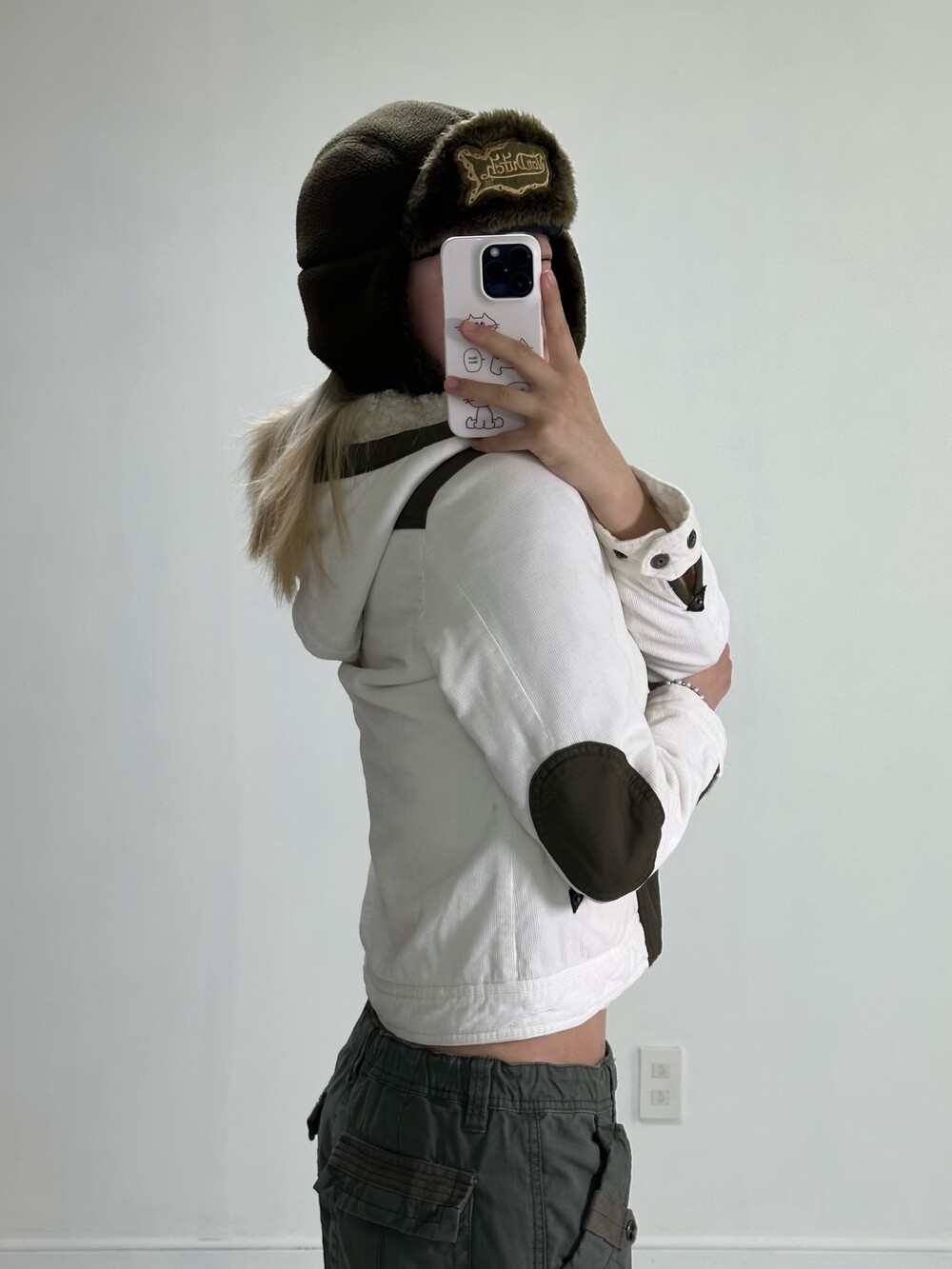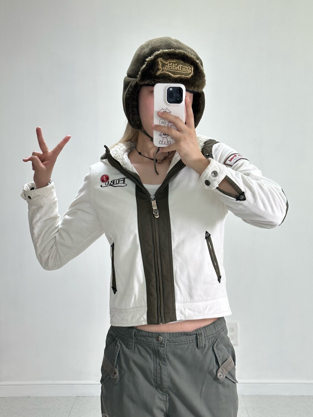 •완전 희귀매물! 푸부 자켓이에요 ㅎㅎ 코듀로이 원단이며 팔꿈치에 동그라미 패치가 들어가있어 엄청 귀엽죠.. 화이트와 카키 조합이라 깔끔하며 후드는 양털원단 안감은 누빔이라 겨울에도 충분히 착용가능하세요!