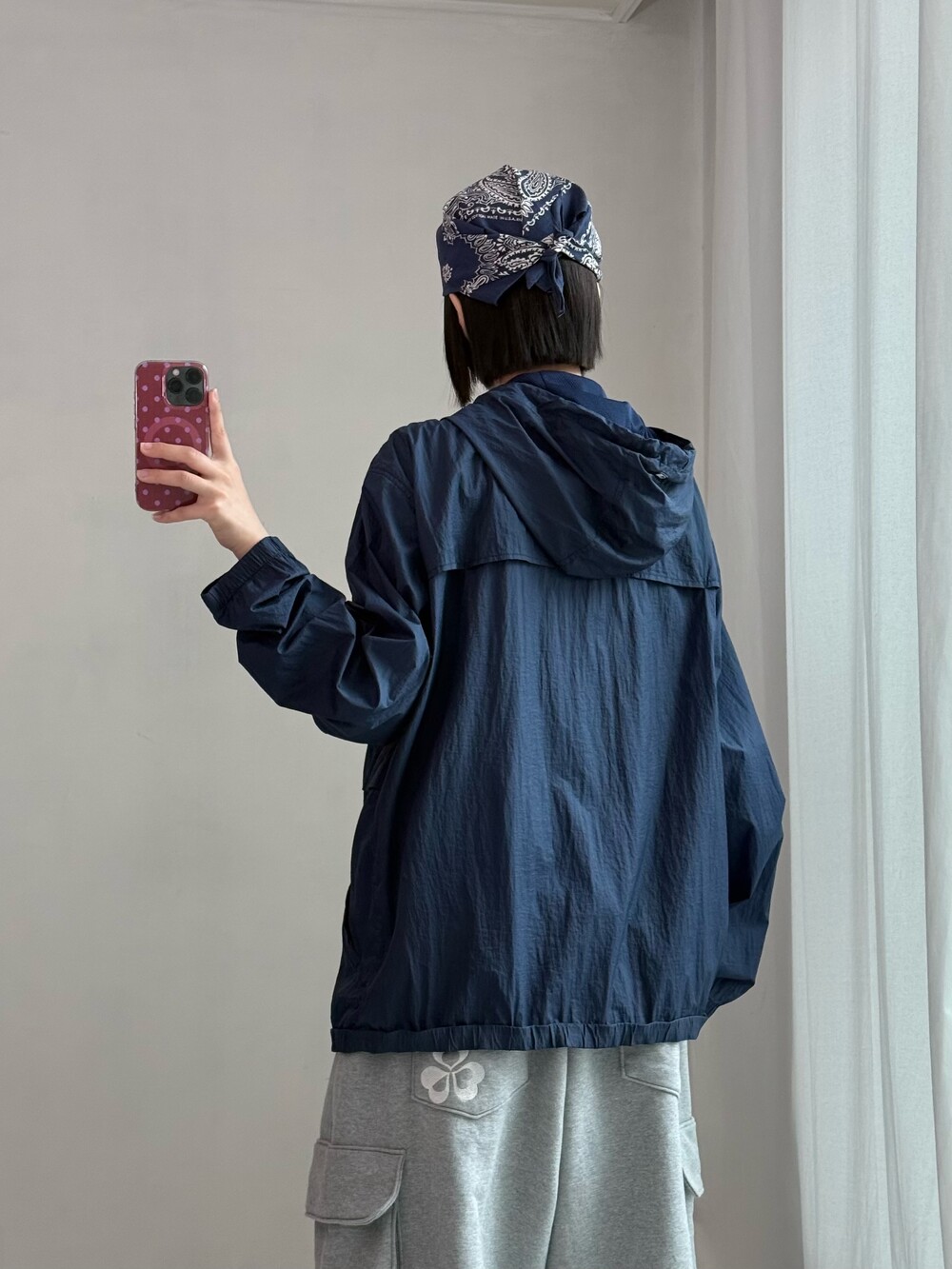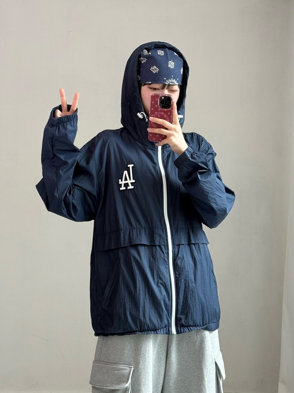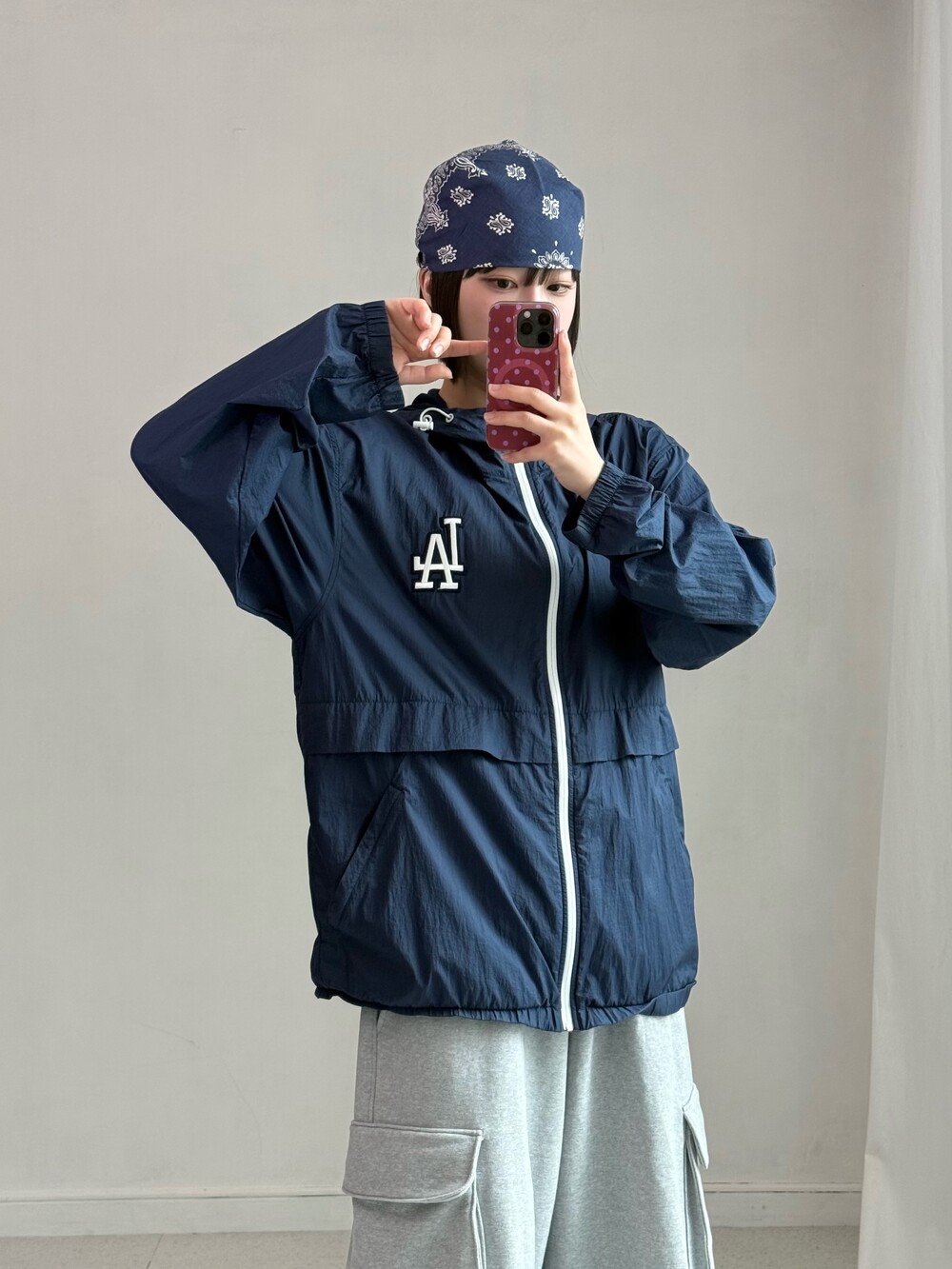 •엠엘비 네이비 후드 바람막이 입니다! 오버핏으로 떨어지는 제품이에요ㅎㅎ 봄 여름 가을 모두 착용해주시기 좋은 데일리템이에요!