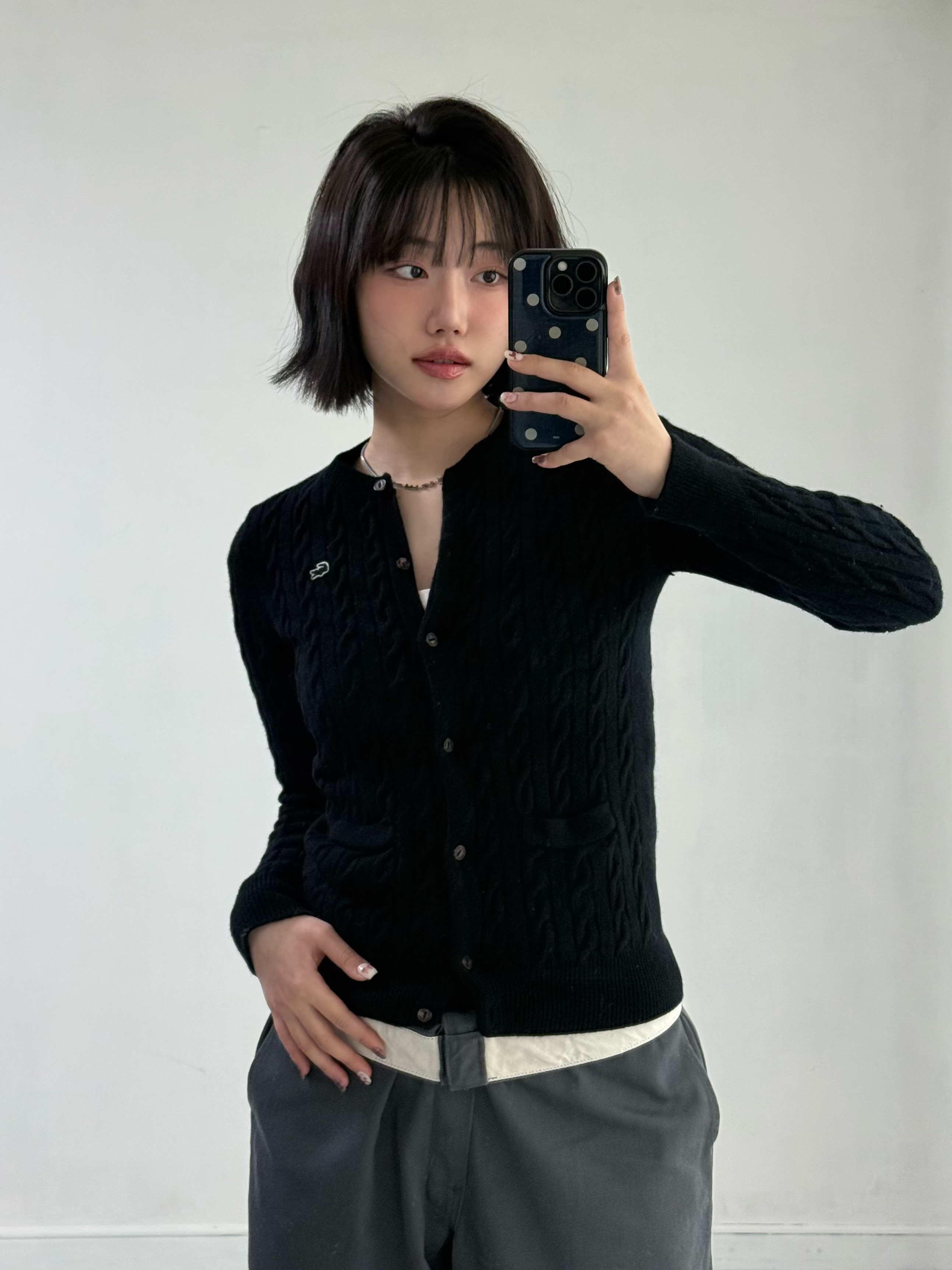 •라코스테 블랙 딱붙핏 가디건 입니다ㅎ.ㅎ 깔끔 무드로 입어주시기 좋아요!