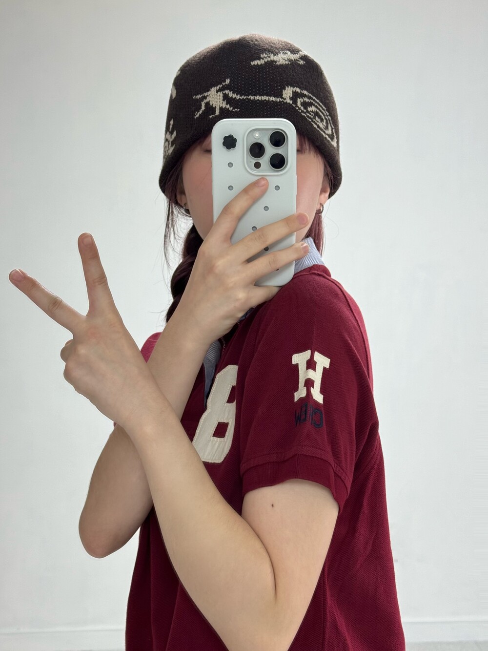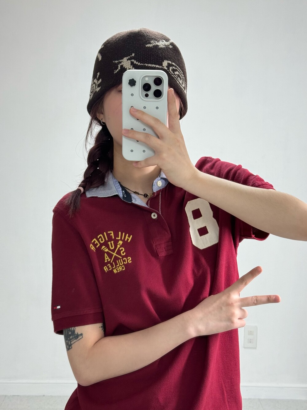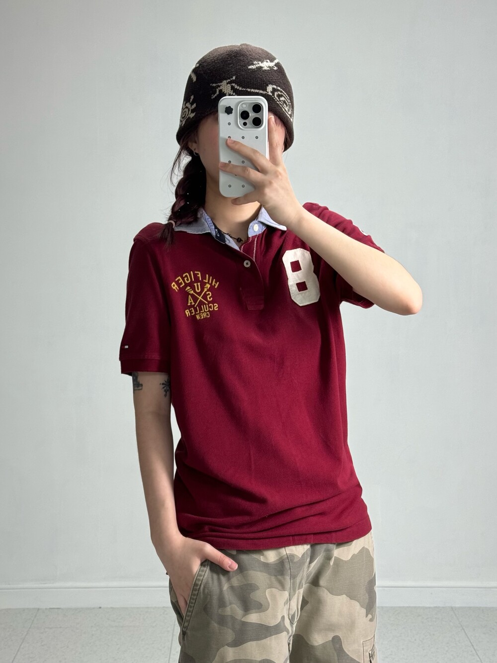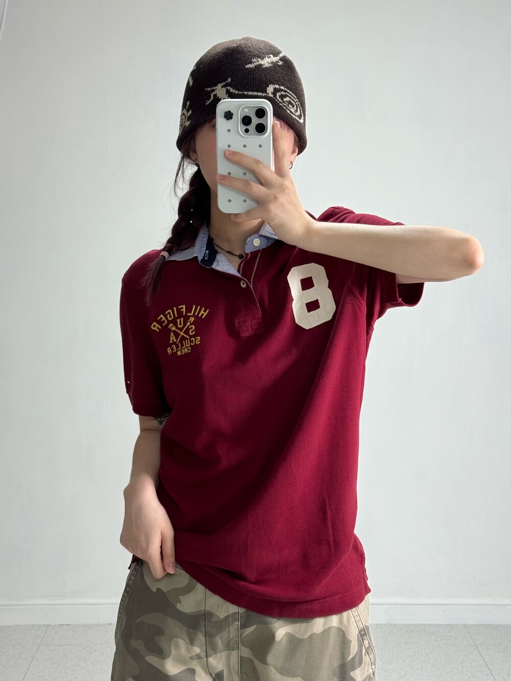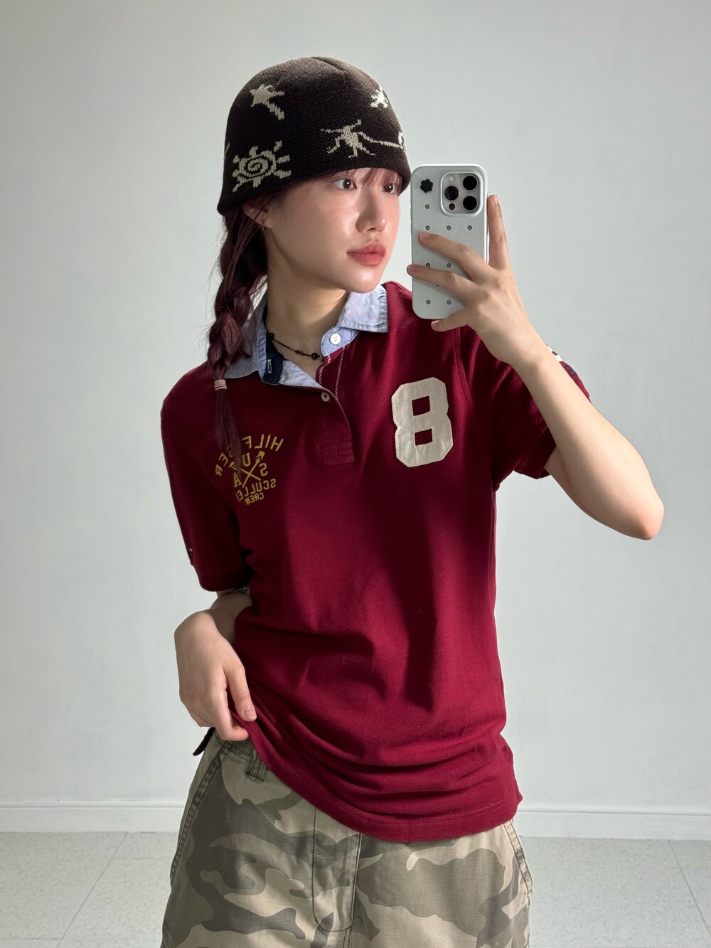 •인기만점 버건디 컬러에 귀여운 디자인까지 100점 만점에 1억점 주고 싶은 반팔.. 살짝 루즈하게 떨어지는 핏감이라 더 예뻐요-! 요즘 버건디 컬러 많이들 찾아주시는데 저도 요즘 흠뻑 빠졌답니다..>,<