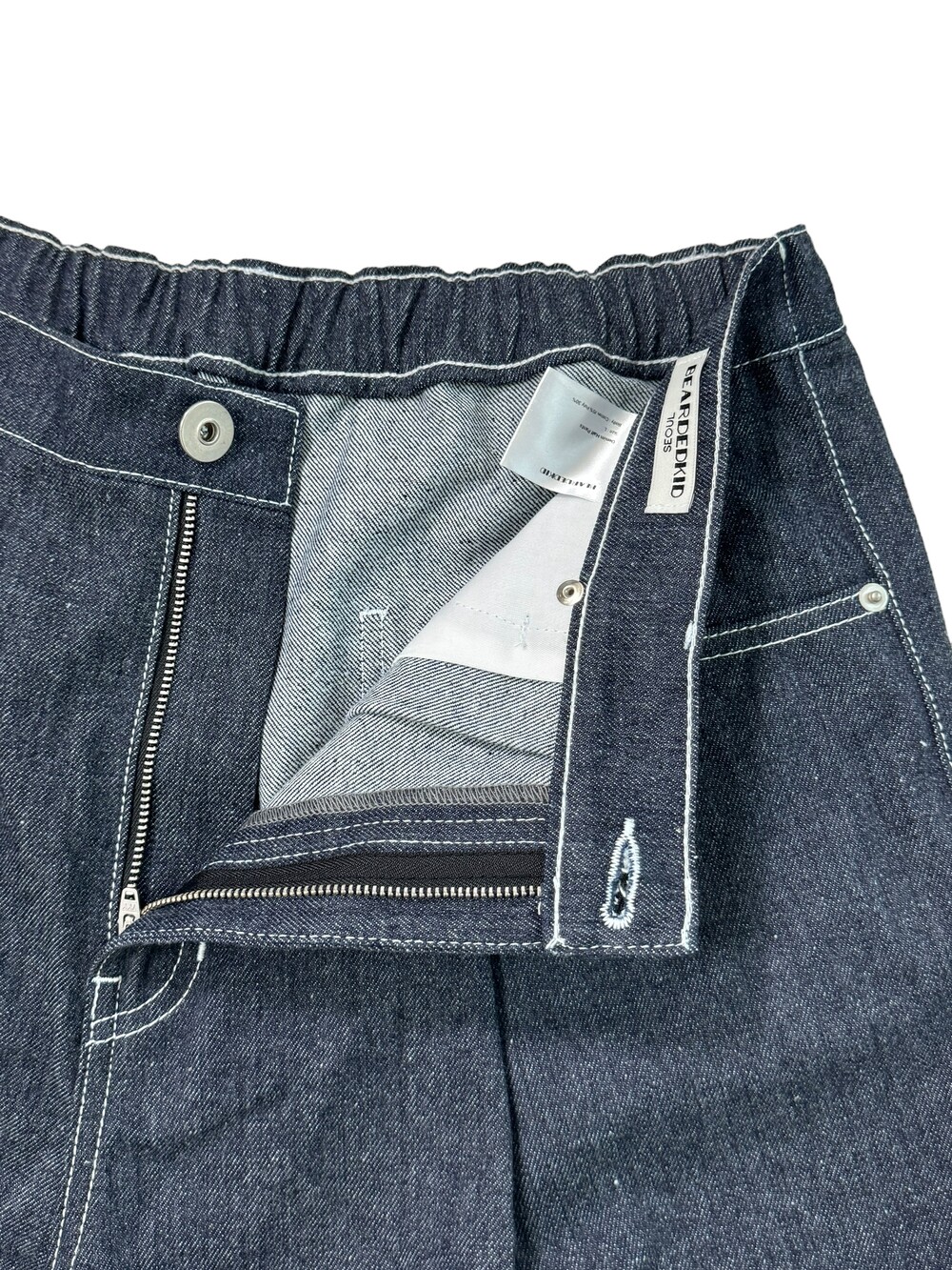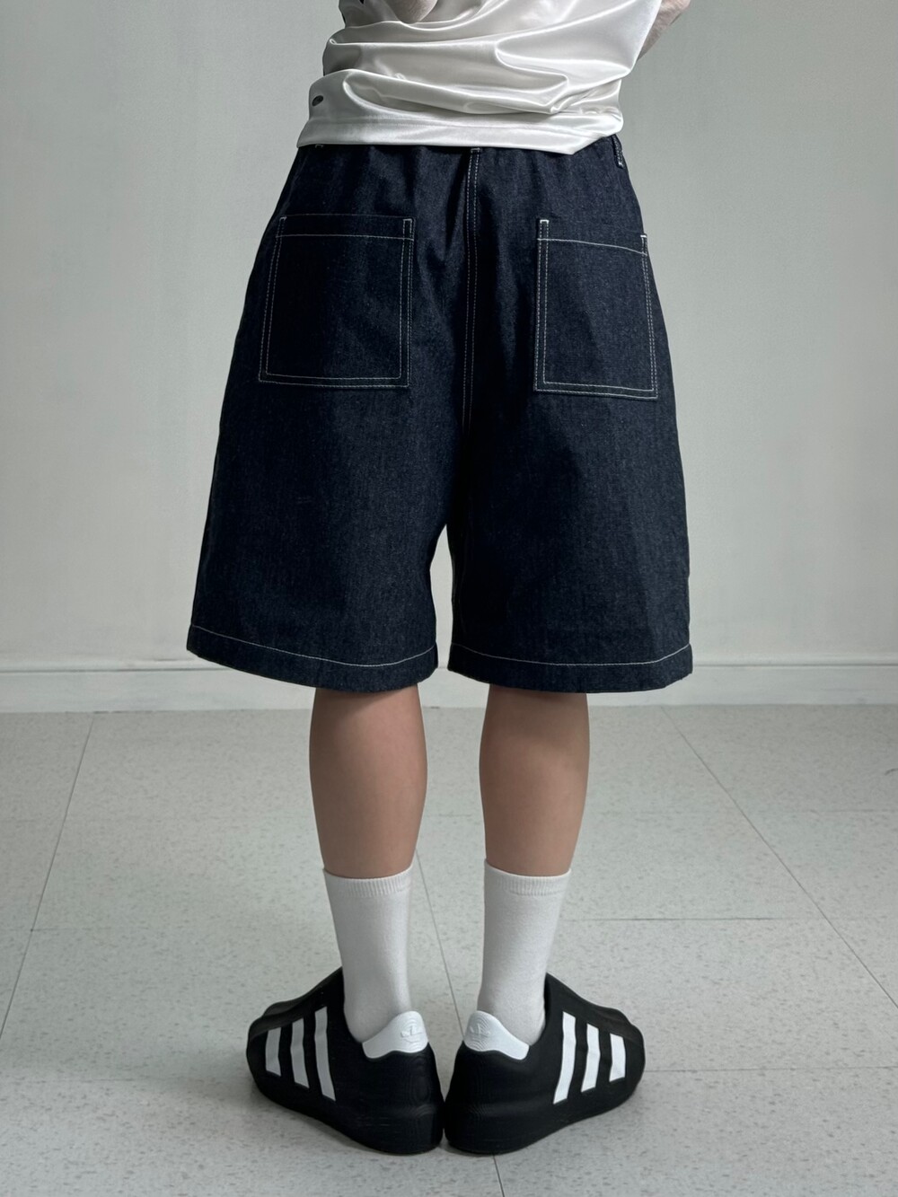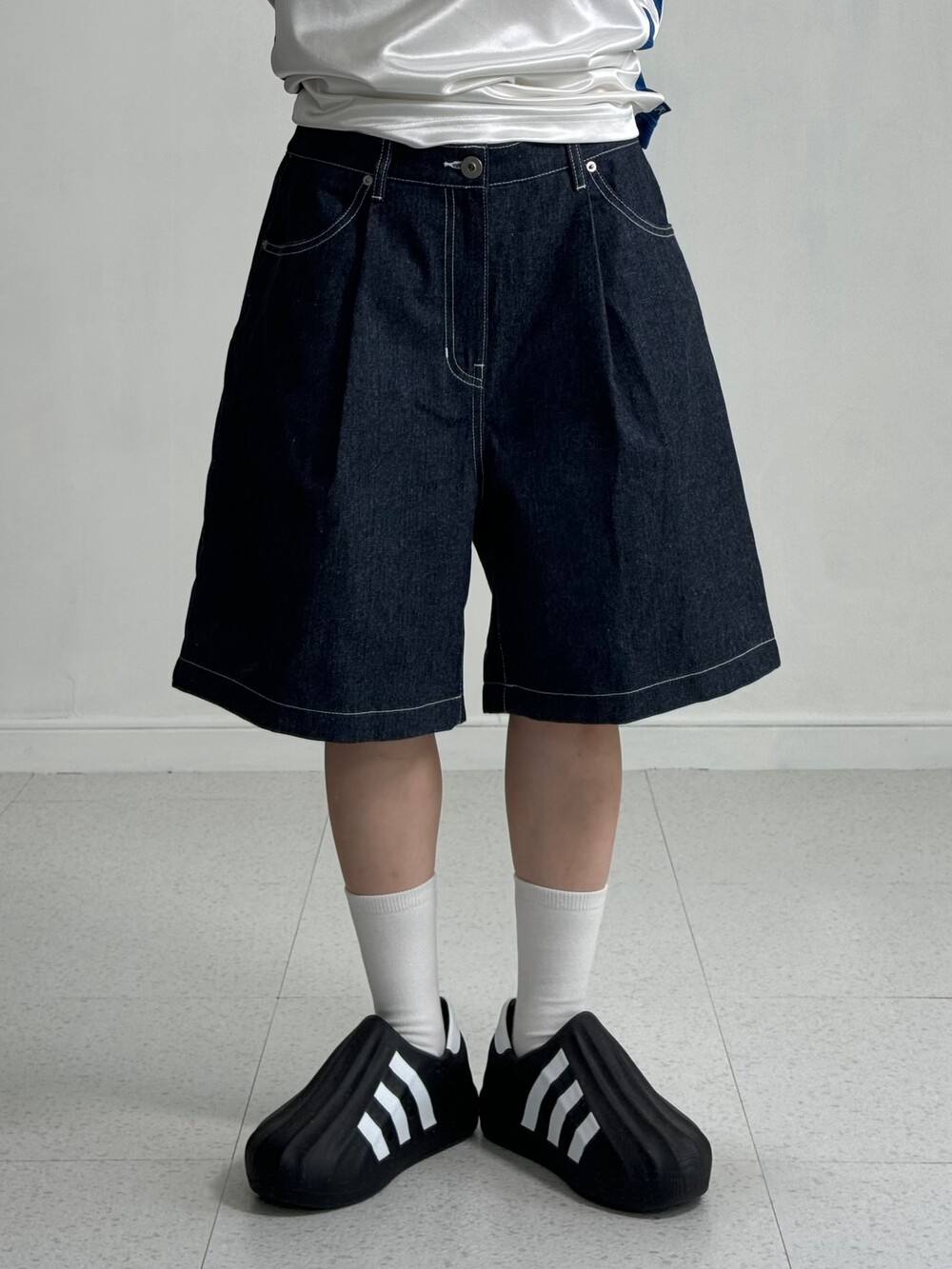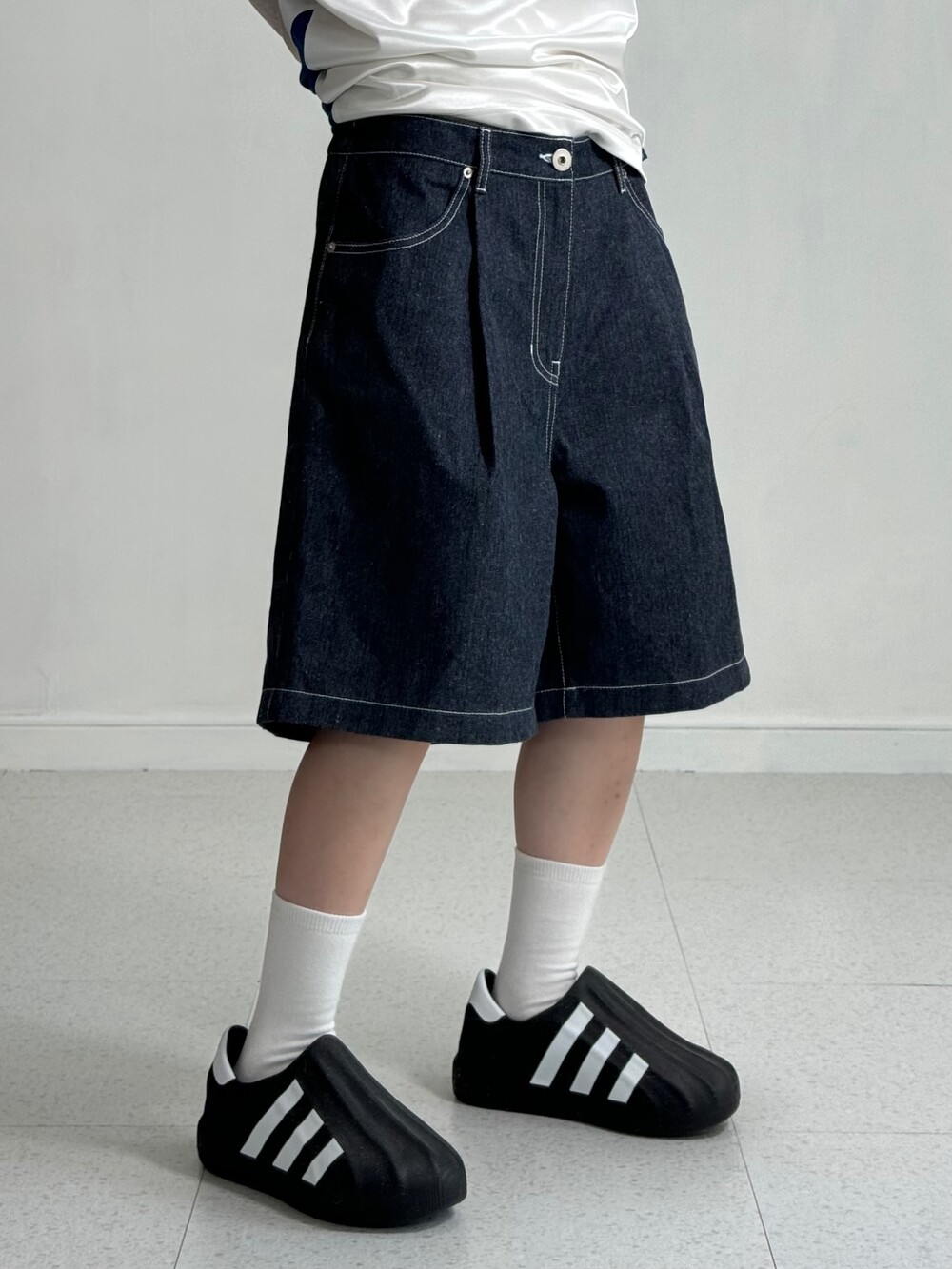 •핀턱 디자인과 와이드한 느낌 낭낭한 데님 하프팬츠 입니다! 통이 넓어서 편안하구 멋있게 착용가능!