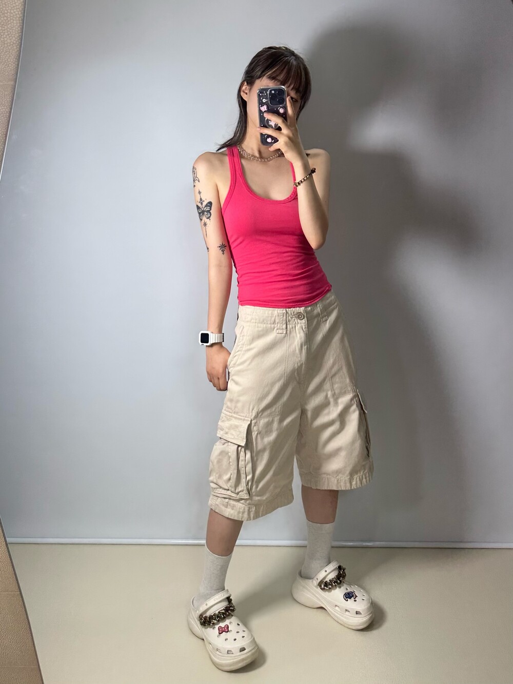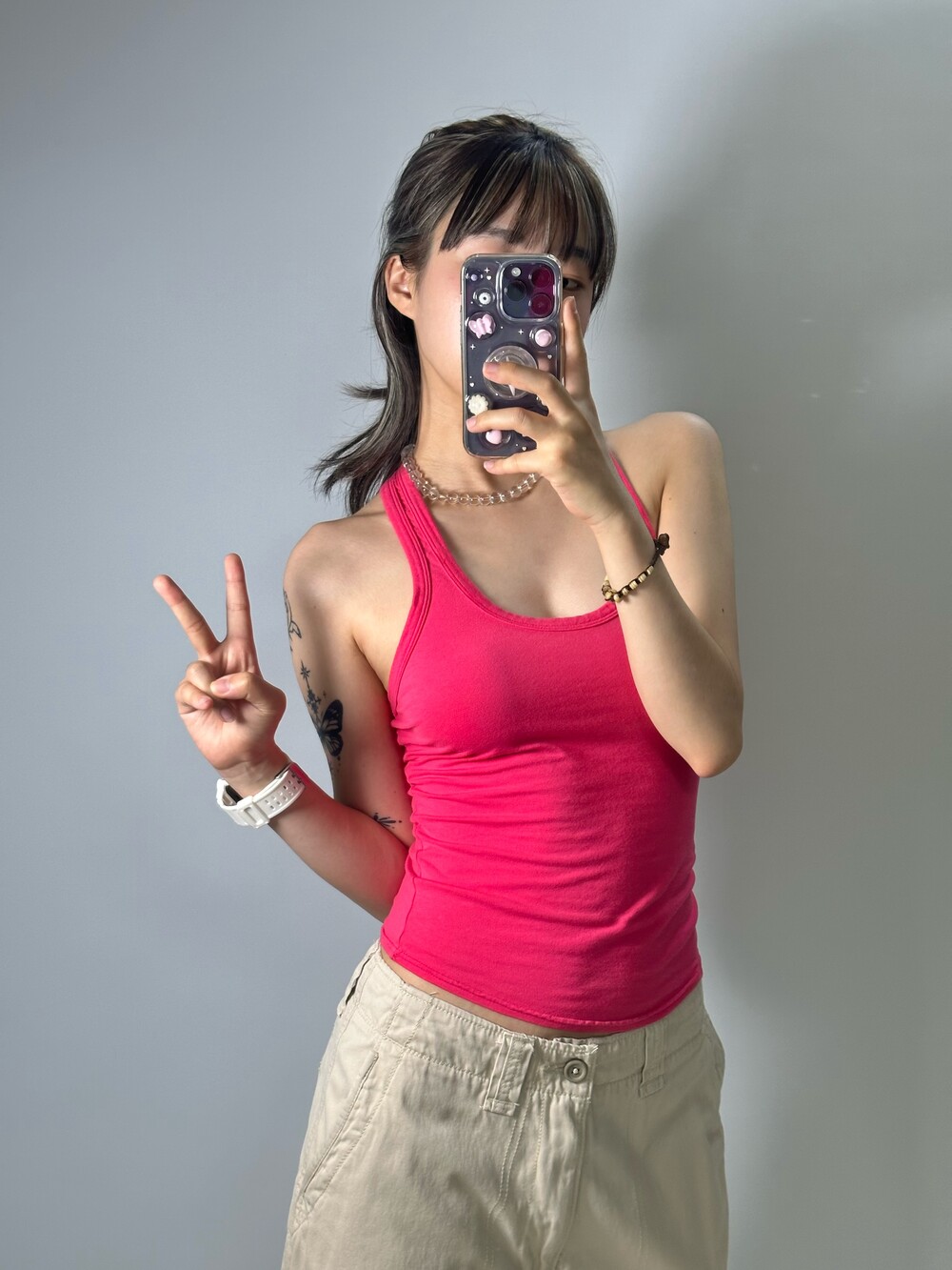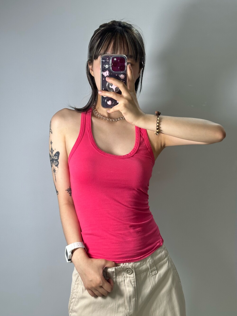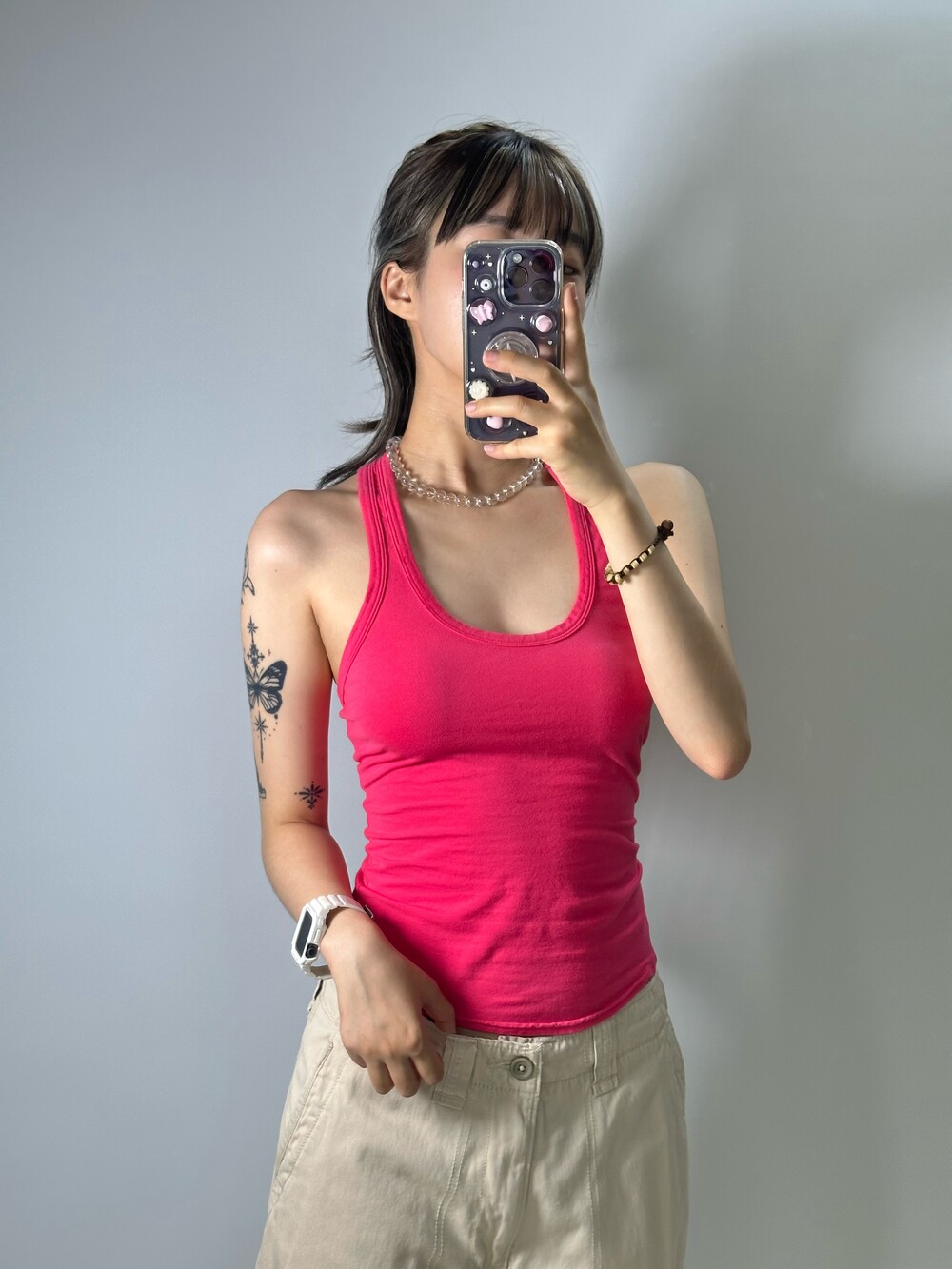 •쫀쫀하게 몸에 촥 붙어 몸매를 돋보이게 해주는 •• 핫핑크 컬러에 여름을 온전히 느끼실 수 있게 해주는 탑이에요💖