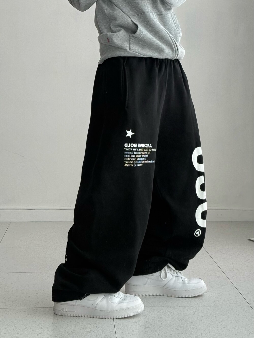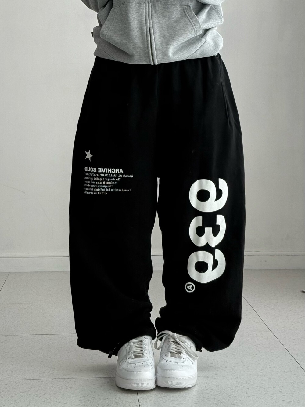 •아카이브 볼드의 블랙 코튼 팬츠 입니다. 댄서분들이 많이 착용하는 팬츠라 힙하게 연출해주시기 좋은 데일리템이에요!