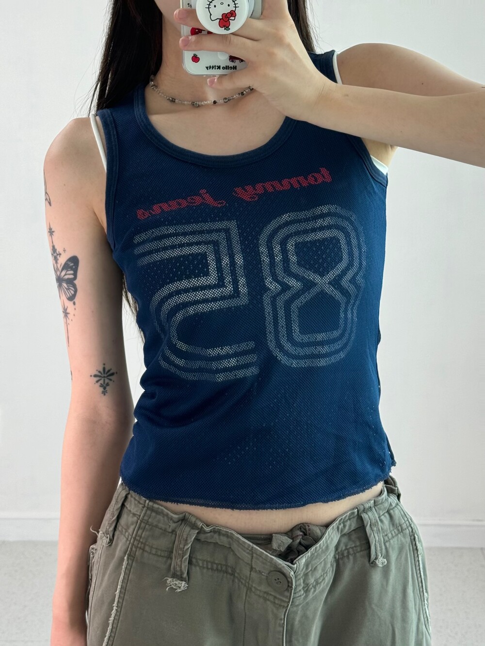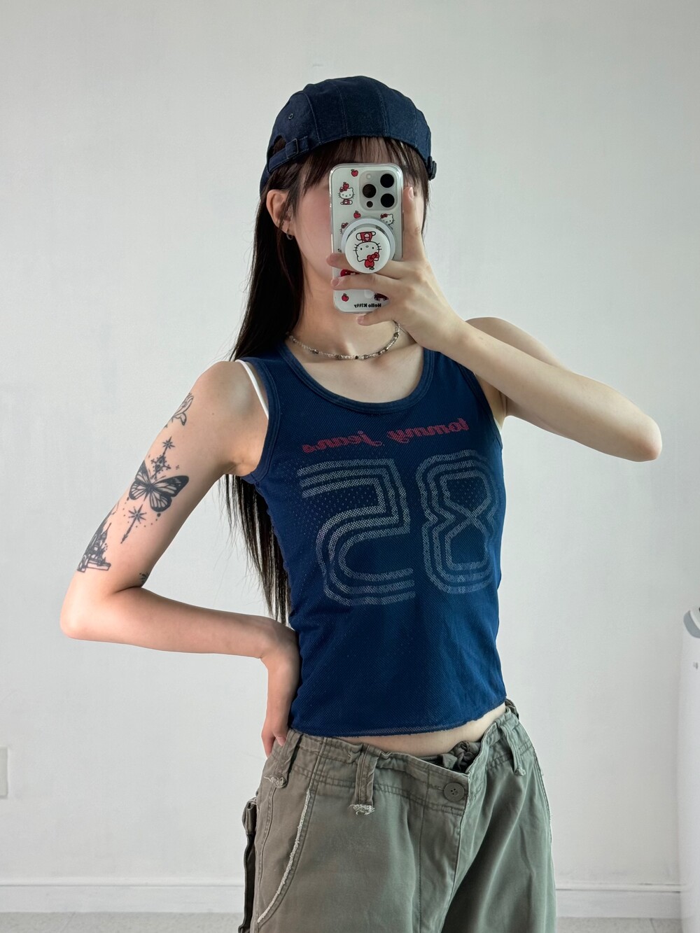 •딥한 블루+네이비 컬러의 타미힐피거 베스트에요! 심지어 딱붙핏에 살짝 크롭한 기장감까지.. 이보다 예쁜 타미 베스트가 있을까효..