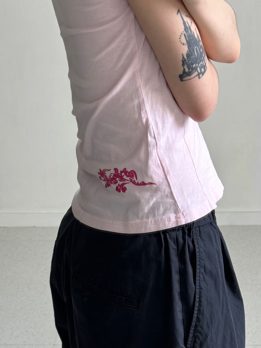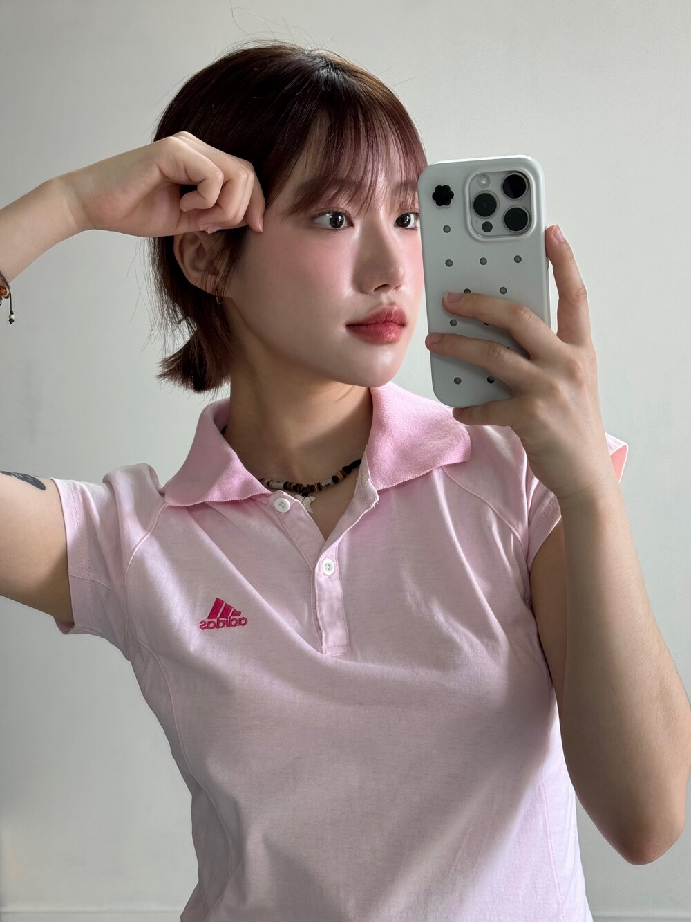 •딸기우유 아디다스 딱붙핏 반팔 입니다! 상체를 슬림하게 잡아주고 밑단쪽 오리엔탈 무드 나는 용 한마리가 동동>,< 넘 예쁜 제품이에요