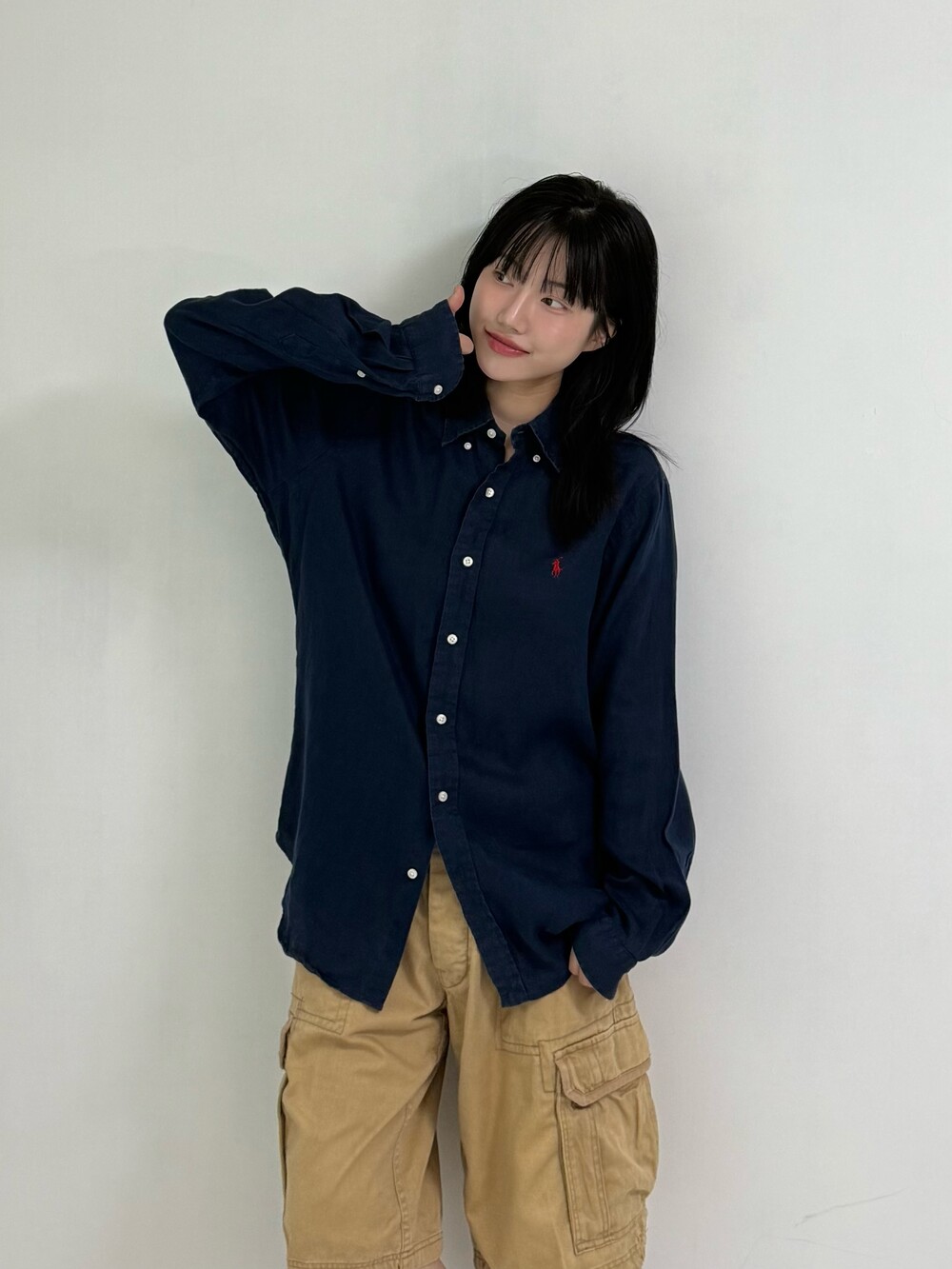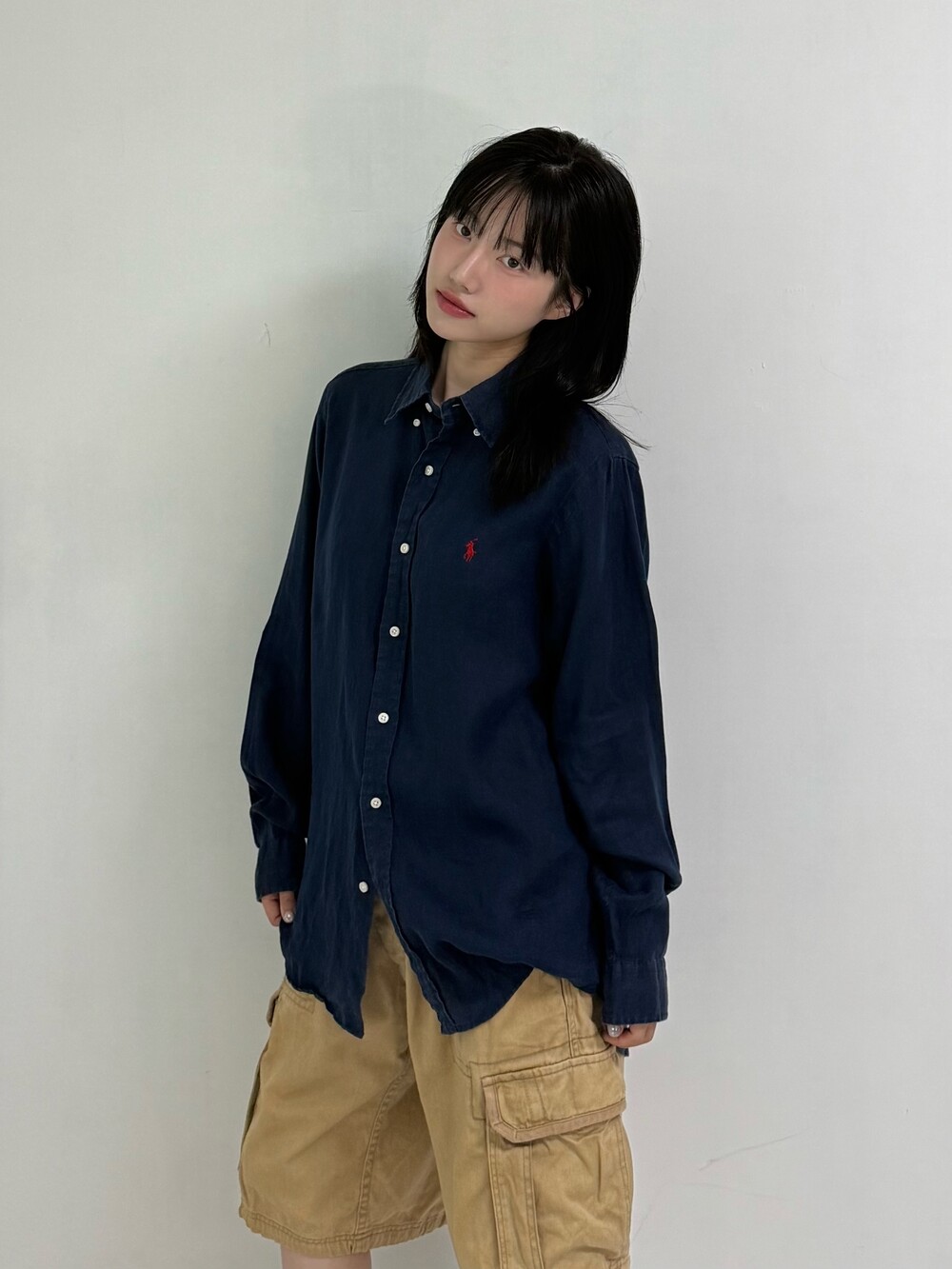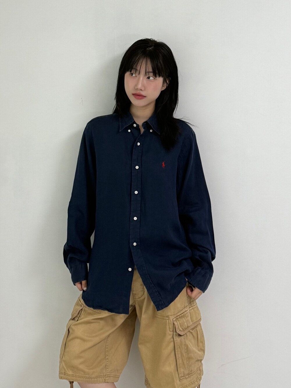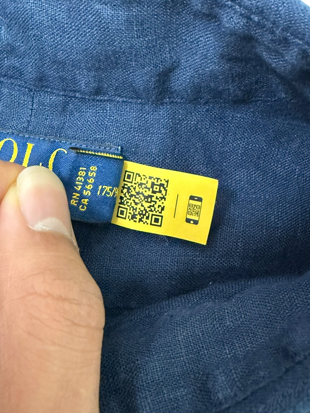 •폴로 네이비 린넨 셔츠 입니다! QR택까지 달려있는 신형 제품이에요! 새상품은 20만원 넘어요,,