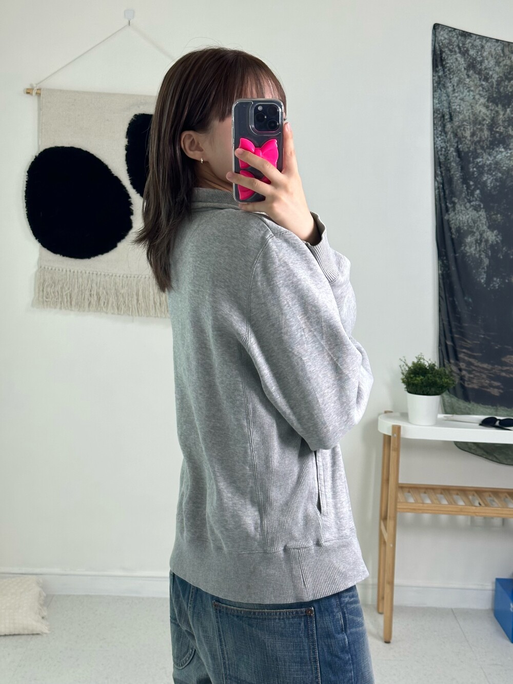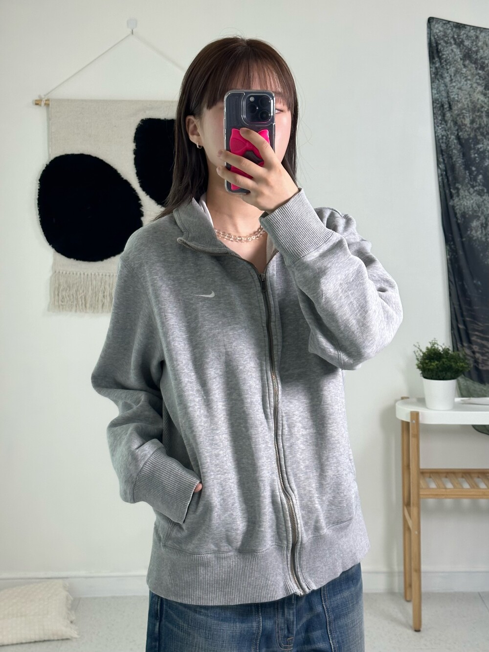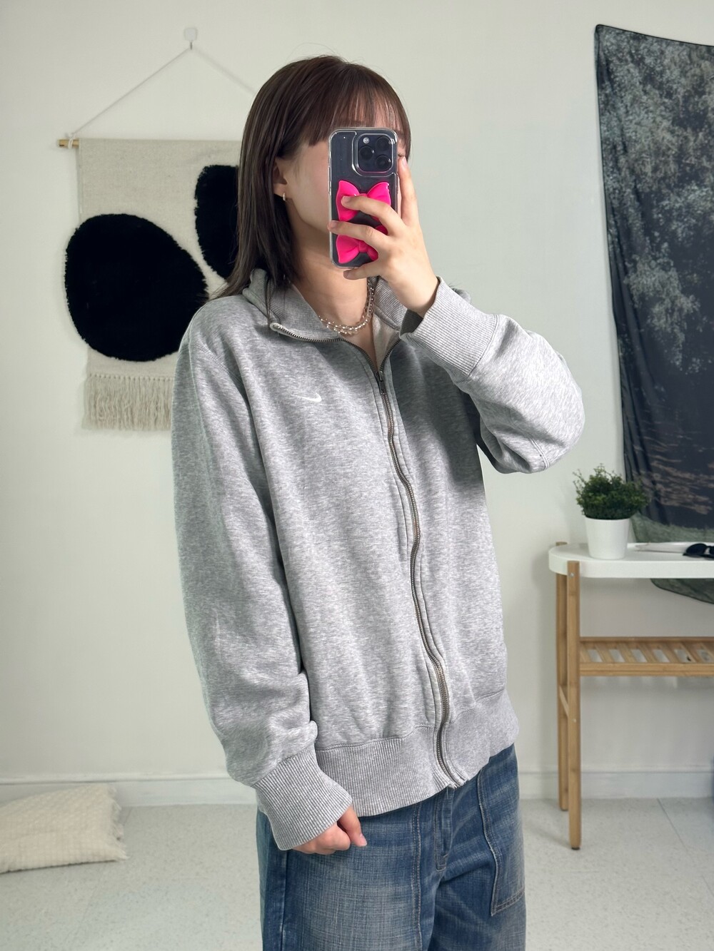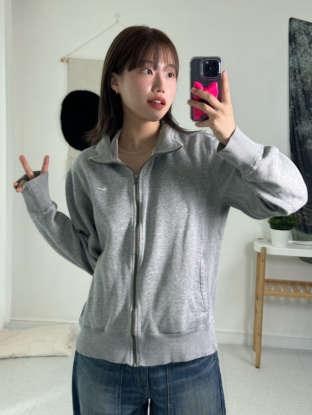 •기본템 나이키 코튼 그레이 집업! 지퍼를 끝까지 올려줘도 예쁘지만 살짝 내려입으니 더 예쁘더라구요오. 개인적으로 기본템은 무조건 핏이 예뻐야한다고 생각하는데 아방하게 떨어지니 짱 귀여움