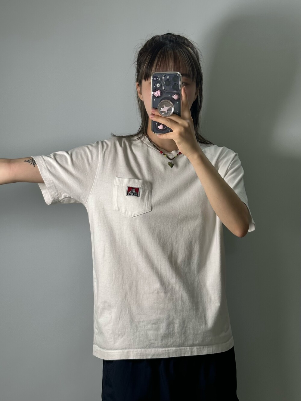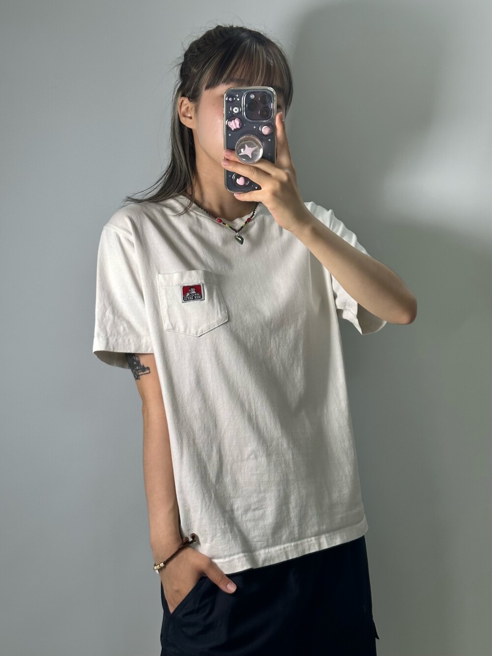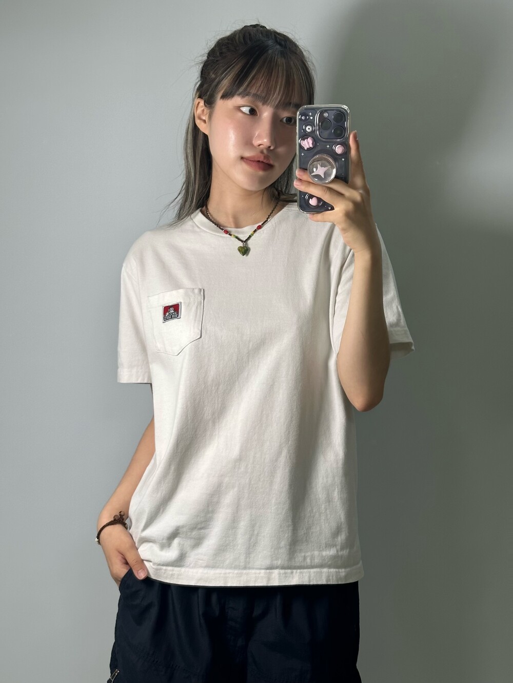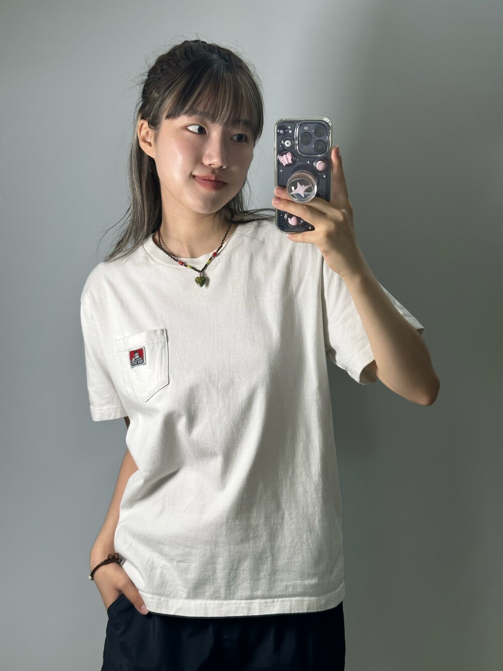 •탄탄한 원단과 깔끔한 화이트 컬러를 갖고 있는 반팔이에요! 벤데이비스 마크가 넘 귀여워요잉