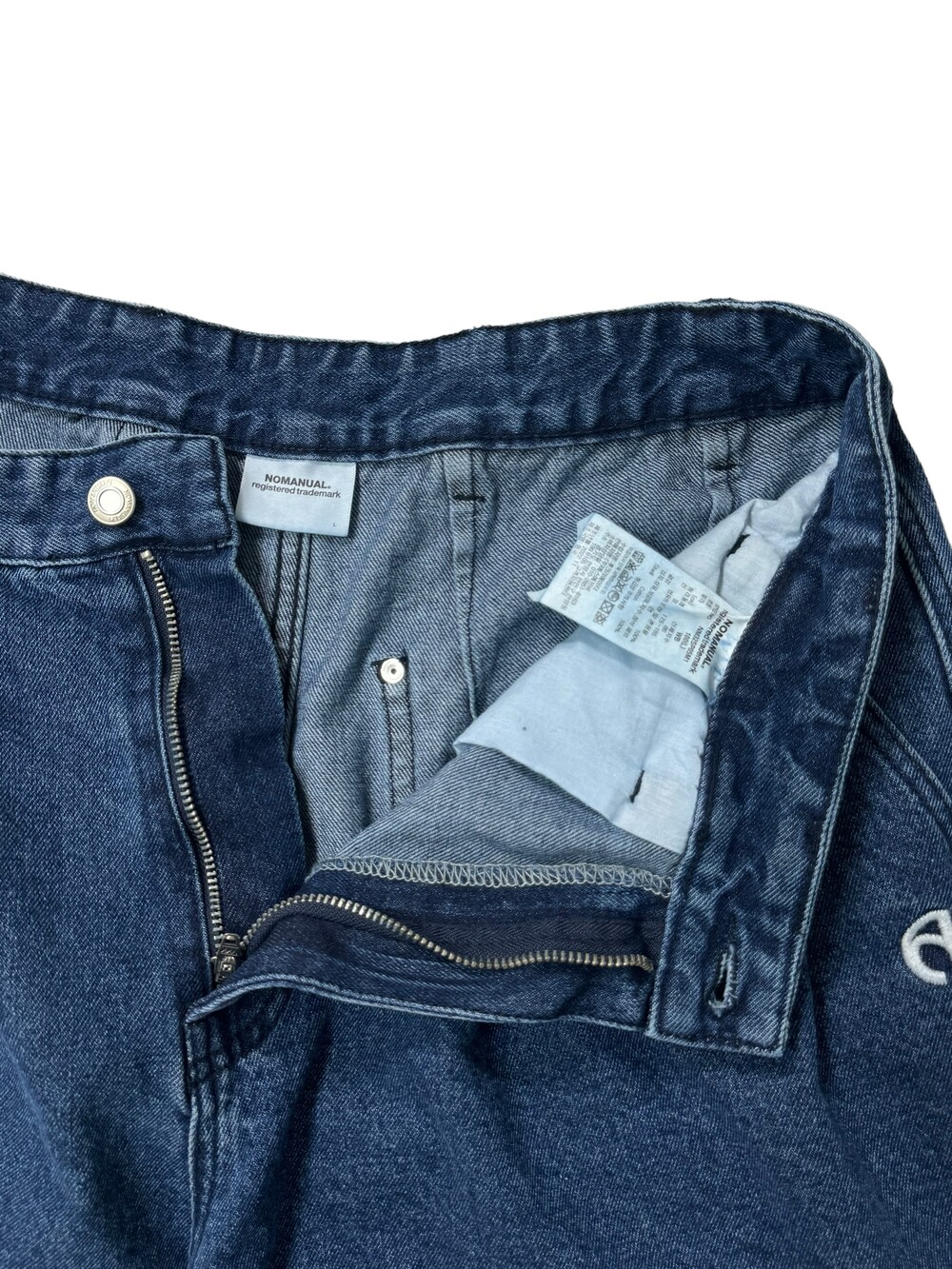 •노메뉴얼에서 정가 89,000원에 판매했던 아이템 입니다! 현재는 전부 솔드아웃이라 새상품으로 구매하시기 어려운 제품이라 무오데에서 저렴하게 가지고 가시는걸 추천드려용! 아방핏에 핀턱디테일이 들어간 아방핏 데님반바지에요ㅎㅎ!