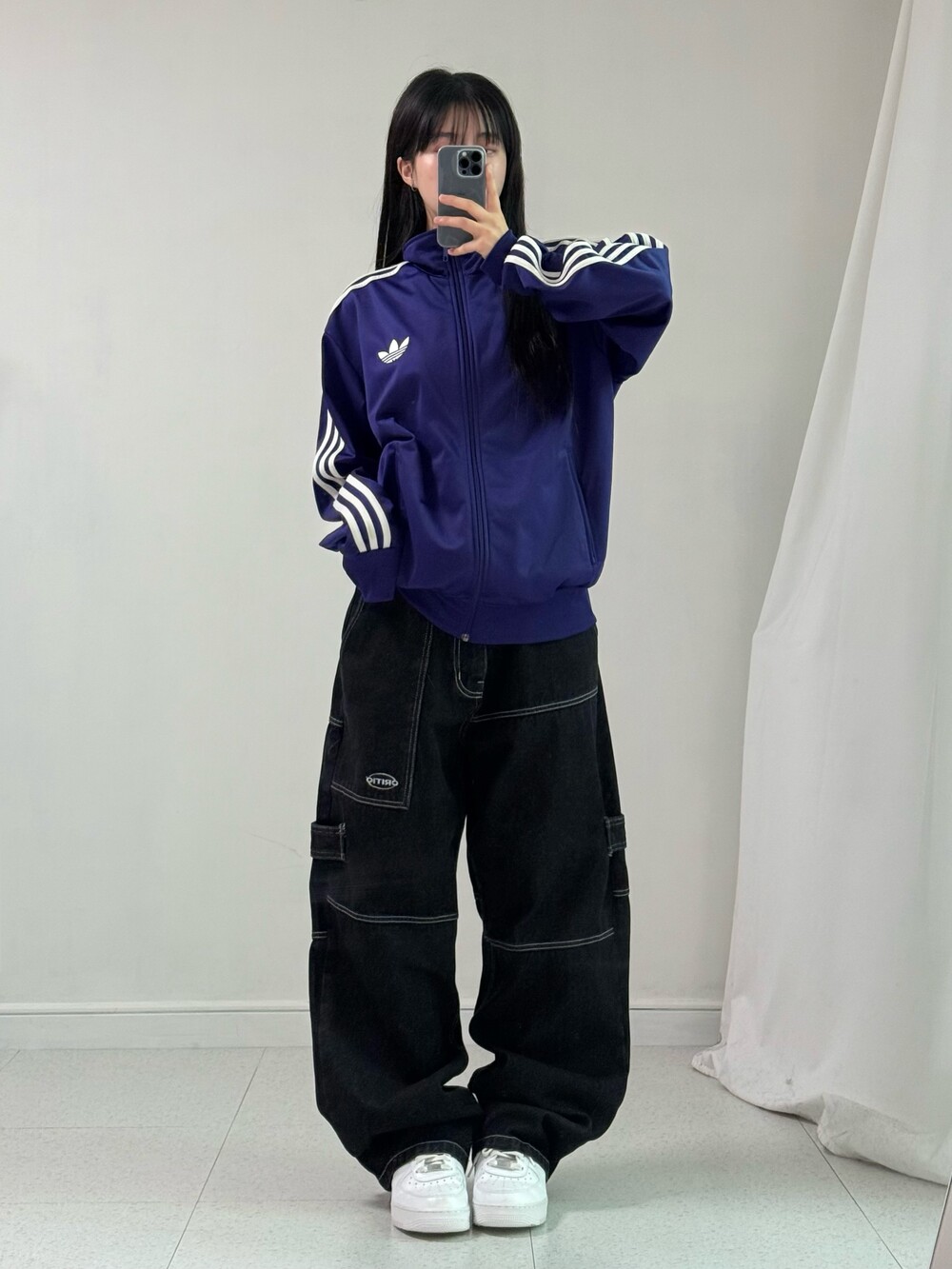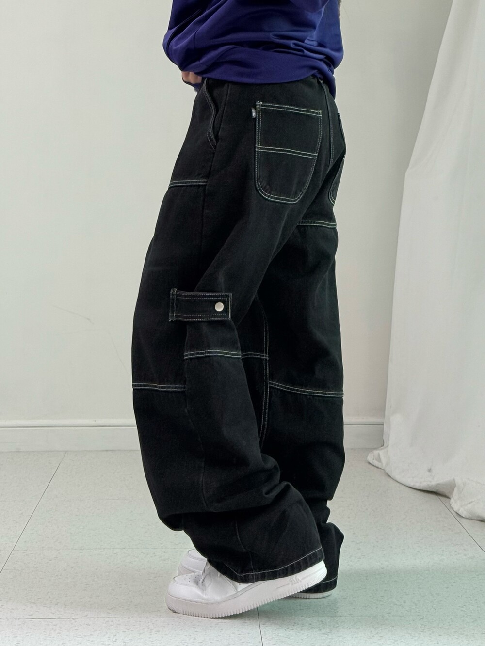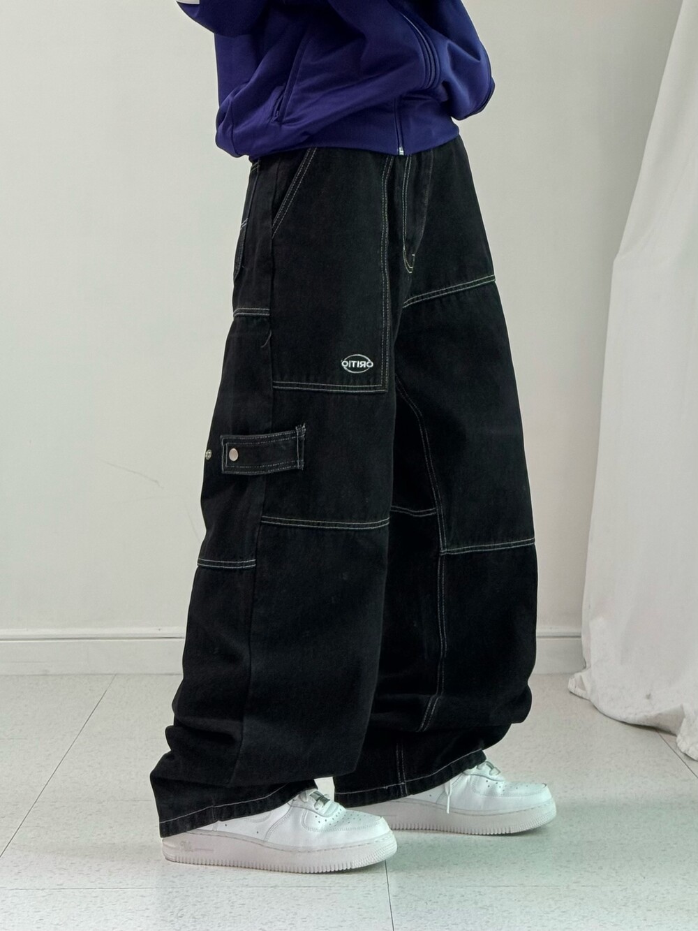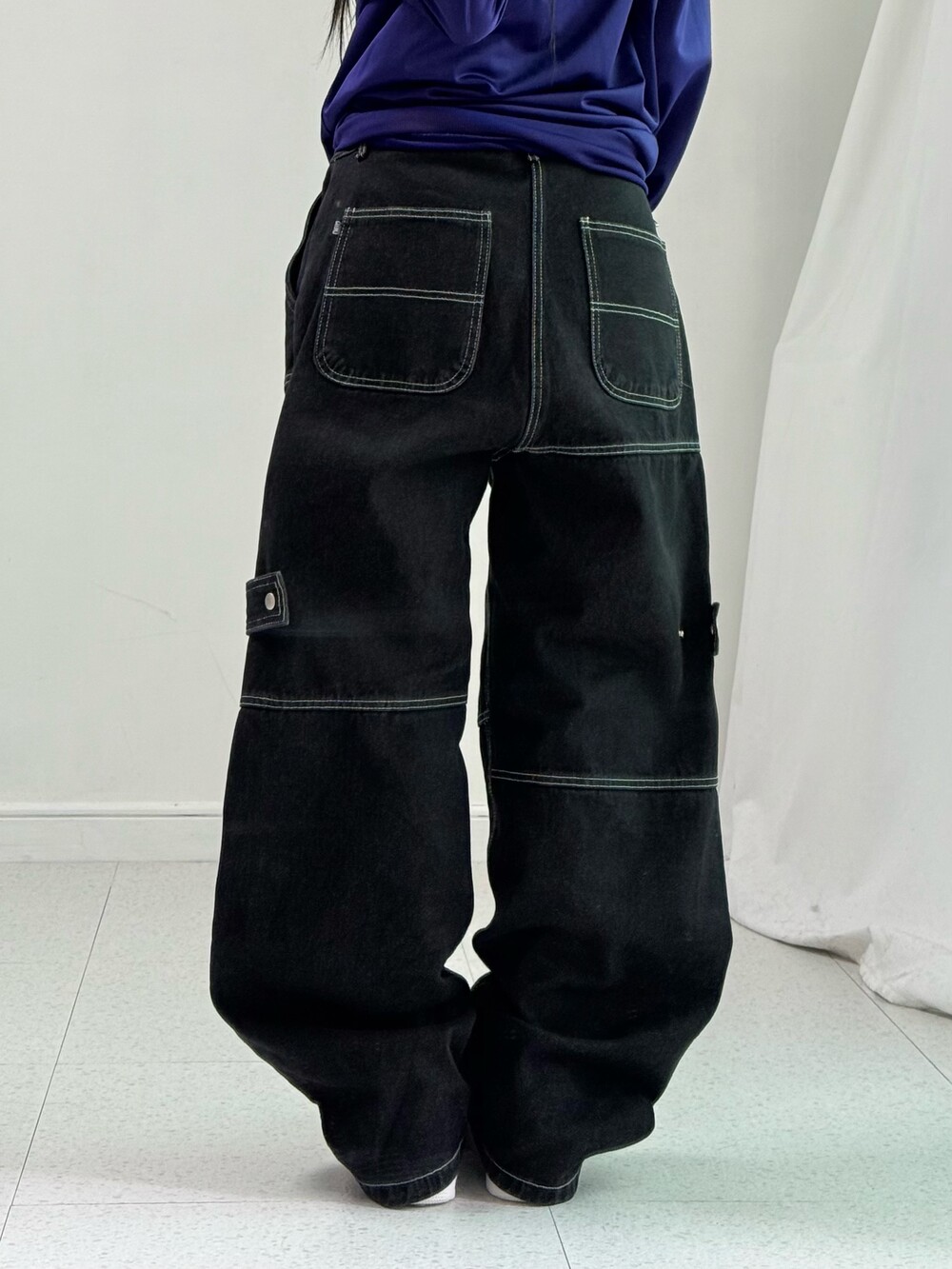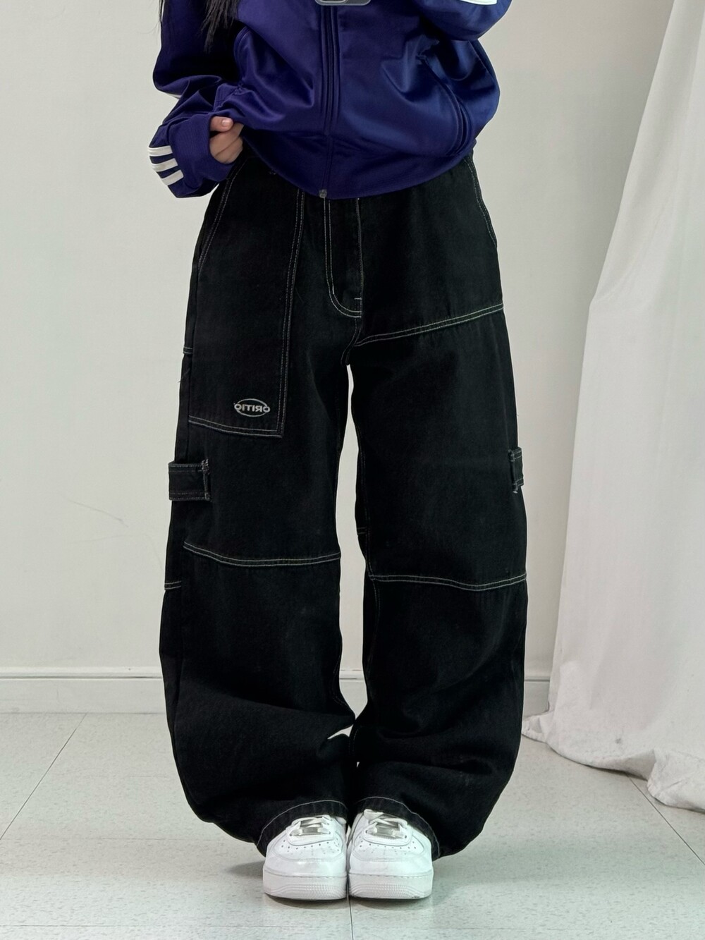 •묵직루즈한 실루엣이 넘 예쁜 크리틱 팬츠에요! 허벅지쪽 똑딱이 디테일이 멋지구 화이트 스티치 디자인이 넘 예쁘지요 >,<