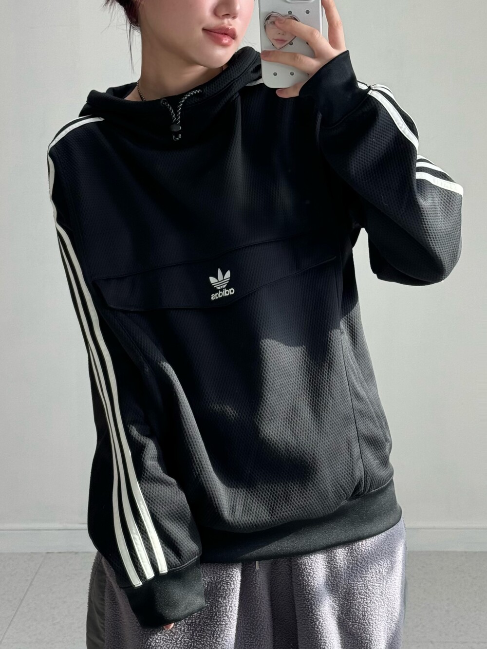 •져지원단의 아디 후드 입니다! 파이어버드 로고가 들어가 예쁘구 포켓 디자인과 지퍼디테일까지 들어가있는 극레어템이라고 말씀드리고 싶어요:) 착용했을때 후리추리한 느낌이 넘 예쁘게 나서 데일리로 즐겨주시기 넘 좋은템 🖤
