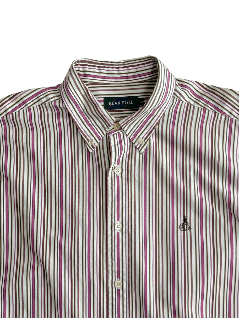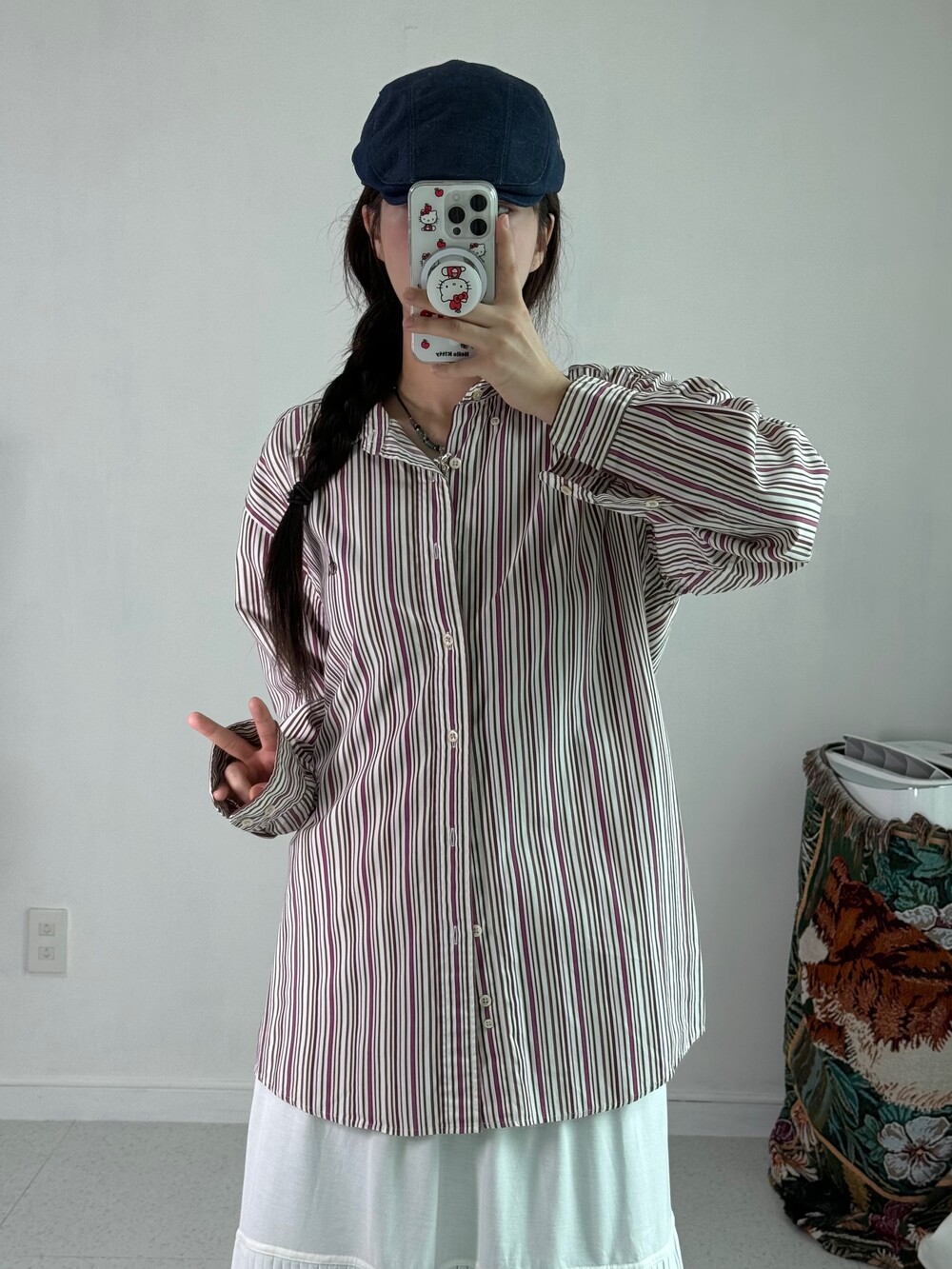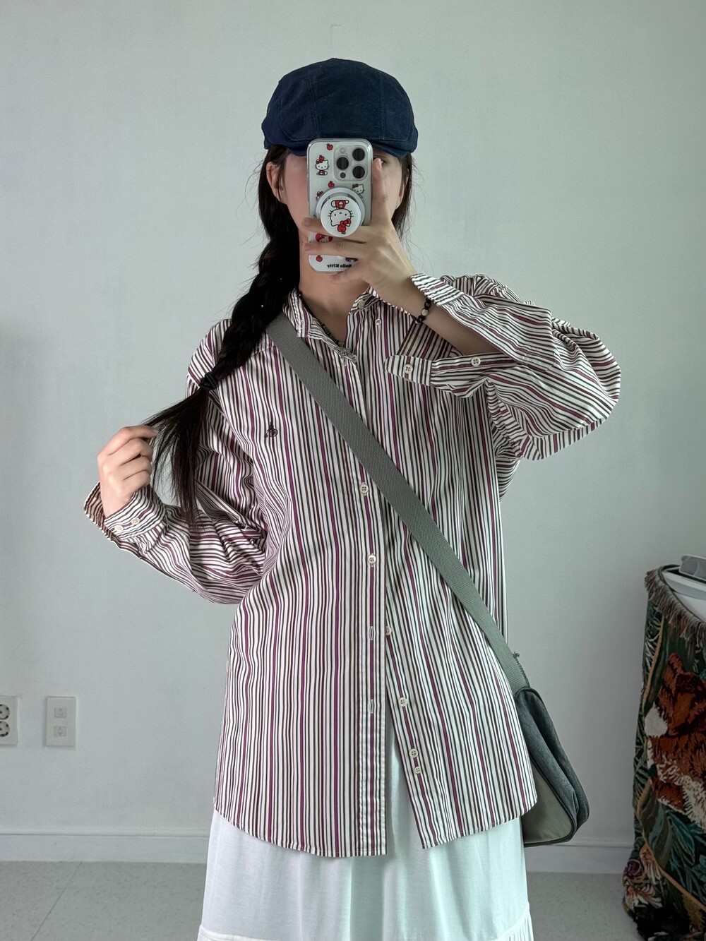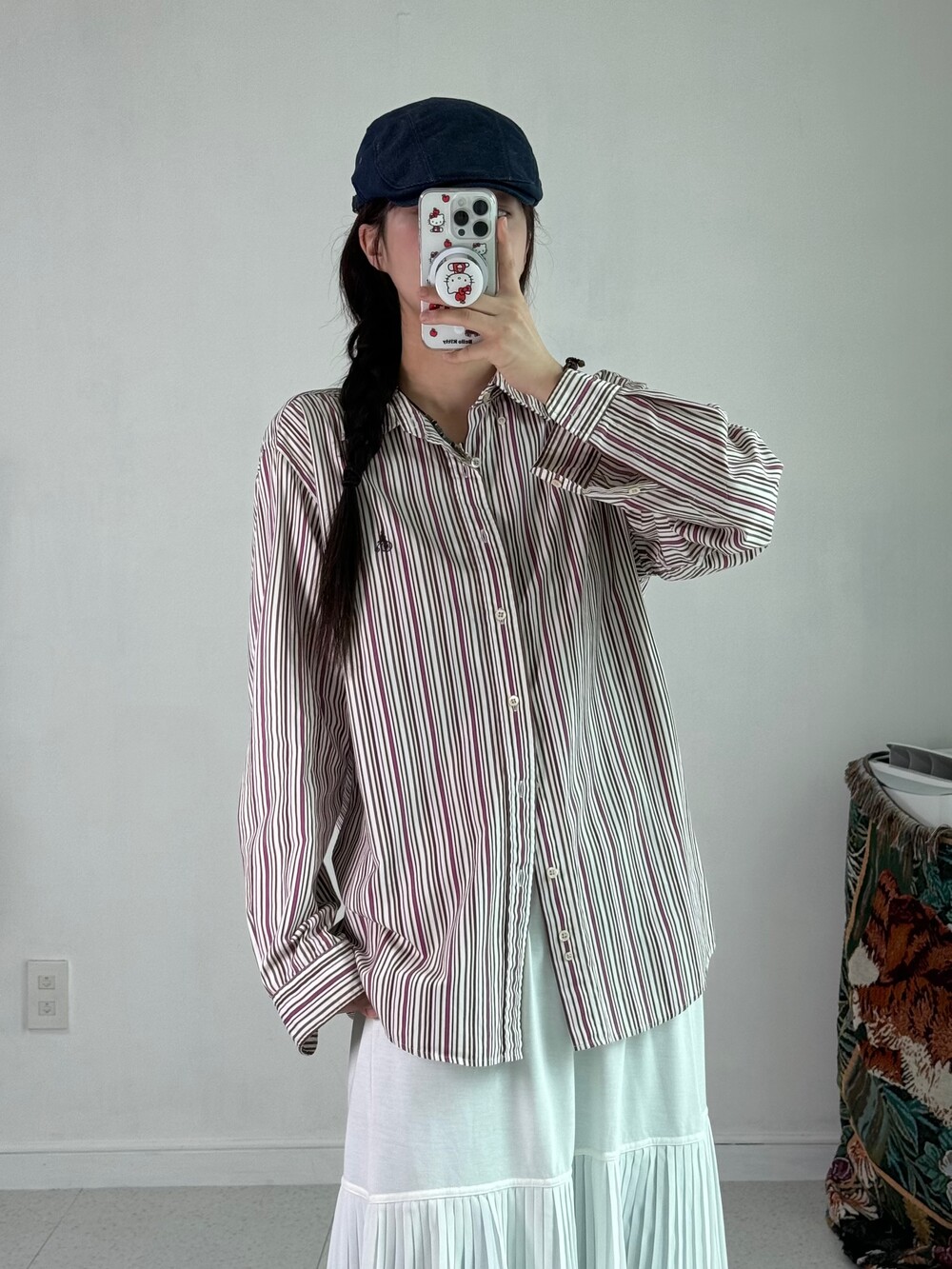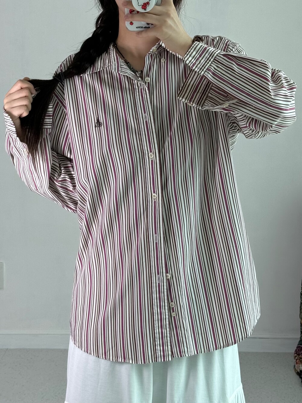 •아방루즈핏 스트라이프 빈폴 셔츠에요! 컬러감이 진짜 도라방스.. 화이트,자주,초코 컬러가 다 들어가있어 대장급 컬러와 핏을 만나보실 수 있습니다-!! 강강추에요🖤