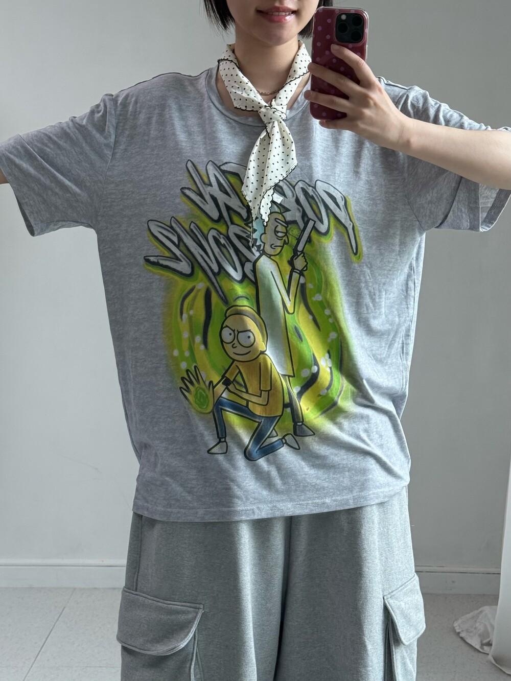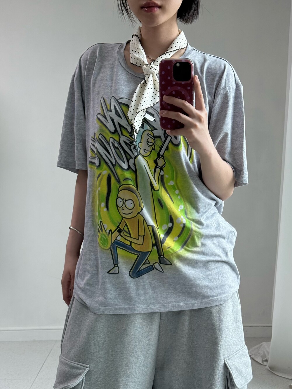 •Portal Boyz의 그래픽 스트릿 캐주얼 반팔티 입니다. 오버핏으로 떨어지는 제품이라 귀엽게 포인트로 입어주세요!