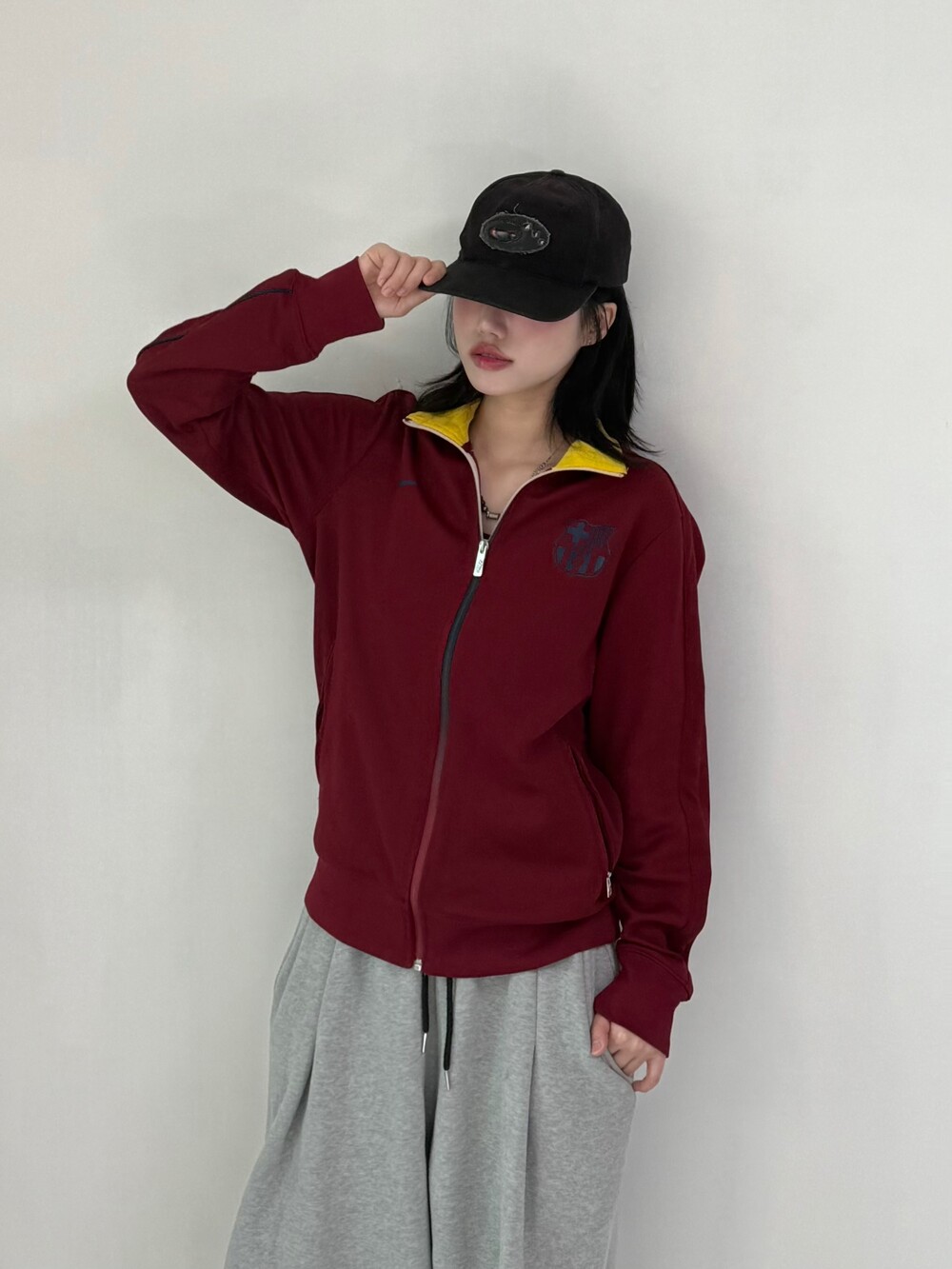 •딥톤들에게 추천드리고 싶은 버건디 져지-넥라인이 옐로우 컬러로 들어가 포인트까지! 지퍼도 그라데이션으로 들어가있어 유니크함까지 더해진 녀석 이랍니다 ㅎ.ㅎ