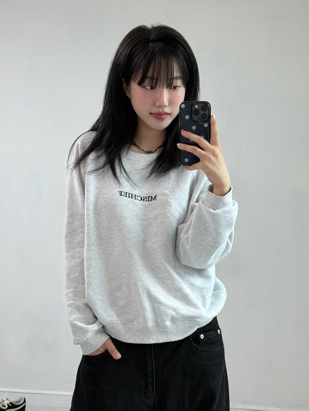 •미스치프 멜란지 맨투맨 입니다! 기모x 가볍게 느좋 언니'st로 착용해주시면 좋은 녀석이에요ㅎ.ㅎ