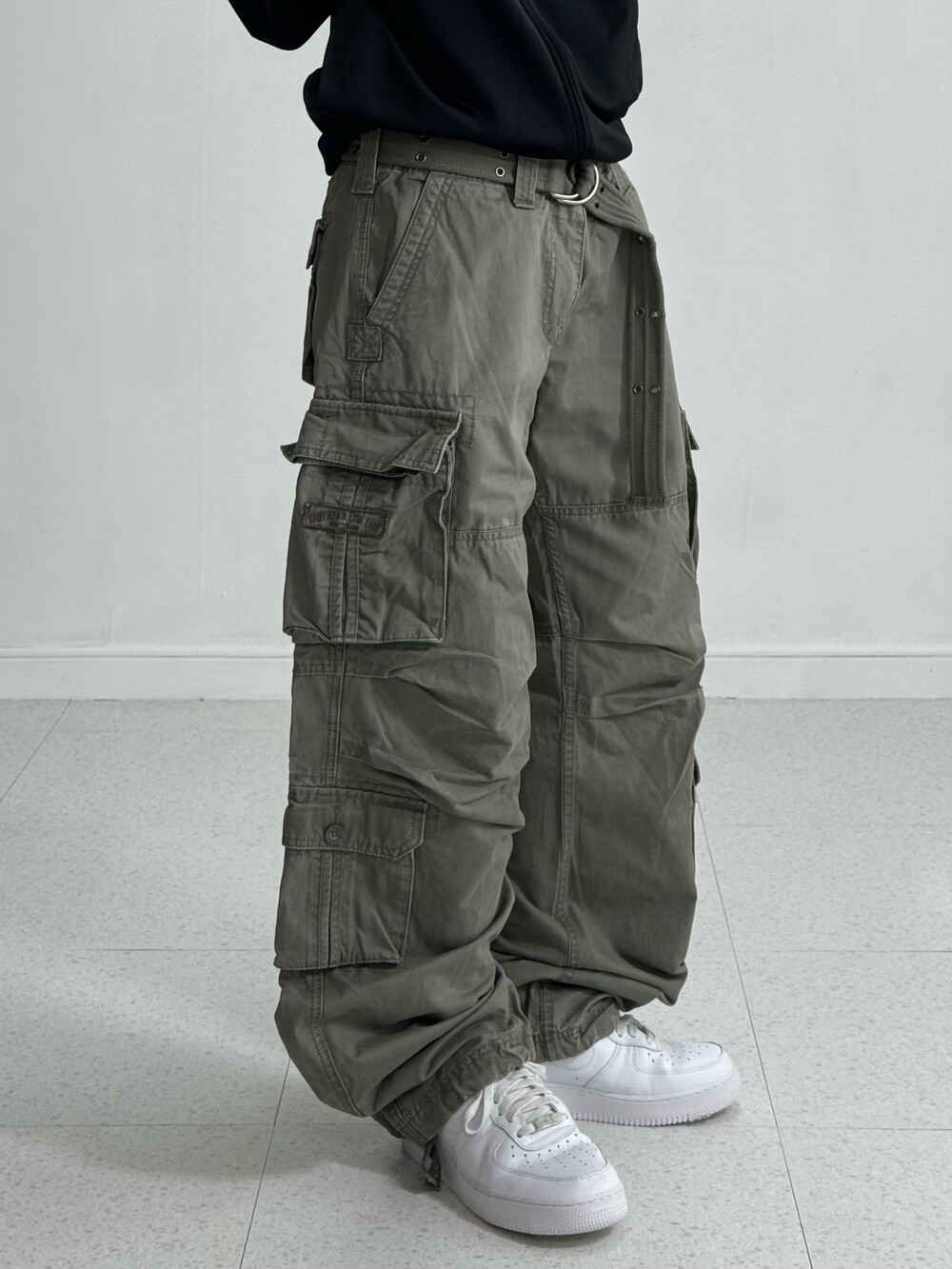 •와이드루즈 묵직핏 카키카고 팬츠 입니다! 벨트가 세트바리로 들어가있는 아이템이에요ㅎㅎ 디자인이며 핏이며 완벽-