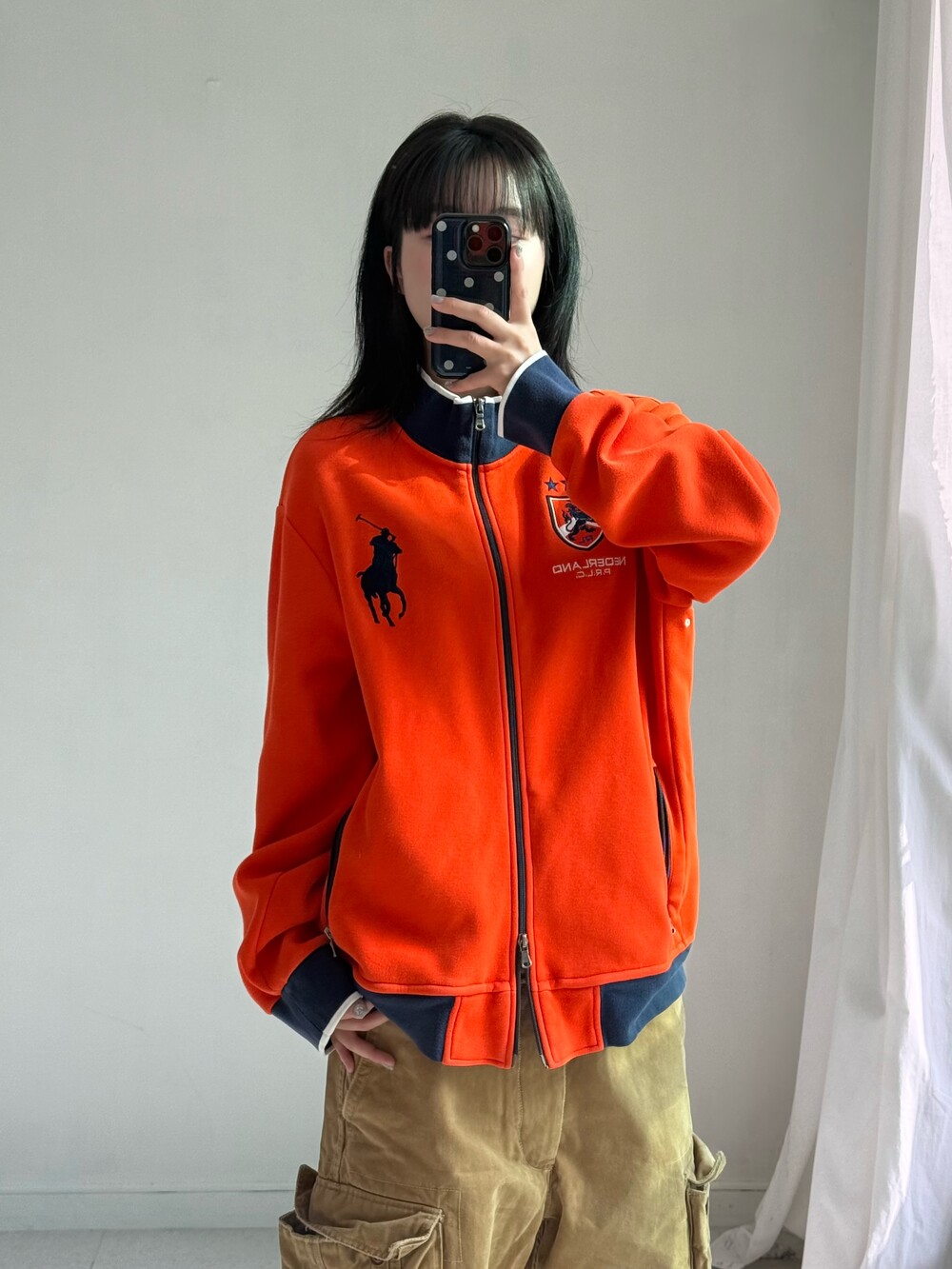 •폴로 빅포니 네덜란드 집업 입니다! 쨍한 오렌지 컬러라 포인트로 착용해주시기 좋고 투웨이라서 원하시는대로 연출해주시면 됩니다ㅎㅎ