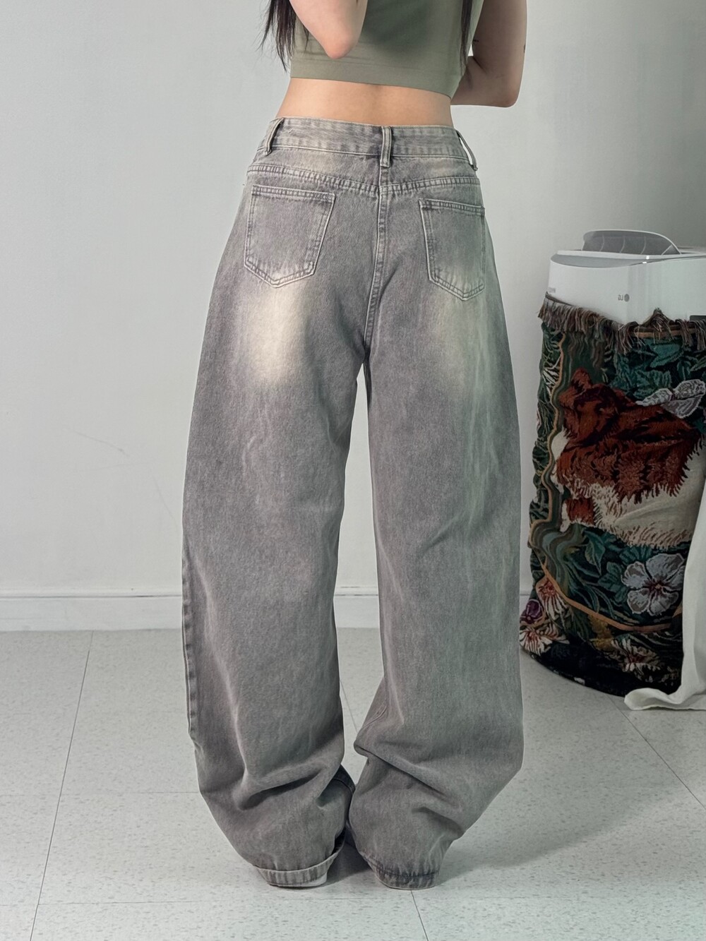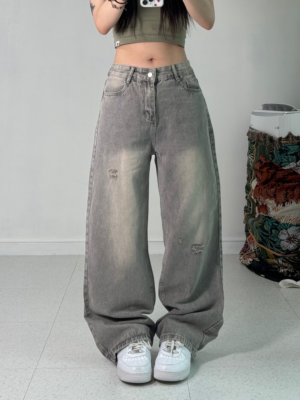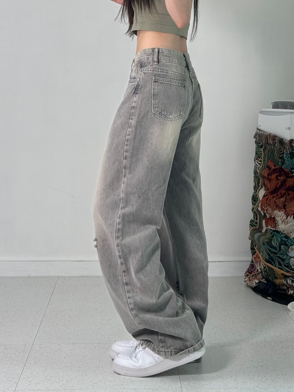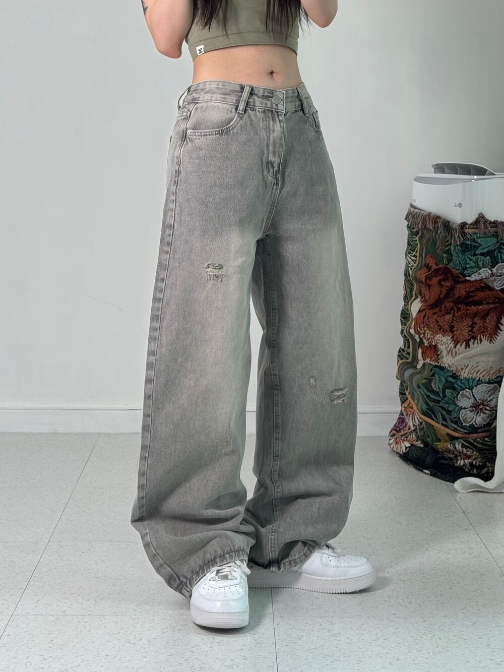 •워싱감이 너무 예쁜 그레이 진.. 적당한 아방루즈함과 미니미니 데미지 디테일이 예뻐서 강추드리고 싶어요🖤뮤트한 느낌까지 짱!