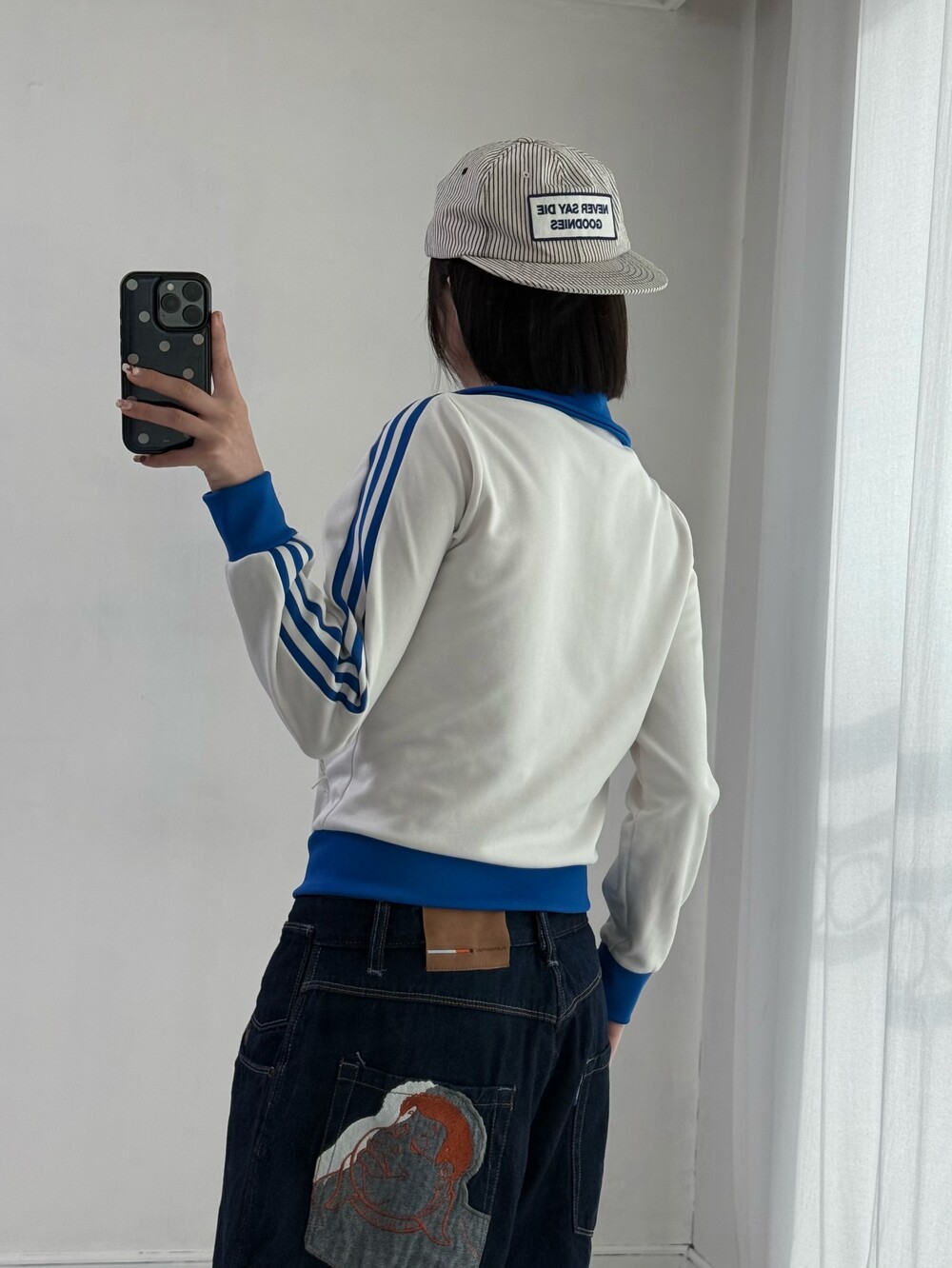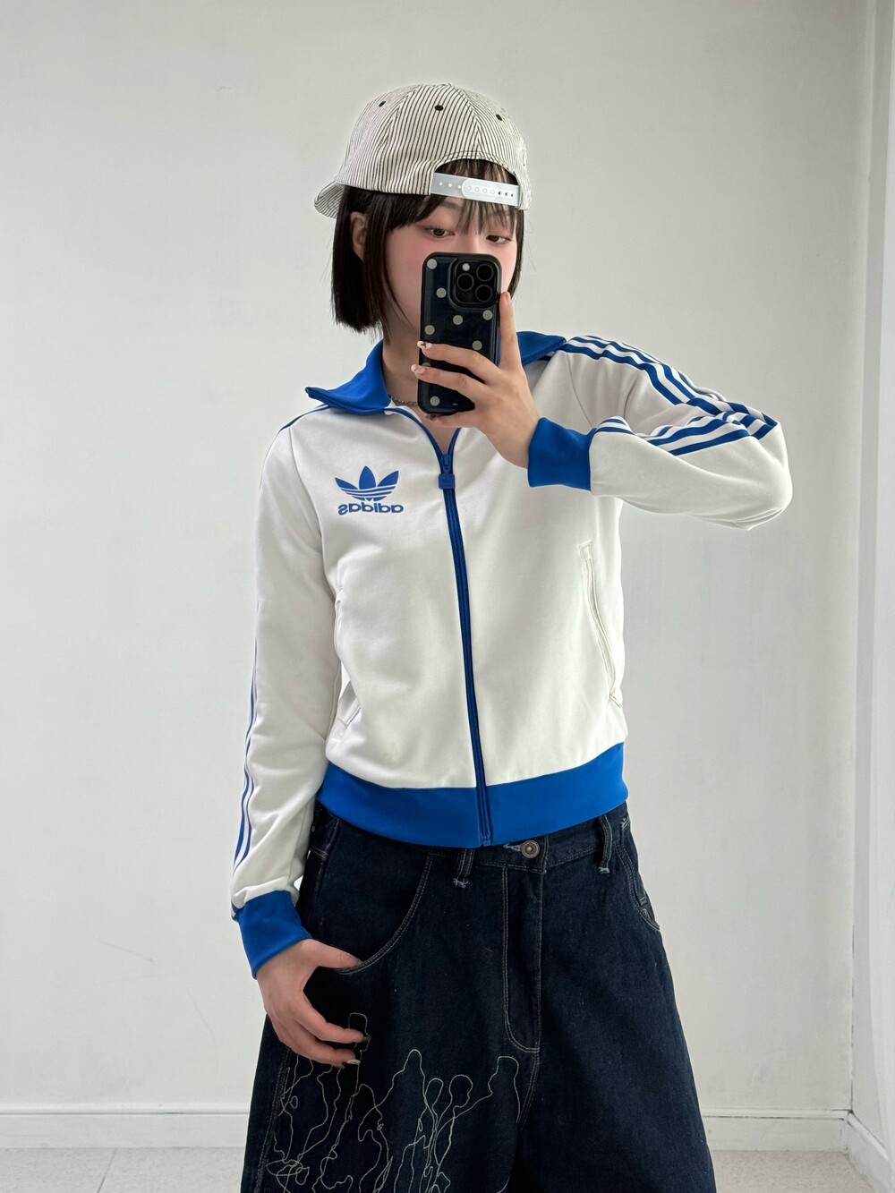 •아디다스 화이트 블루 져지 입니다. 깔끔한 핏에 레어템 답게 화이트 블루 색조합까지! 강추 드려요ㅎㅎ