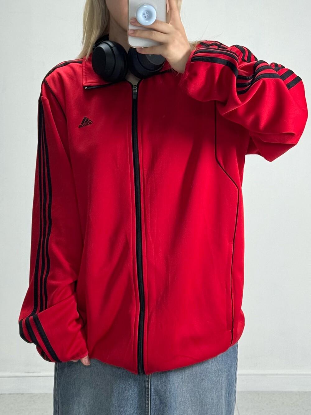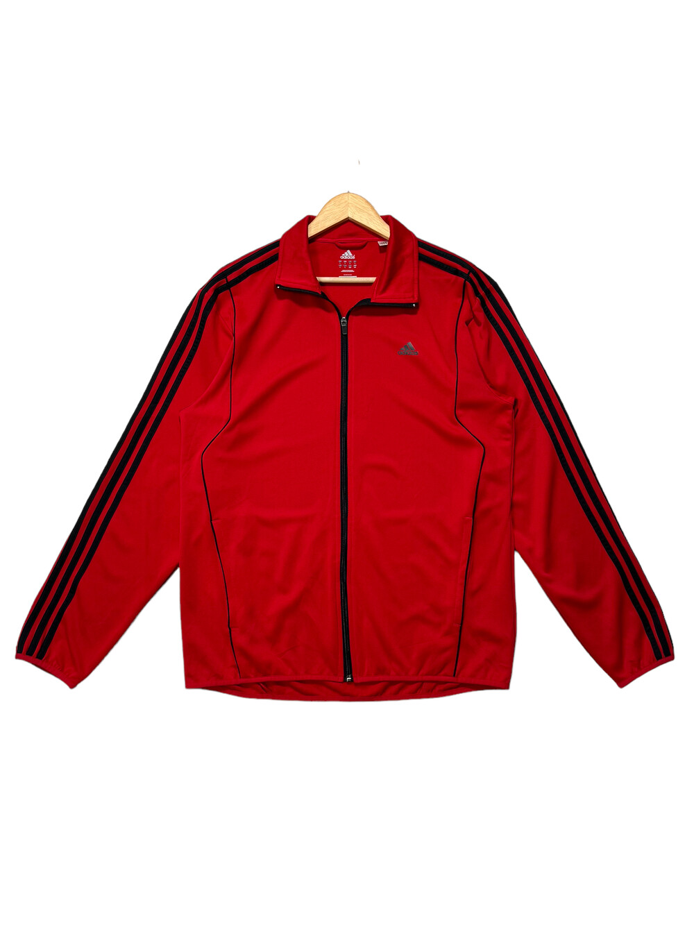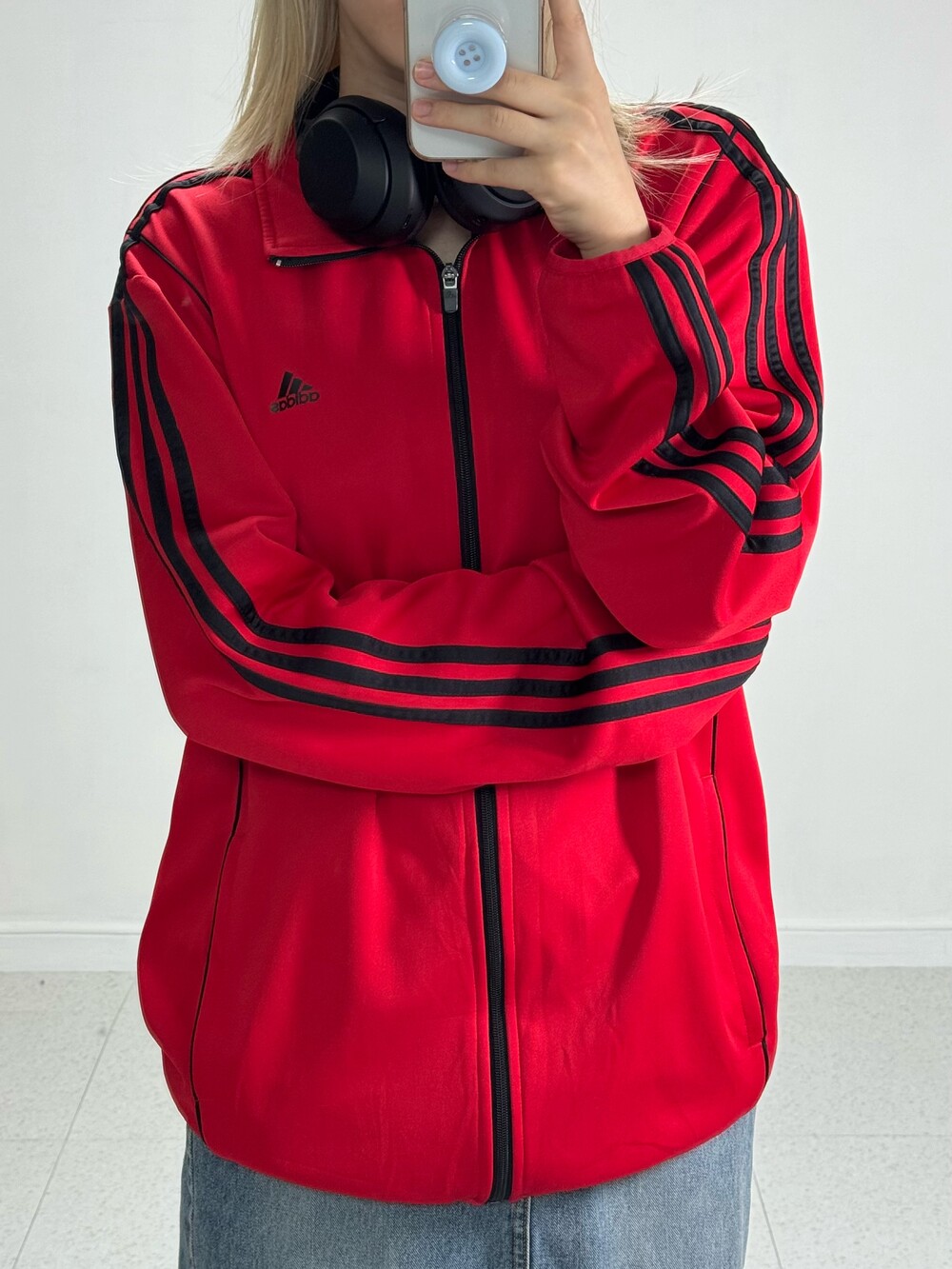 •아방루즈핏 아디다스 져지에요! 채도 낮은 레드컬러라 착용할때 부담 없고 블랙 삼선이라 멋진 느낌 가득스.. 🖤❤️