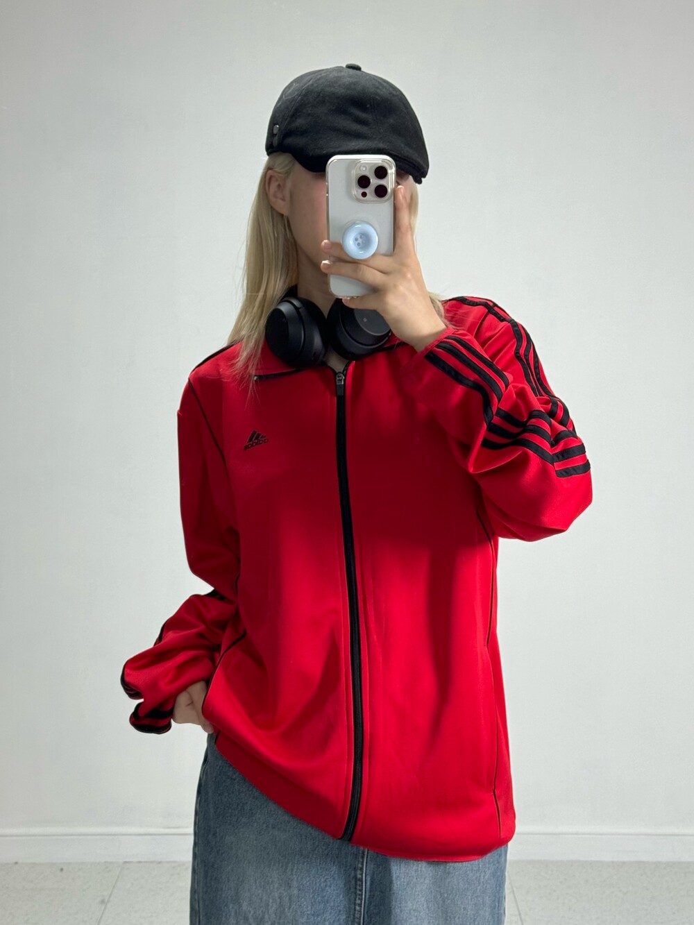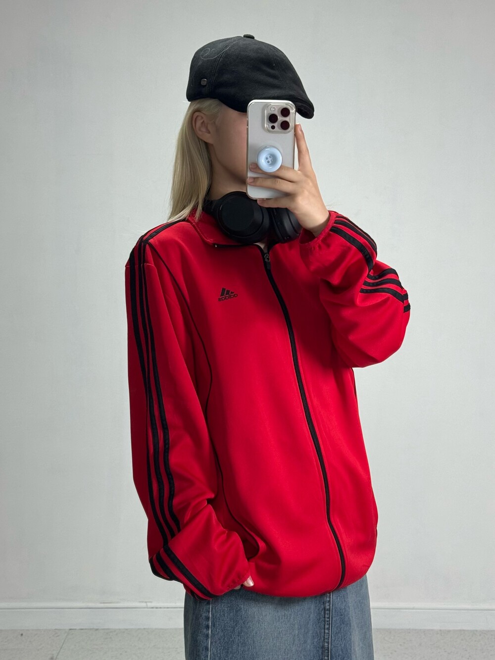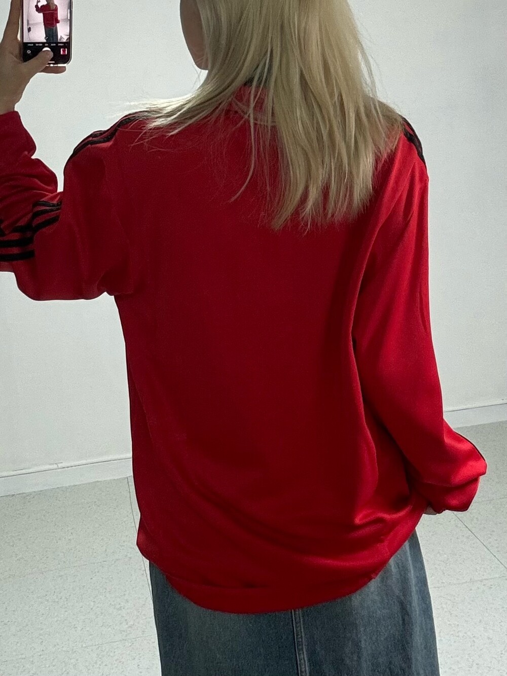 •아방루즈핏 아디다스 져지에요! 채도 낮은 레드컬러라 착용할때 부담 없고 블랙 삼선이라 멋진 느낌 가득스.. 🖤❤️