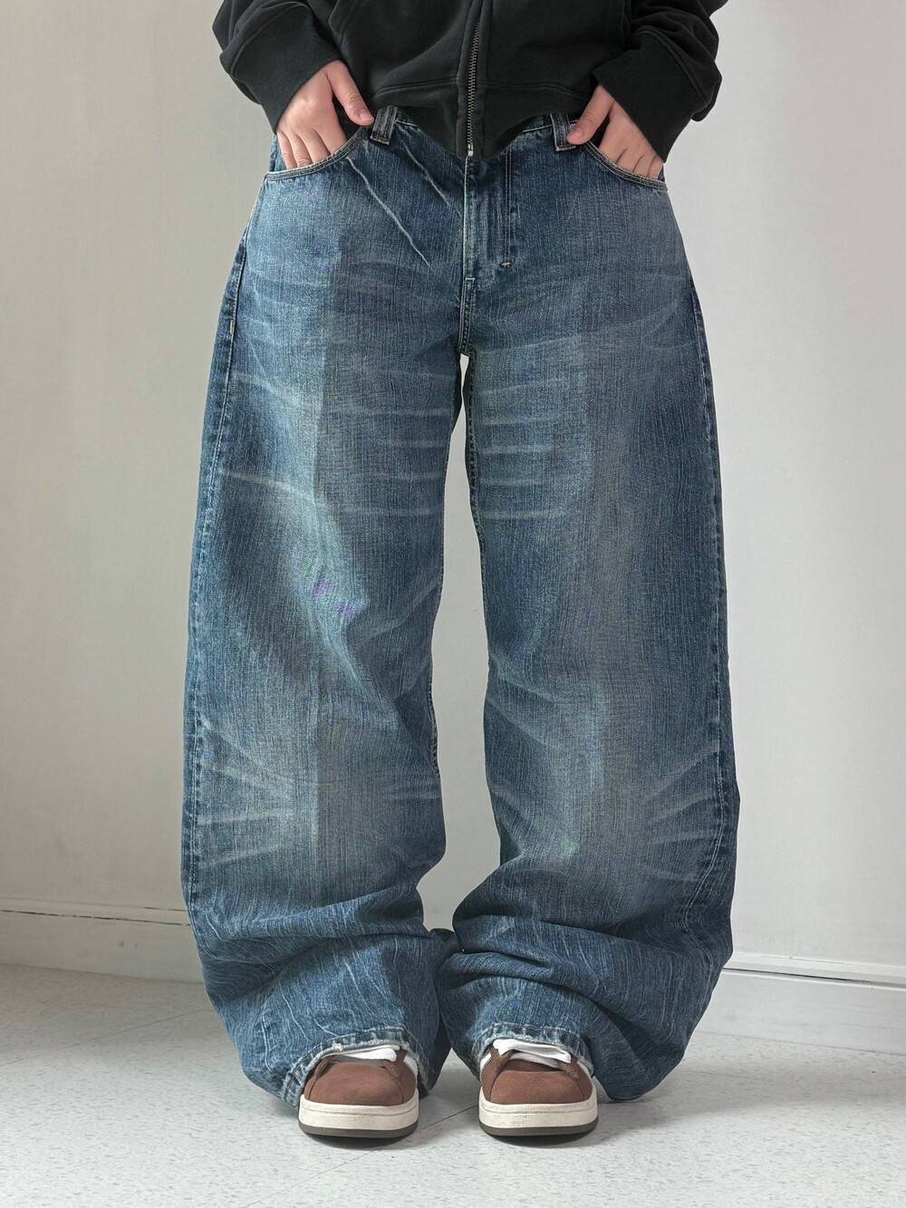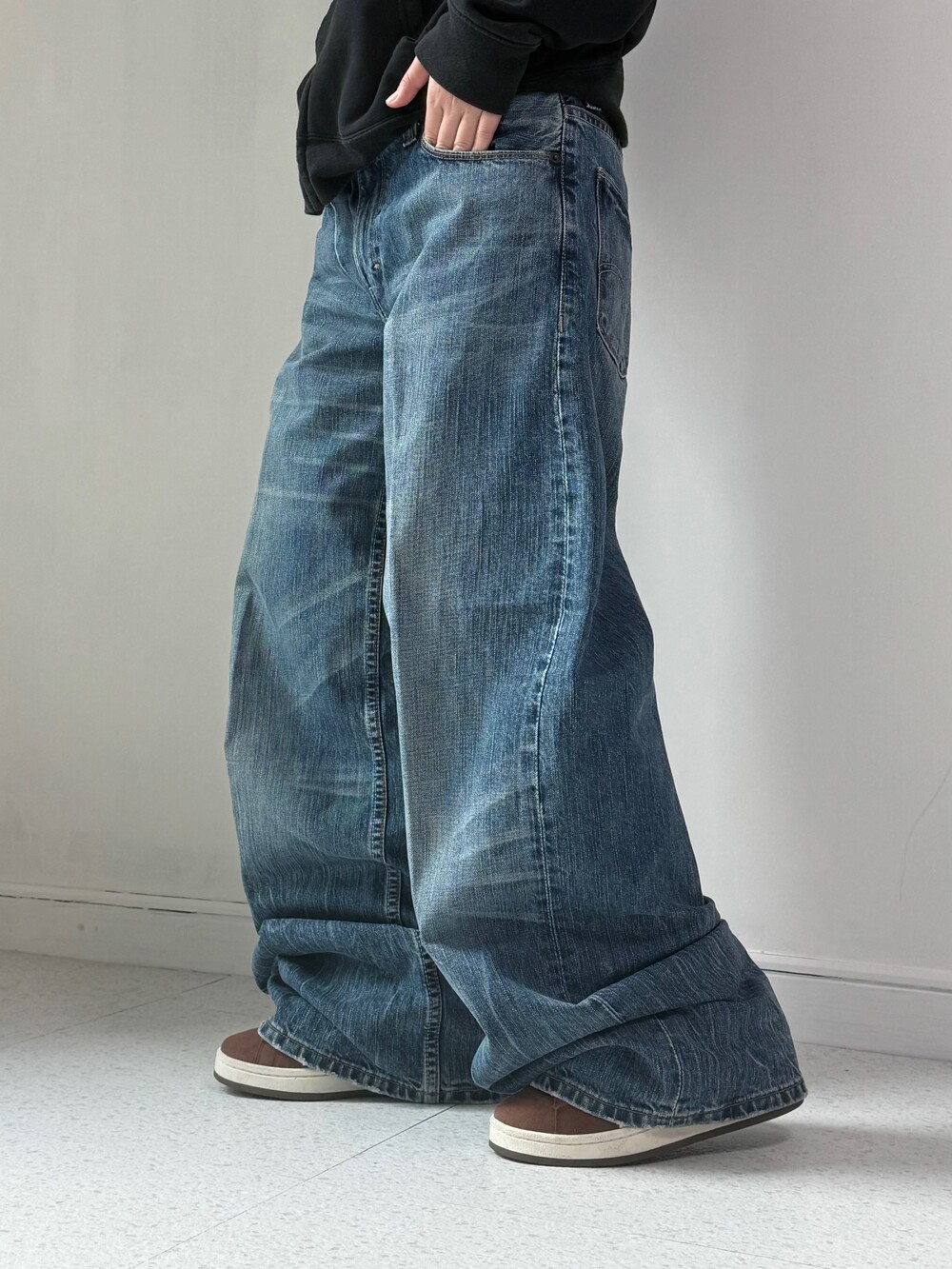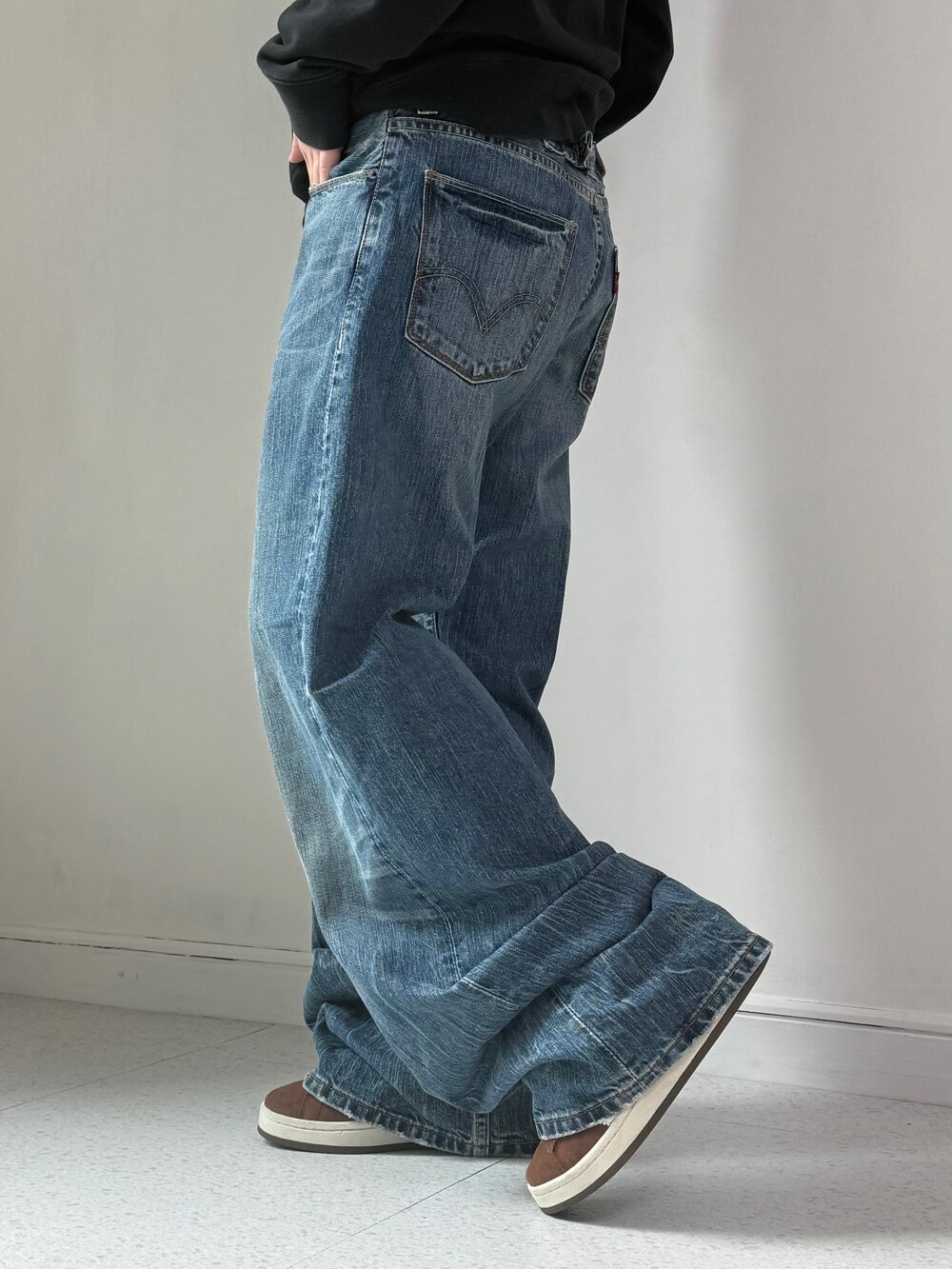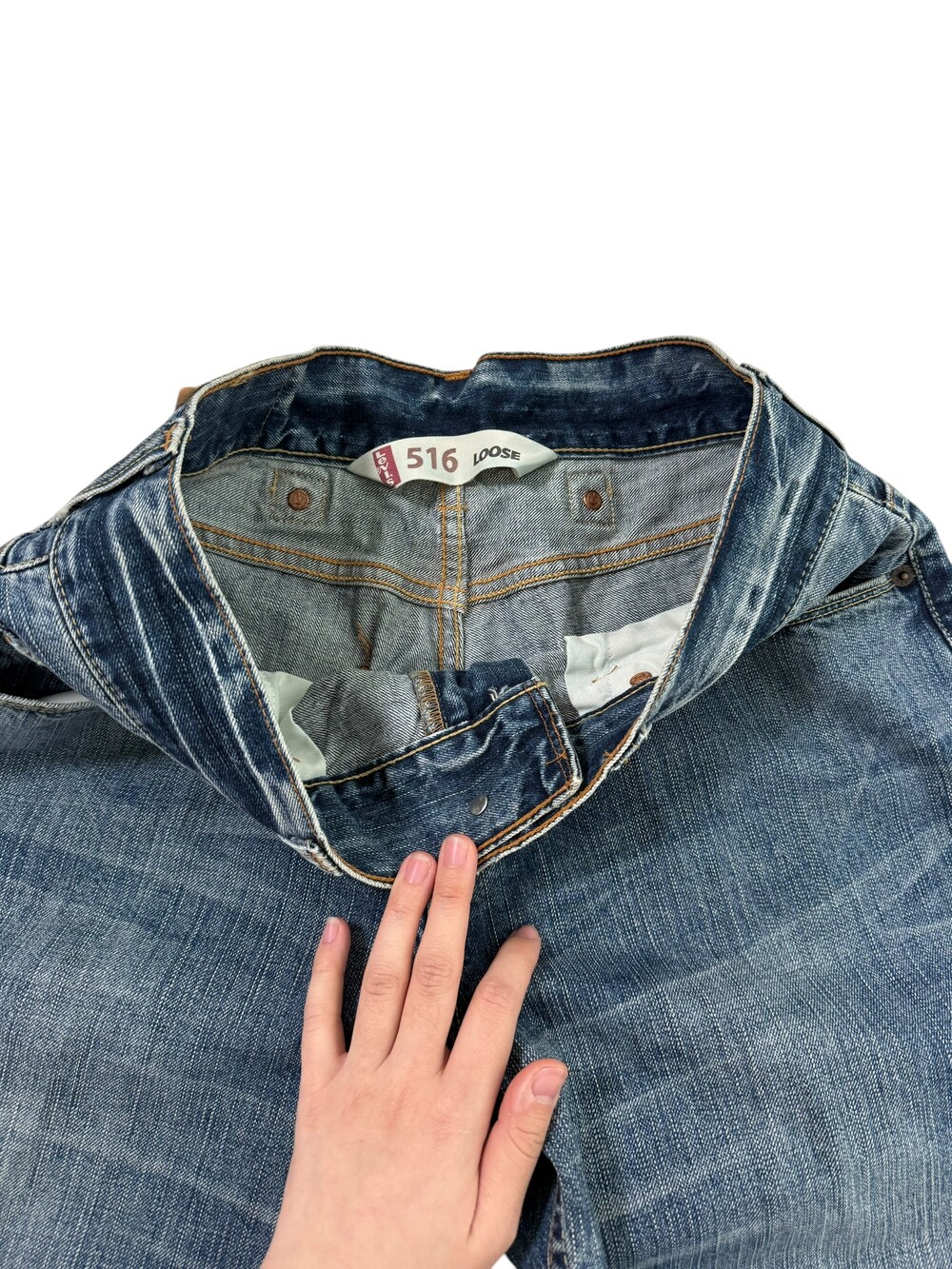 •와이드루즈핏이 낭낭한 리바이스 516 데님팬츠에요! 워싱이 멋스럽게 빠져있어 단독으로 입었을때 더욱 예쁜것 같아요🖤