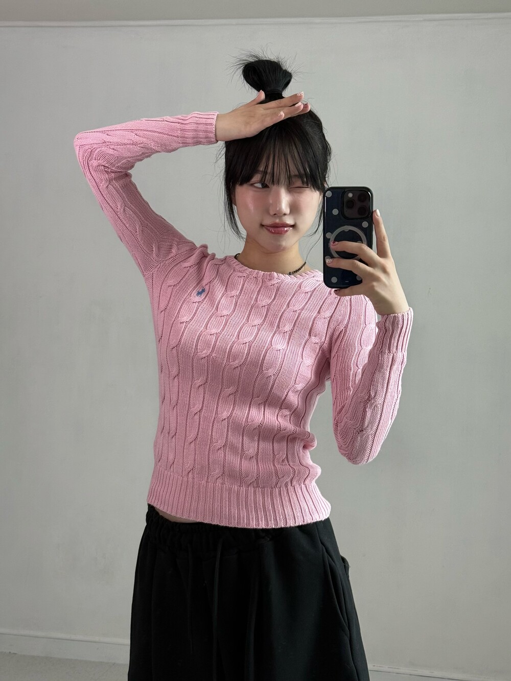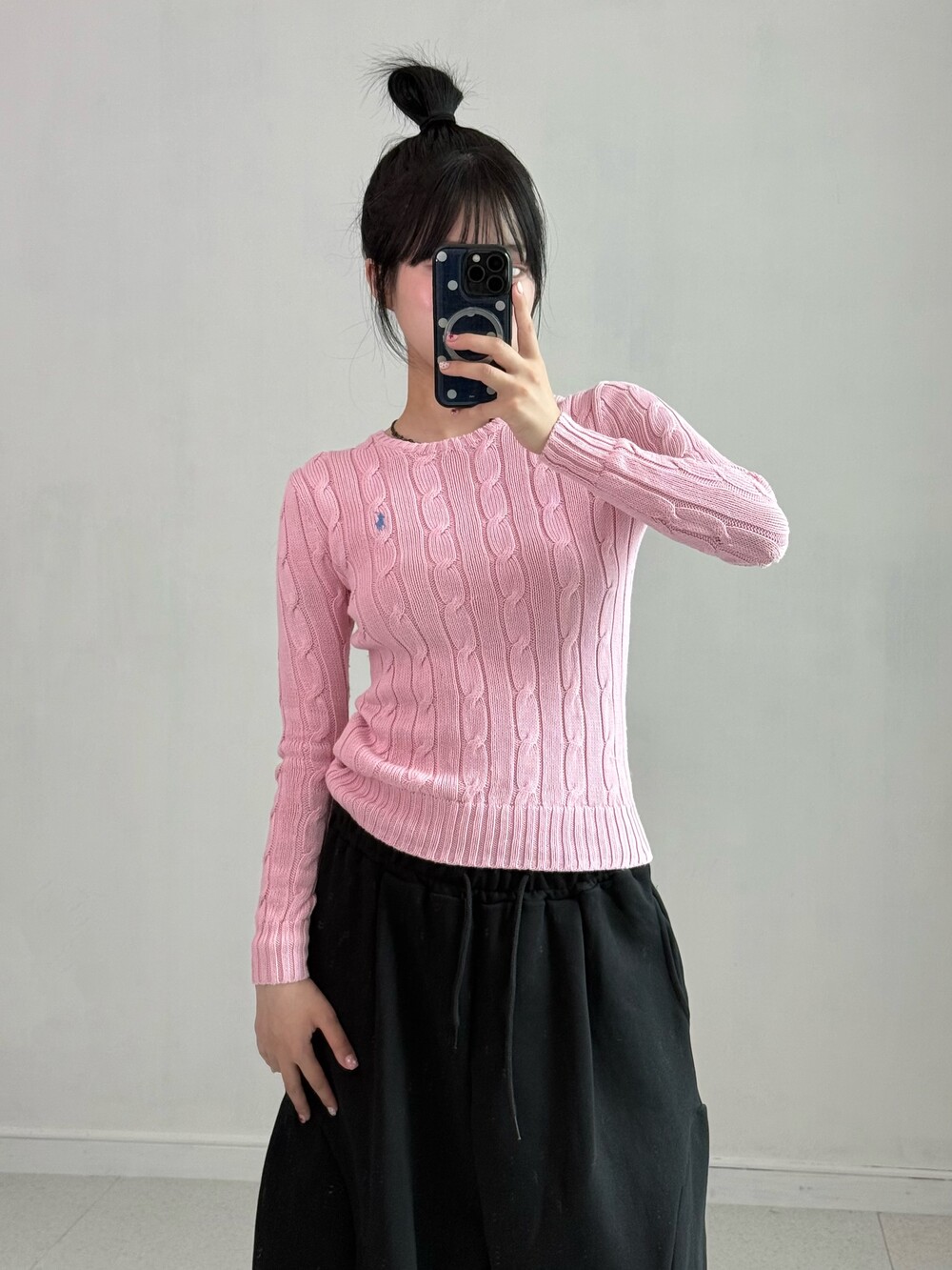 •폴로 딱붙 핑크 니트에요! 신형 제품이라 QR도 들어가있고 다가오는 가을에 입어주기 넘 좋은 기여운템!