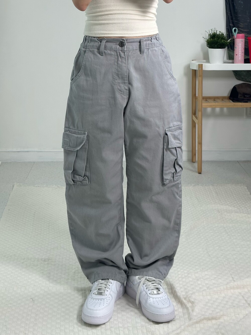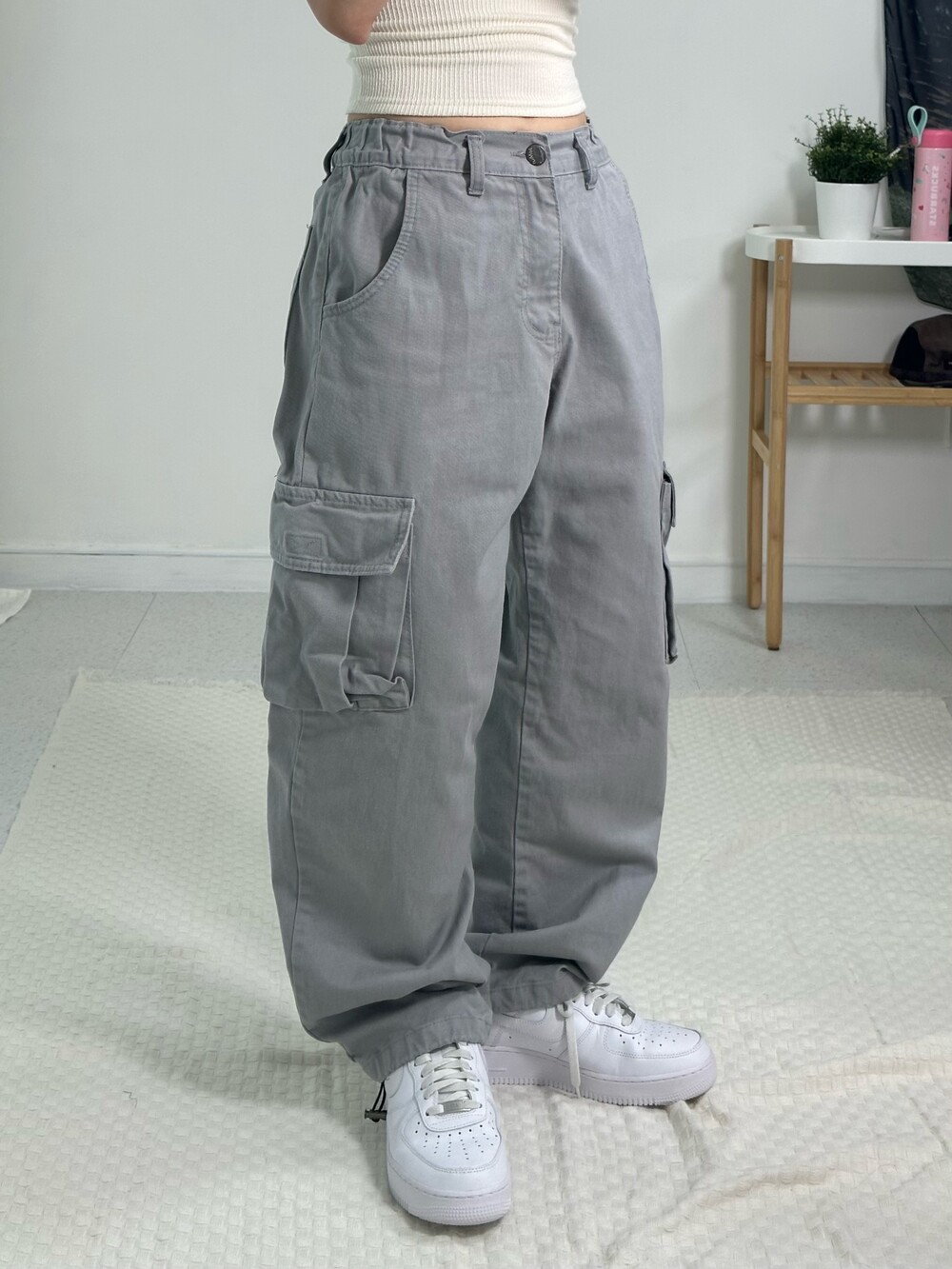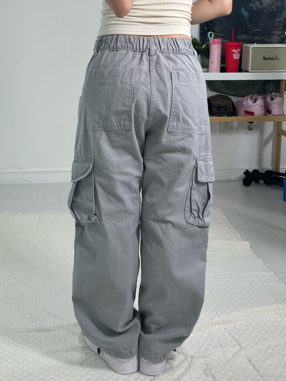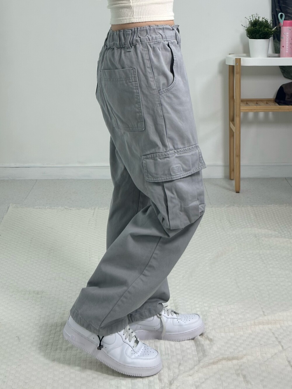 •라이트 그레이 컬러의 오묘한 컬러가 매력적인 카고에요! 베이직한 디자인이지만 무오데 에서 추구하는 살짝의 아방방한 핏을 가지고 있어 가지고 왔어요ㅎㅎ 허리가 밴딩이라 더 편안하게 착용하실 수 있고 밑단에 스트링이 있어 조거핏 연출하셔도 됩니다!