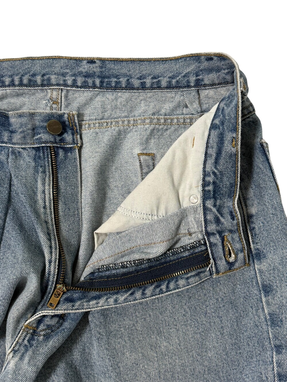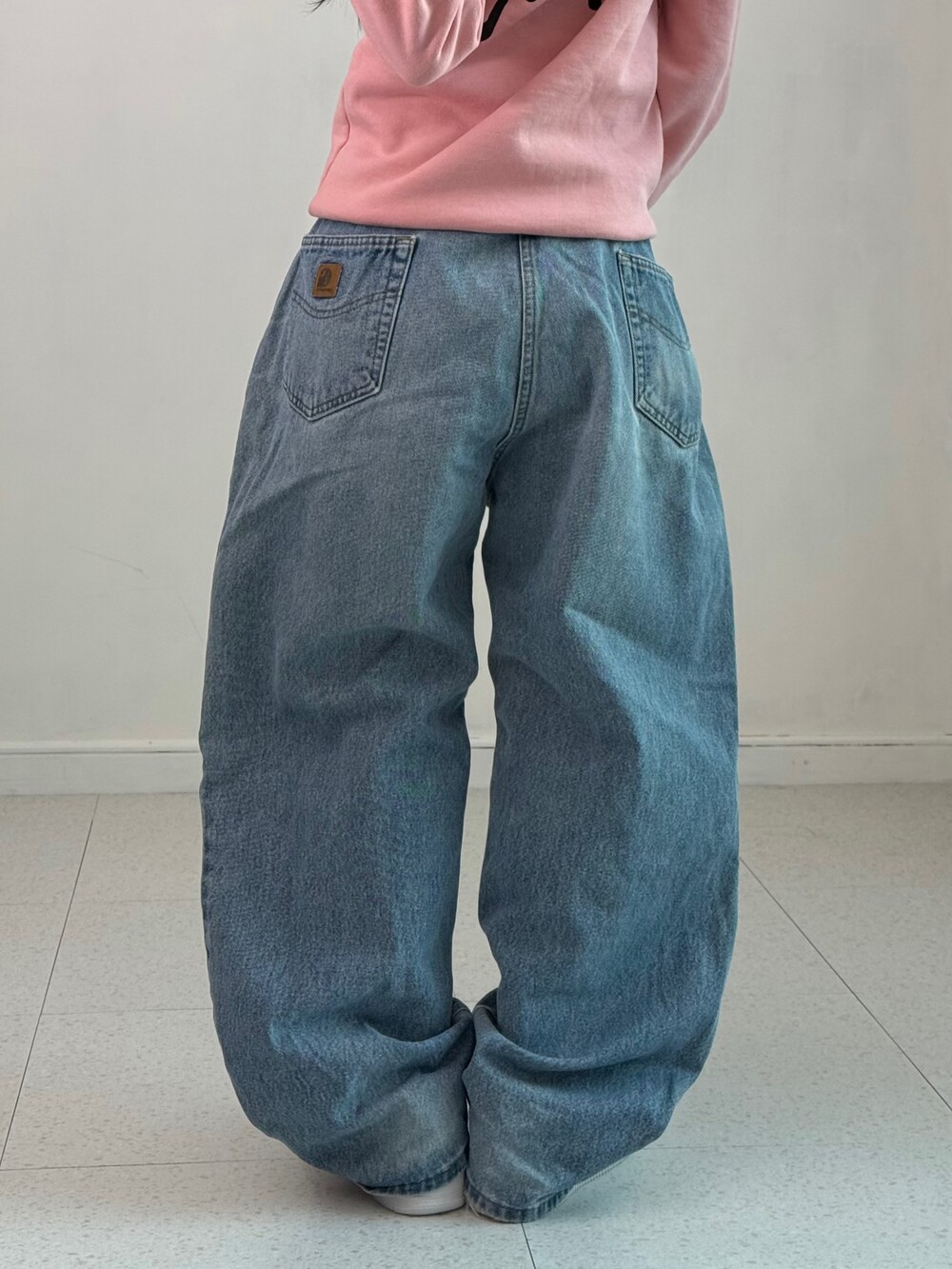 •칼하트 데님 팬츠~심지어 만들어진지 20년이 넘은 아이에요! 가죽탭은 흔하지 않을뿐더러 더 이상 나오지 않는 제품이기에 더욱 인기가 많은데요, 핏도 과하지 않은 와이드함이라 평소 즐겨입어주시기 좋은 아이템이랍니다!