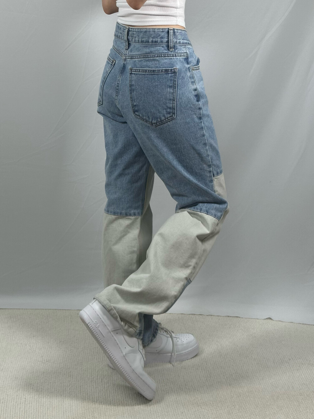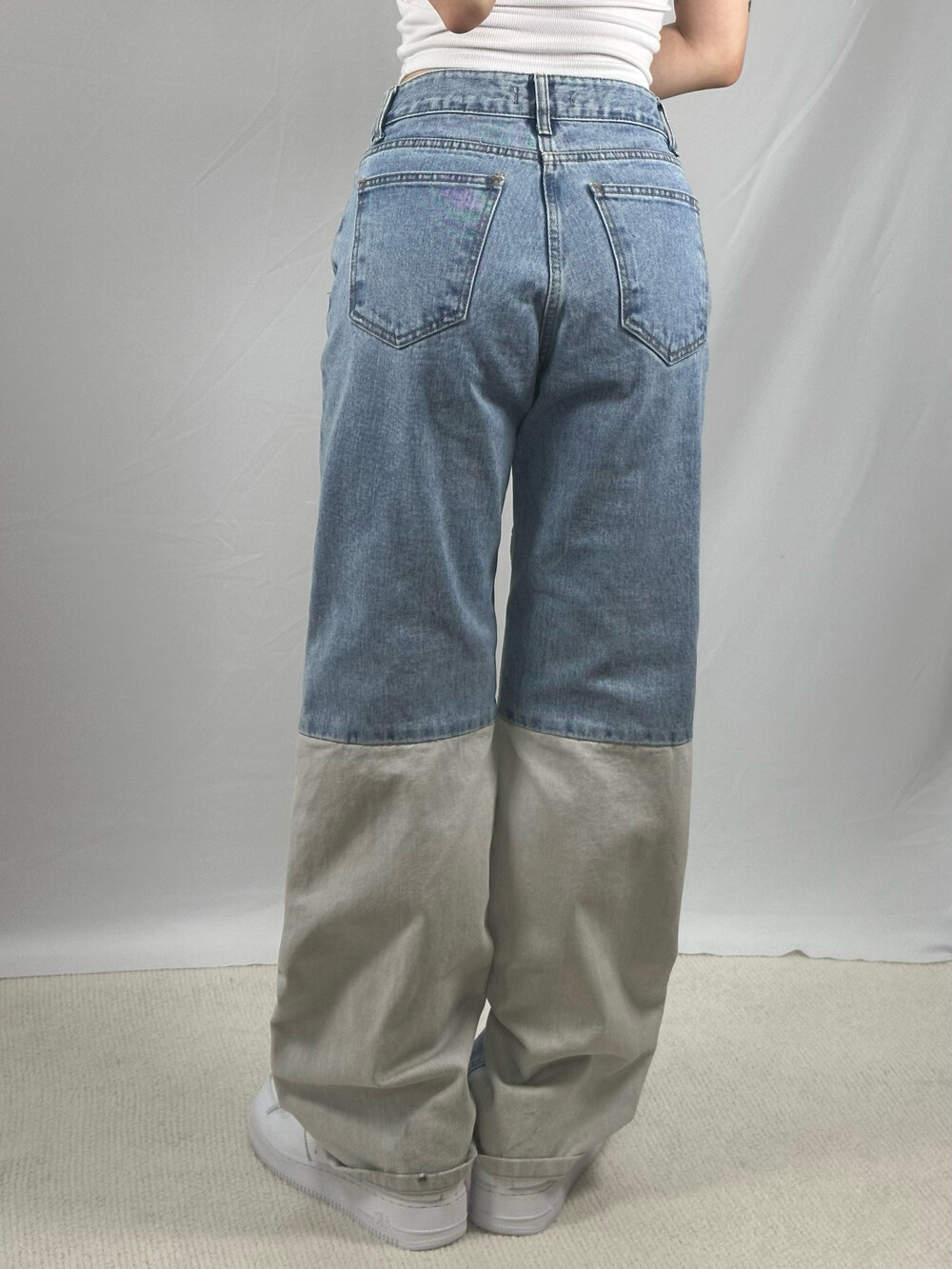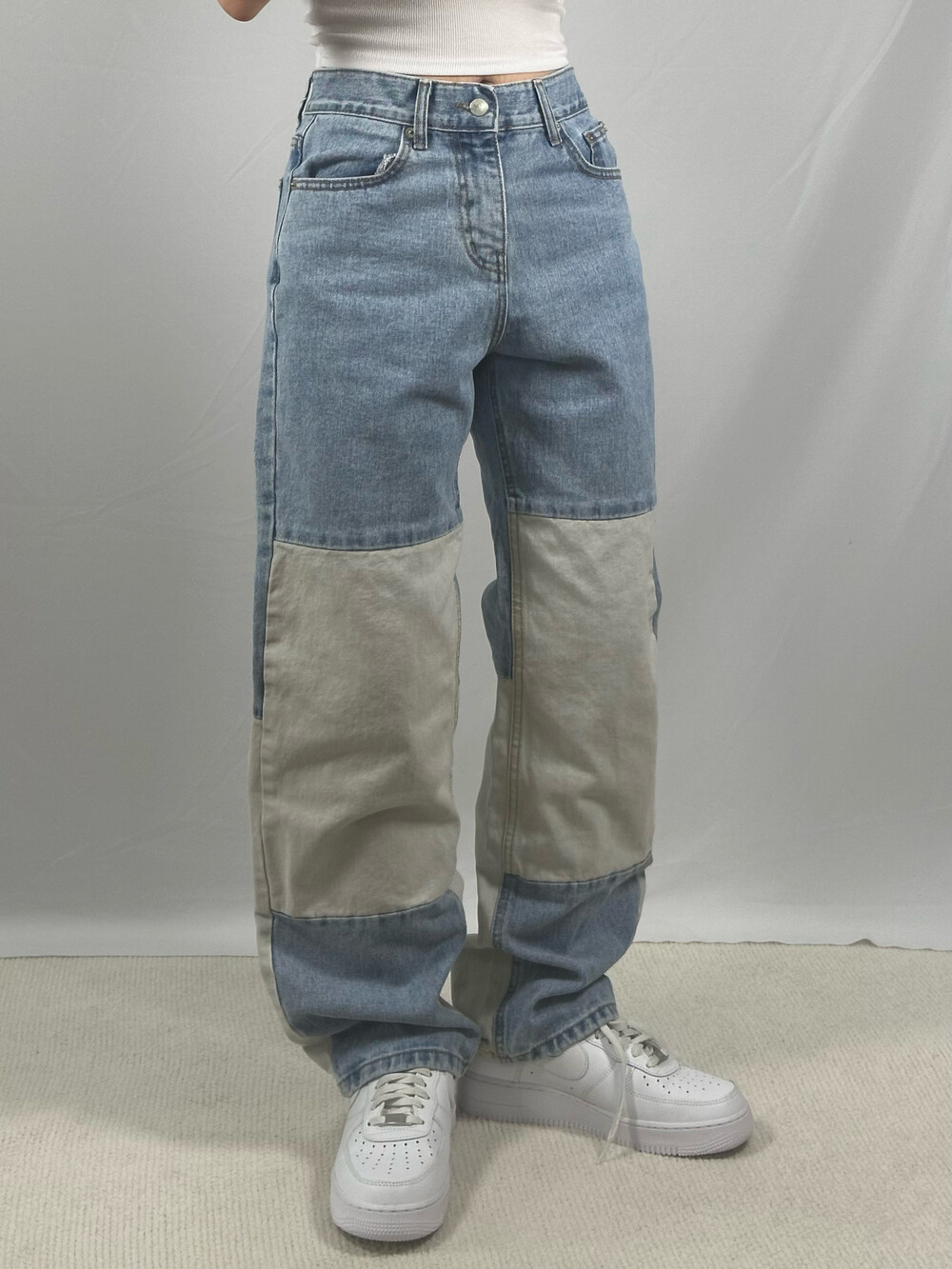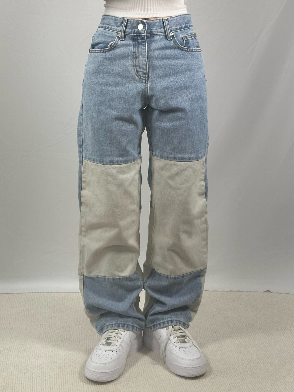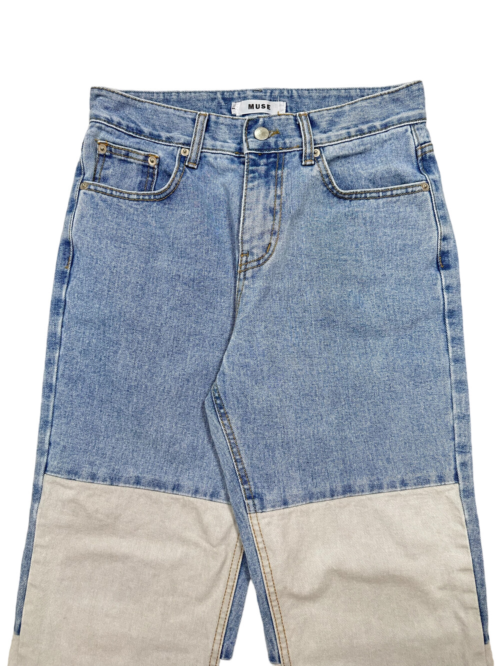 •하이웨스트로 깔끔하고 특이하게 입기 좋은 데님팬츠에요! 유니크하게 다른 컬러의 패치로 디자인 되어 있어서 소장욕구 뿜뿜💨