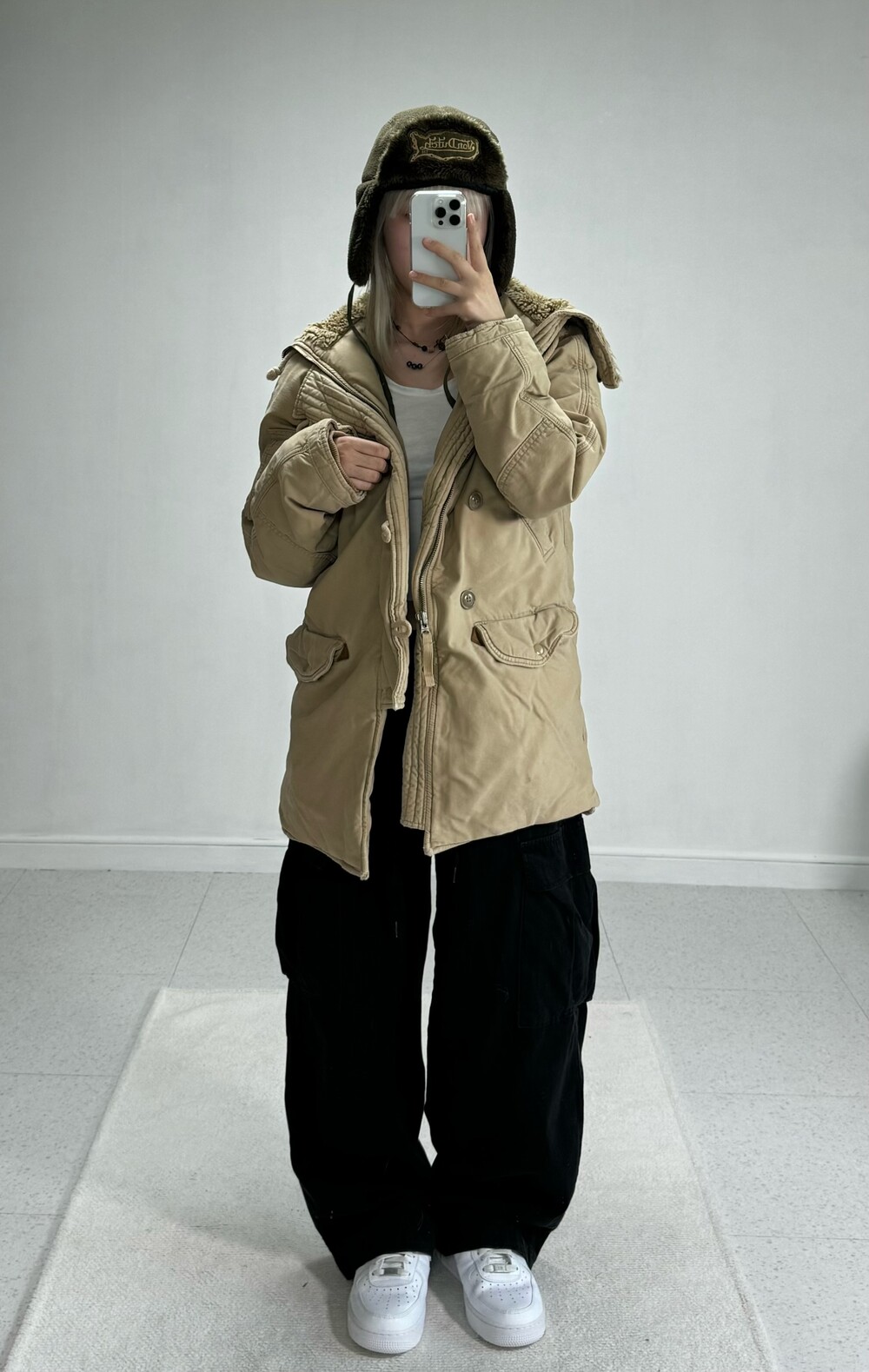 •묵직+귀여움+디테일 잔뜩 폴로 아우터에요ㅎㅎ 미디한 기장에 엉덩이까지 가려줘서 따뜻하고 밤에 입어도 춥지 않을만큼 보온성이 뛰어난 제품이에요! 색감이나 디자인 자체가 코디하기 어렵지 않아서 데일리로 즐겨입기 좋은 아이템👍🏻