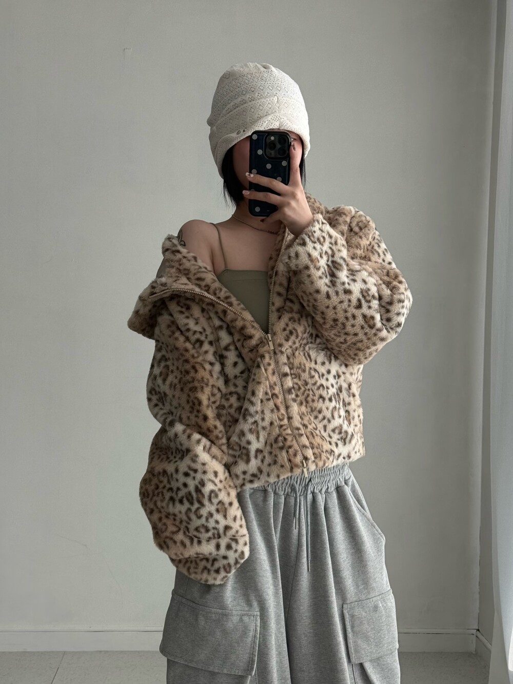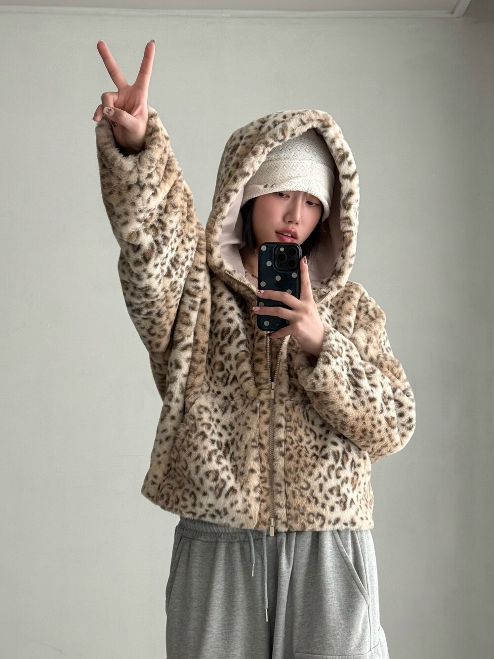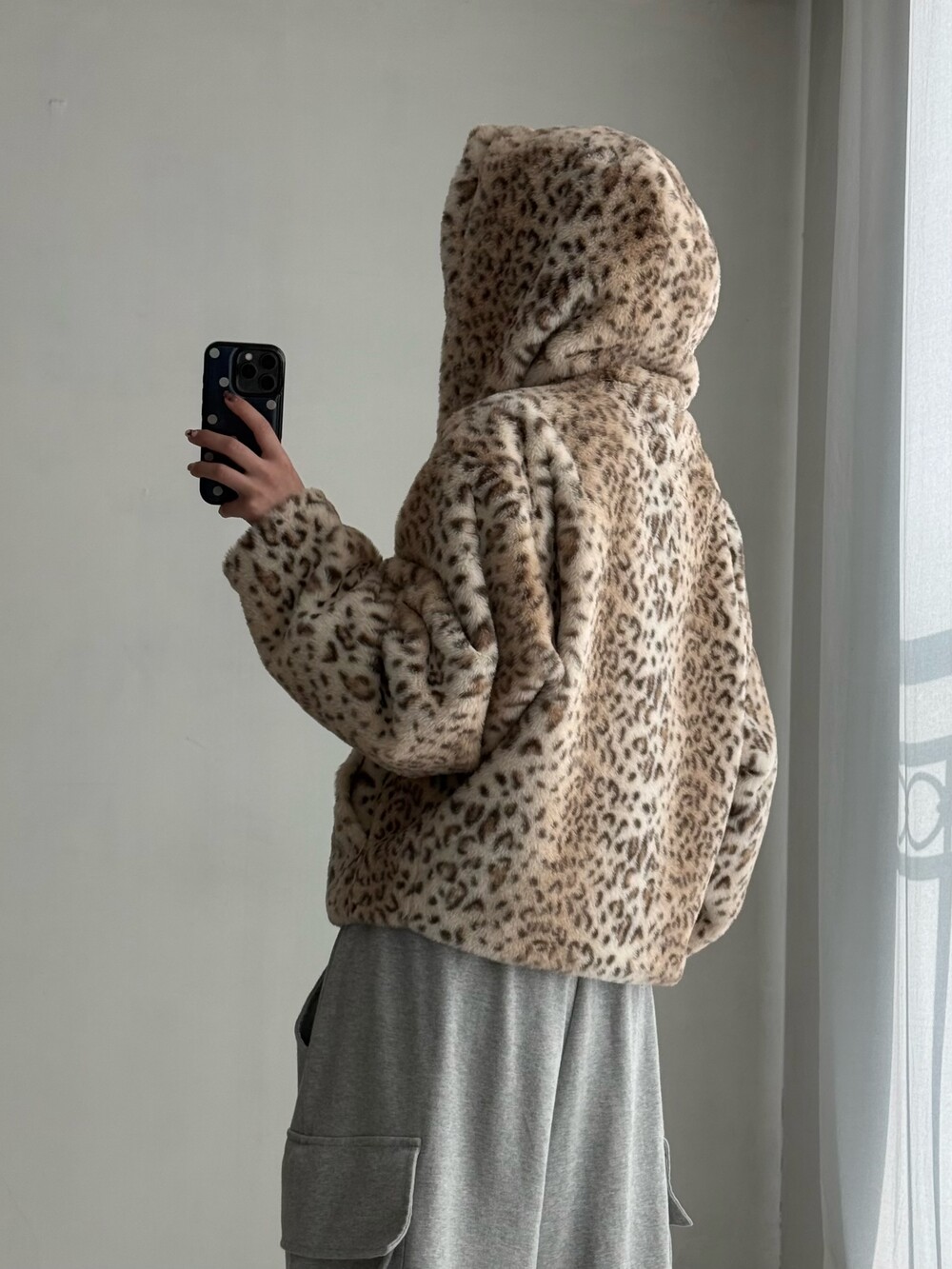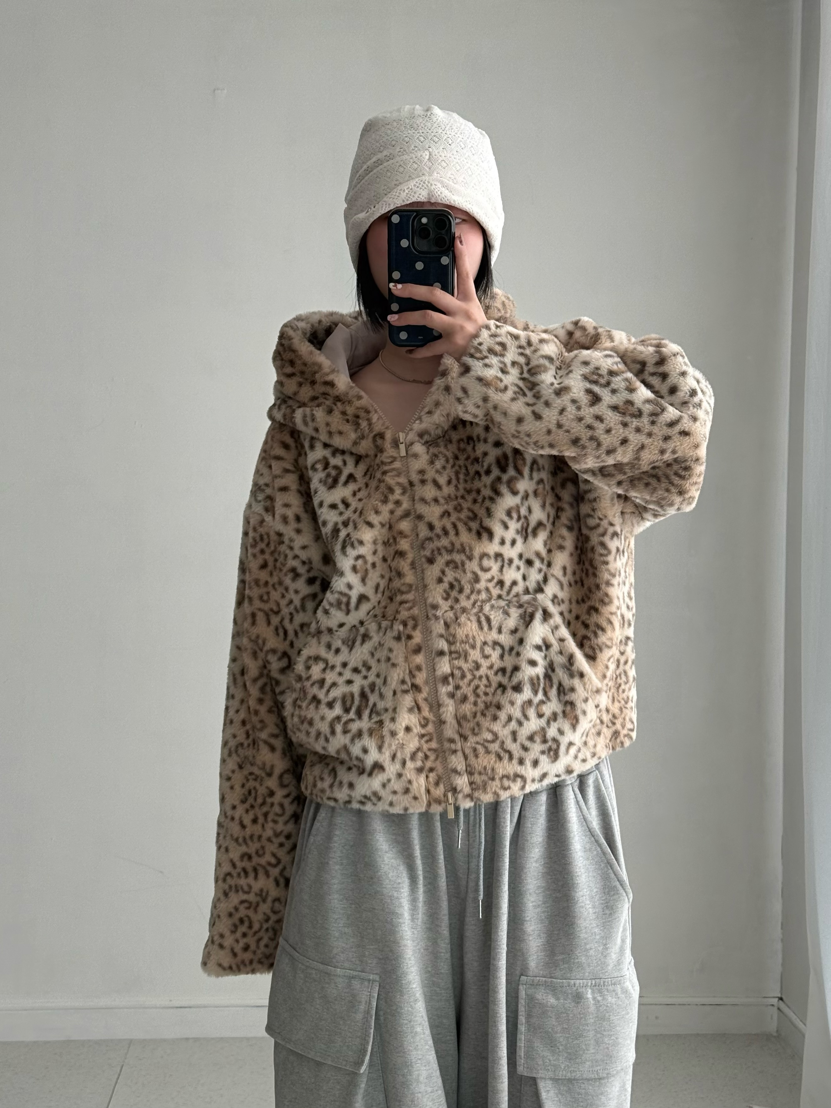 •어반드레스 호피 투웨이 퍼 자켓 입니다. 촤르륵 흐르는 핏과 큰 후디가 넘 마음에 드는 제품이에요! 섹시힙..😎🖤