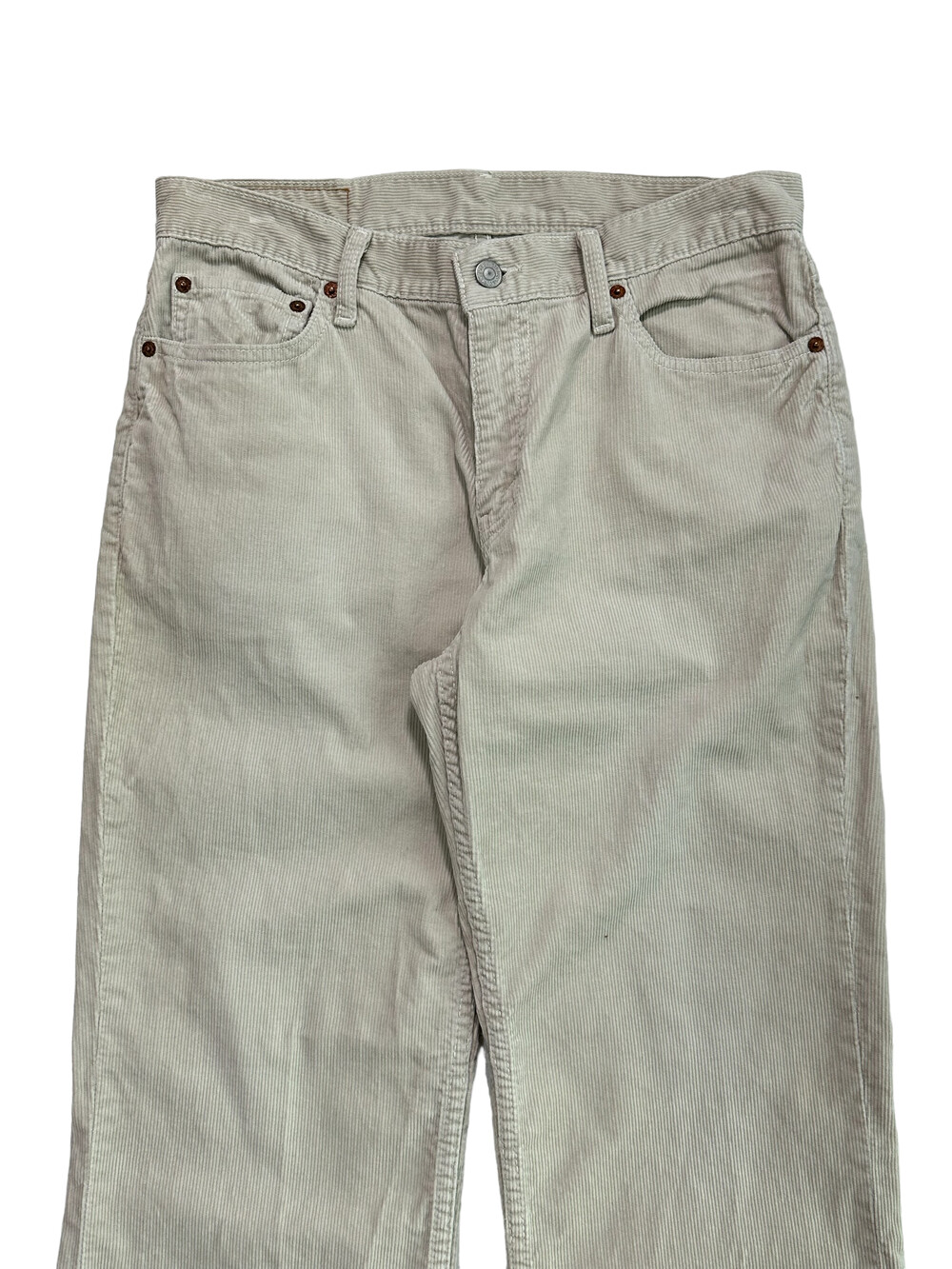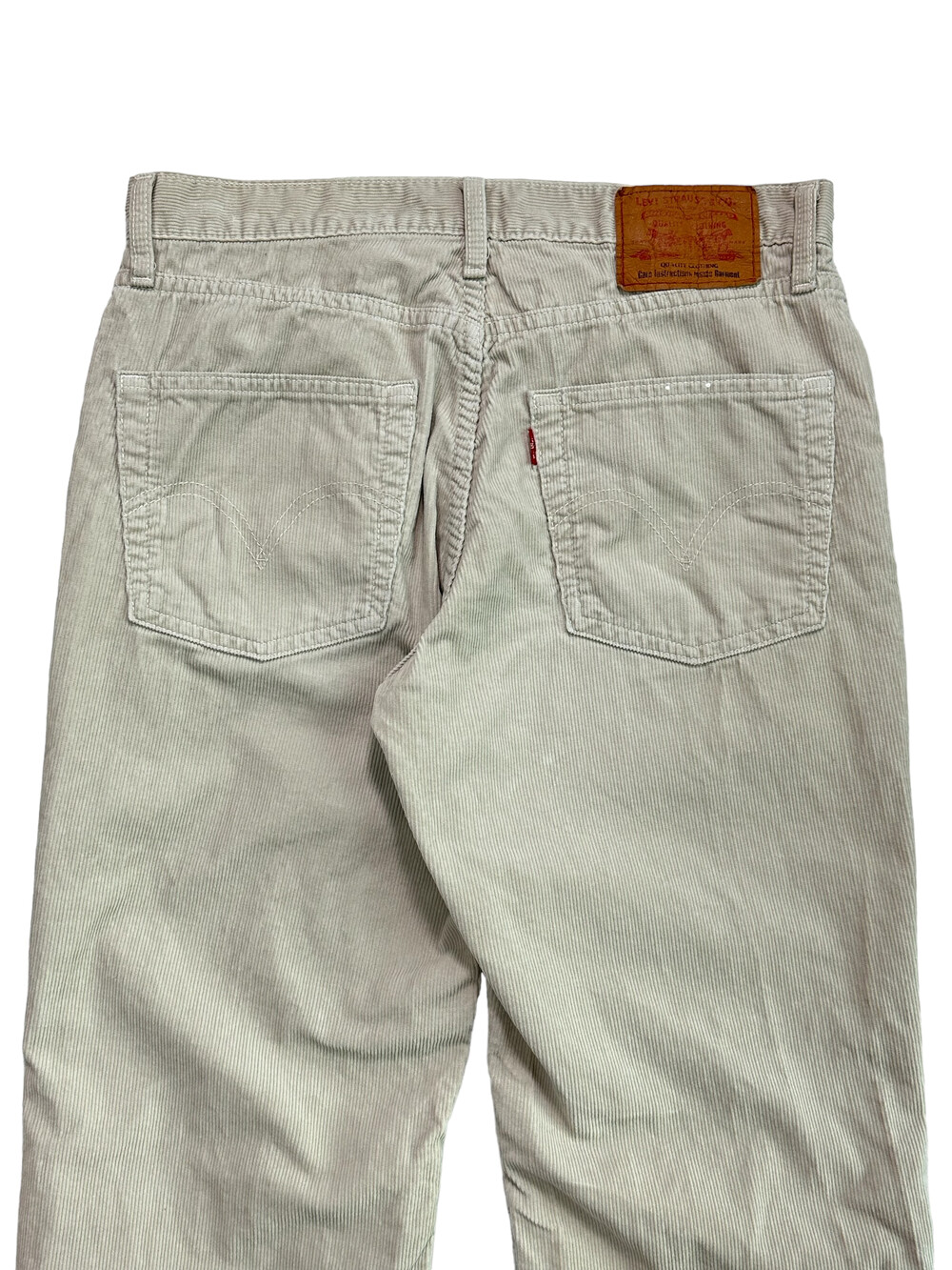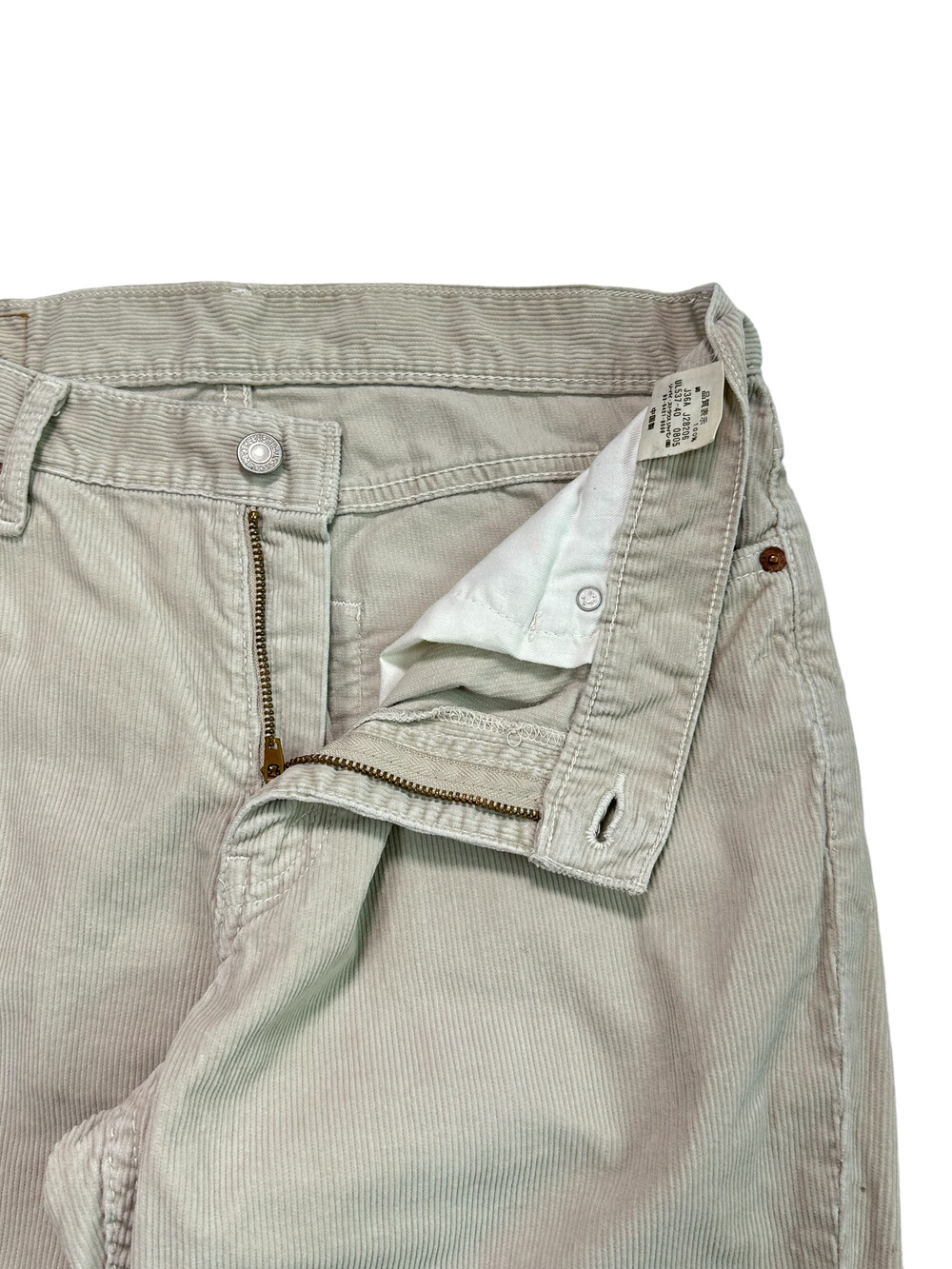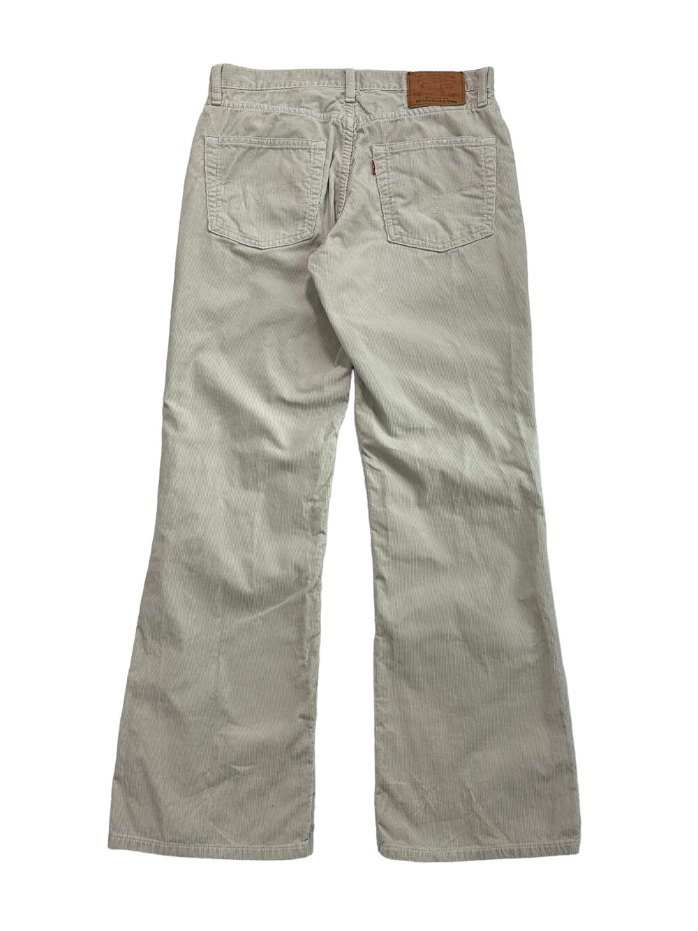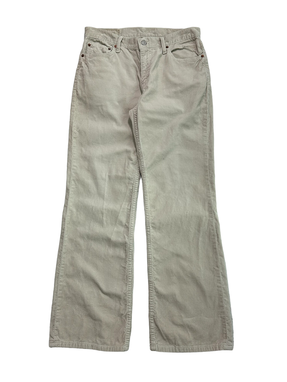 •아이보리 컬러 리바이스 코듀로이 팬츠에요! 로우라이즈로 입어주시는 제품이고 갈수록 와이드해지는 실루엣이라 롱다리로 만들어주더라구요!>,<