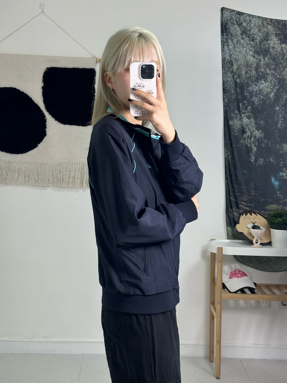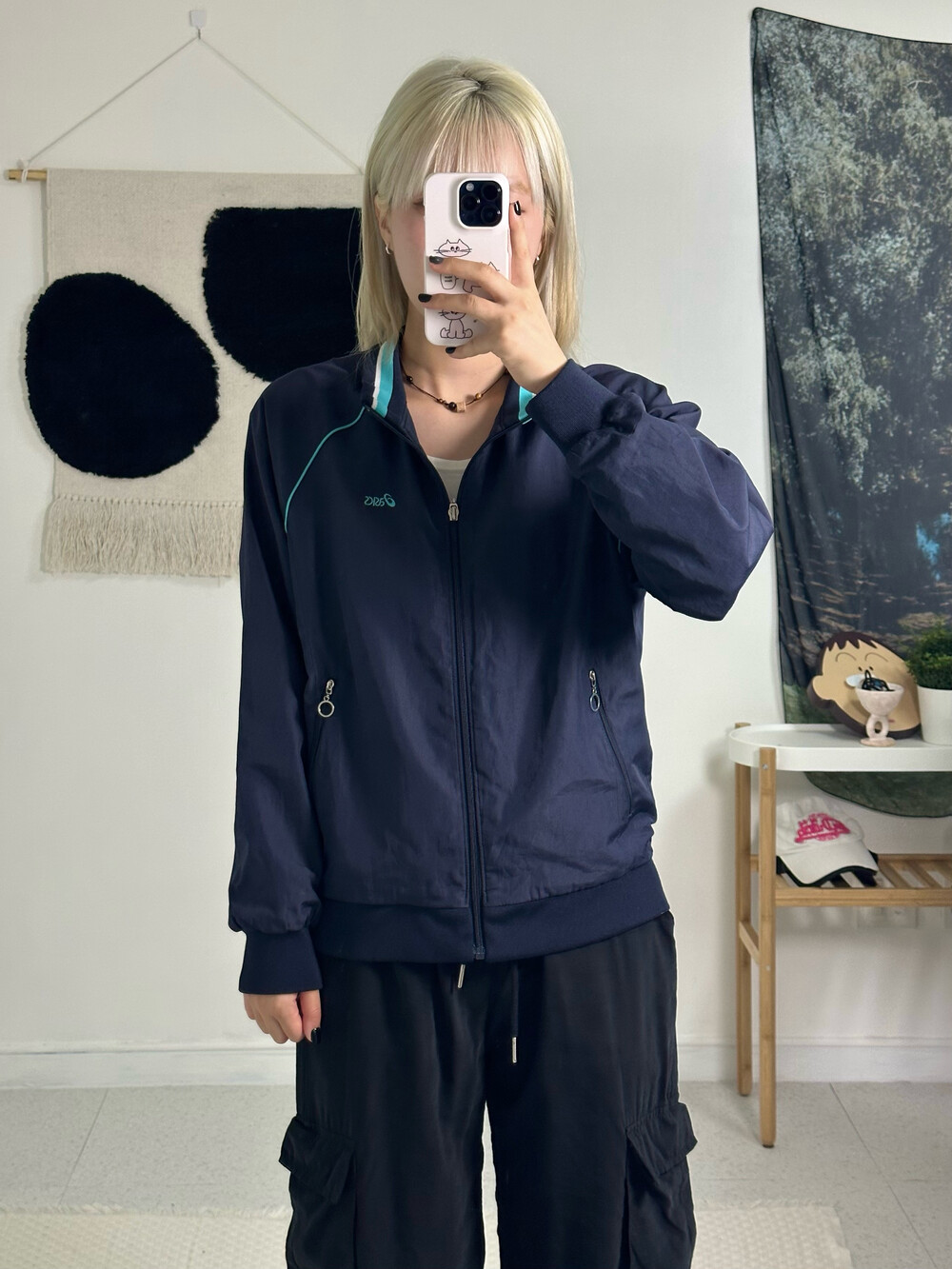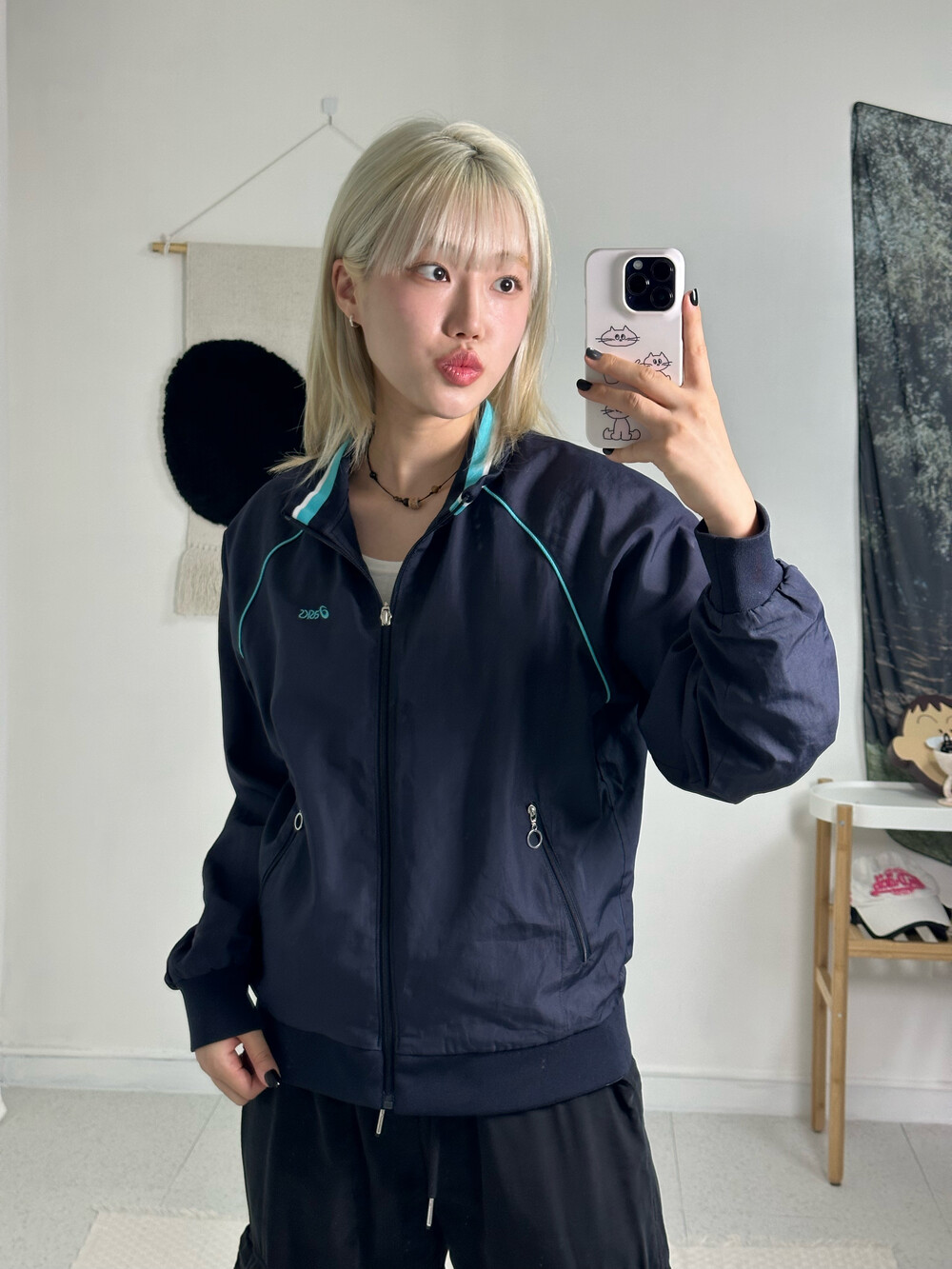 •네이비와 스카이블루 자수 로고가 너무 예쁜 제품..! 살짝 아방하게 떨어지면서 귀엽게 착용하시기 좋은 아우터입니다:)