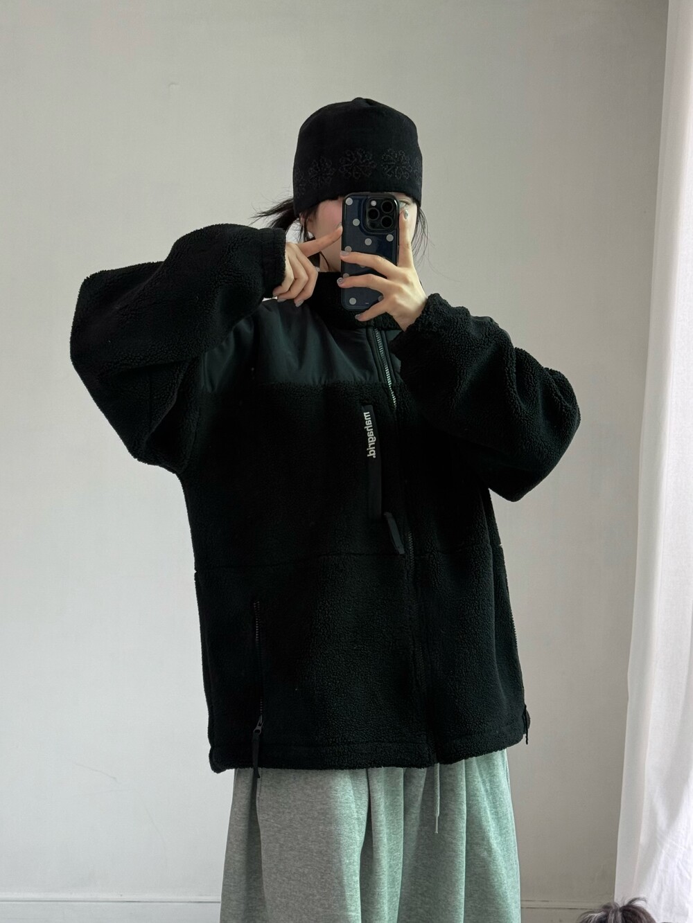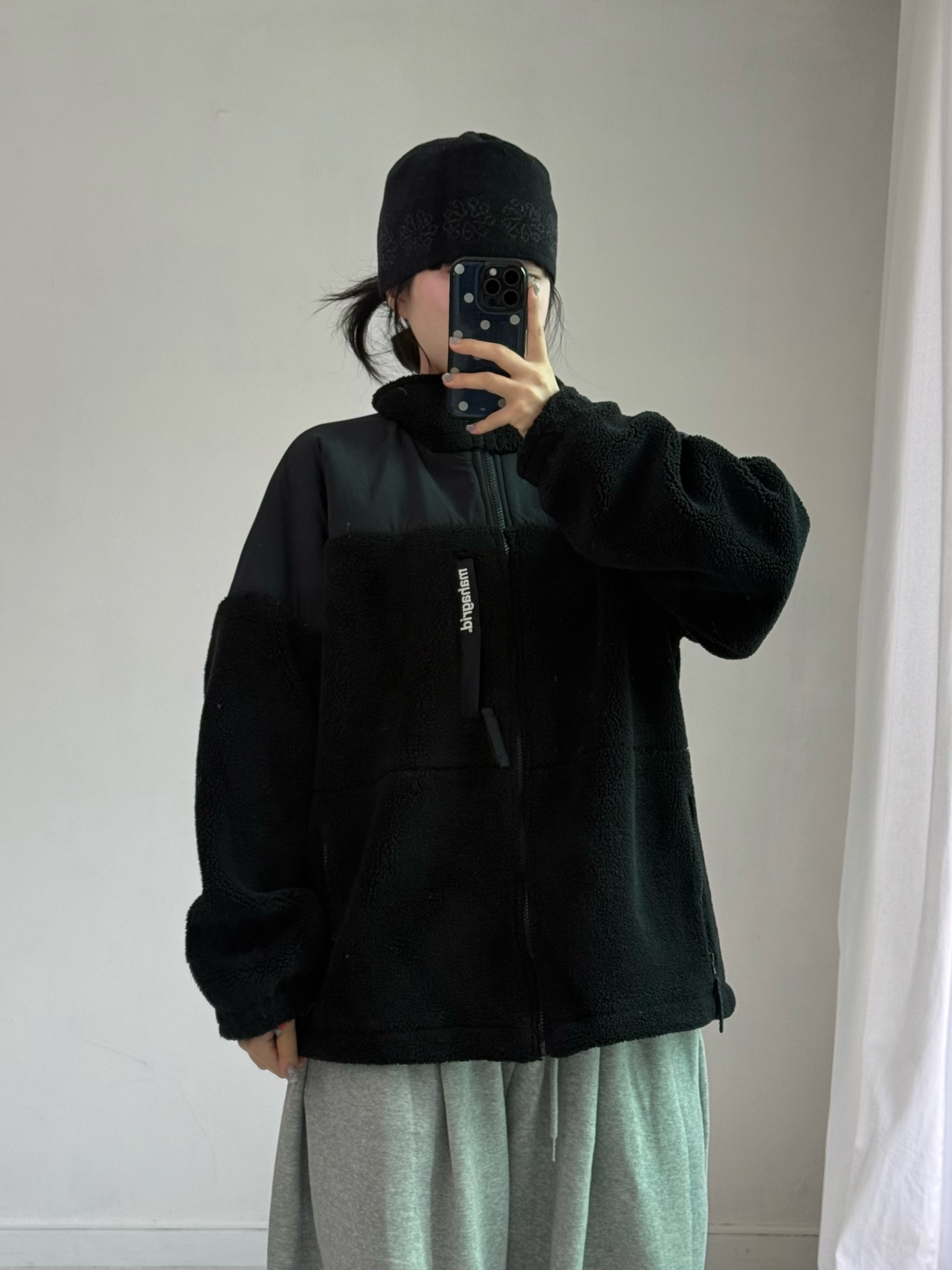 •마하그리드 폭닥 블랙 후리스ㅎㅎ 안에 두꺼운 후드 입어주고 요고 입어주면 패딩 저리가라.. 그만큼 따뜻한 아이템이에요- (새상품12만9천원)