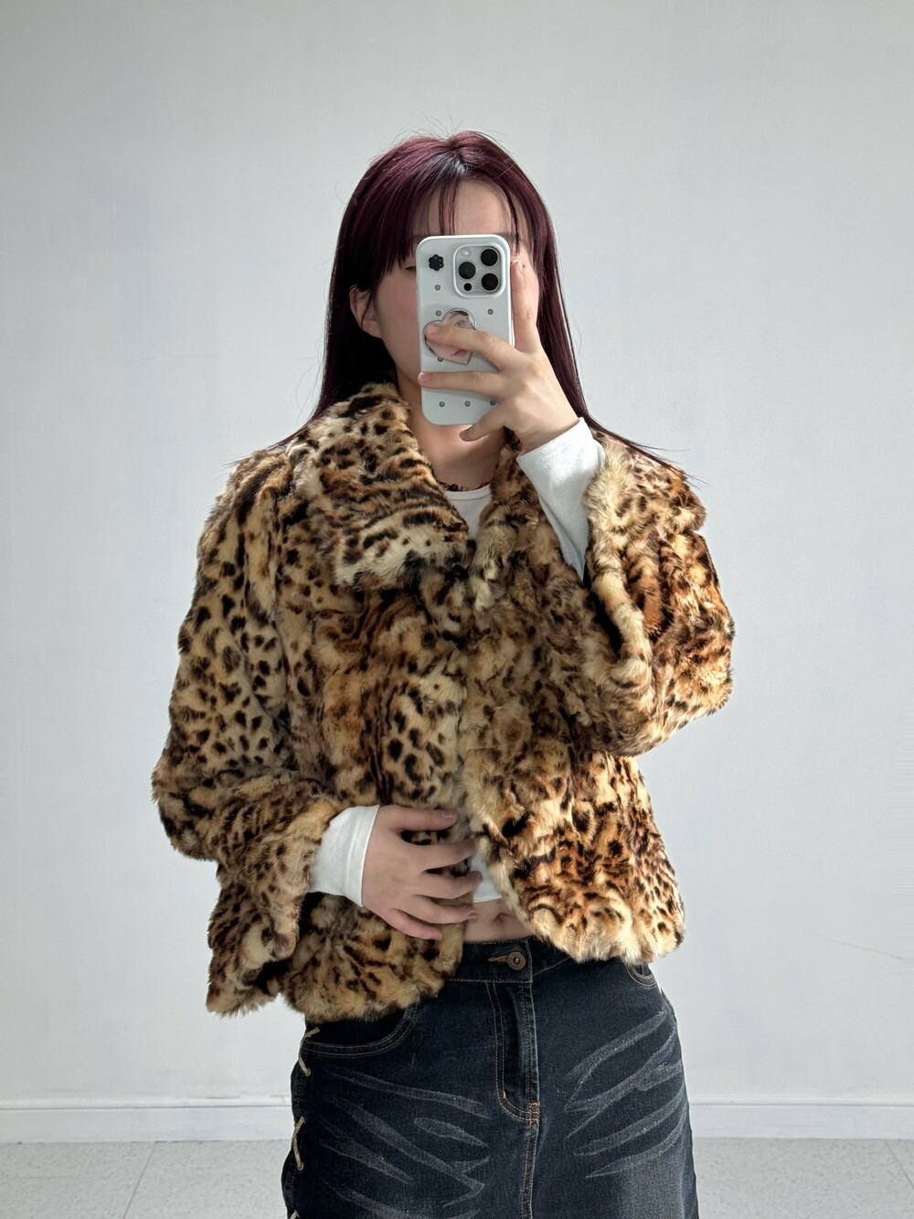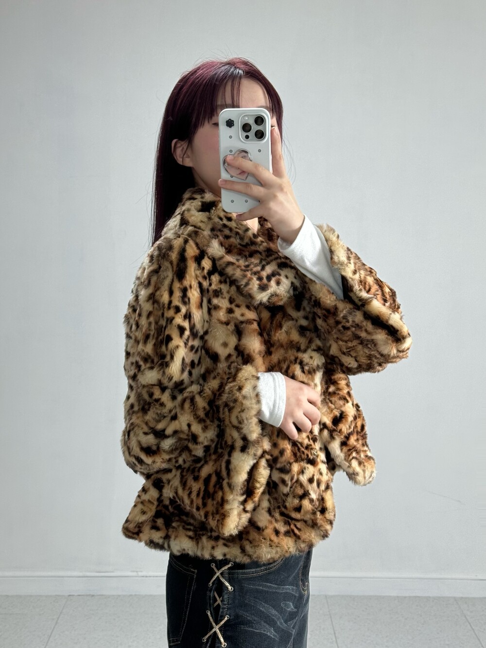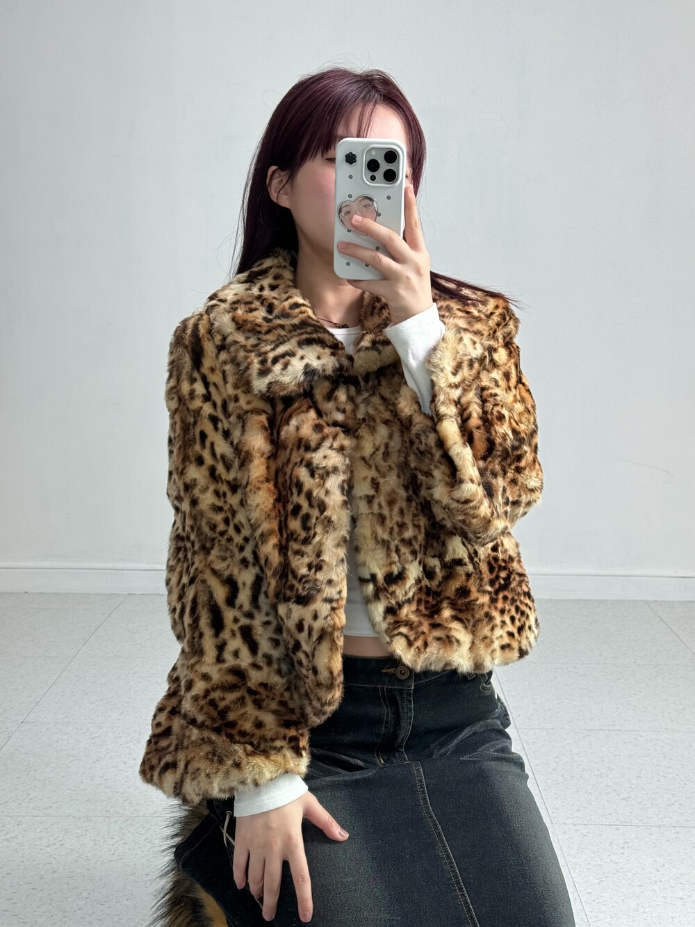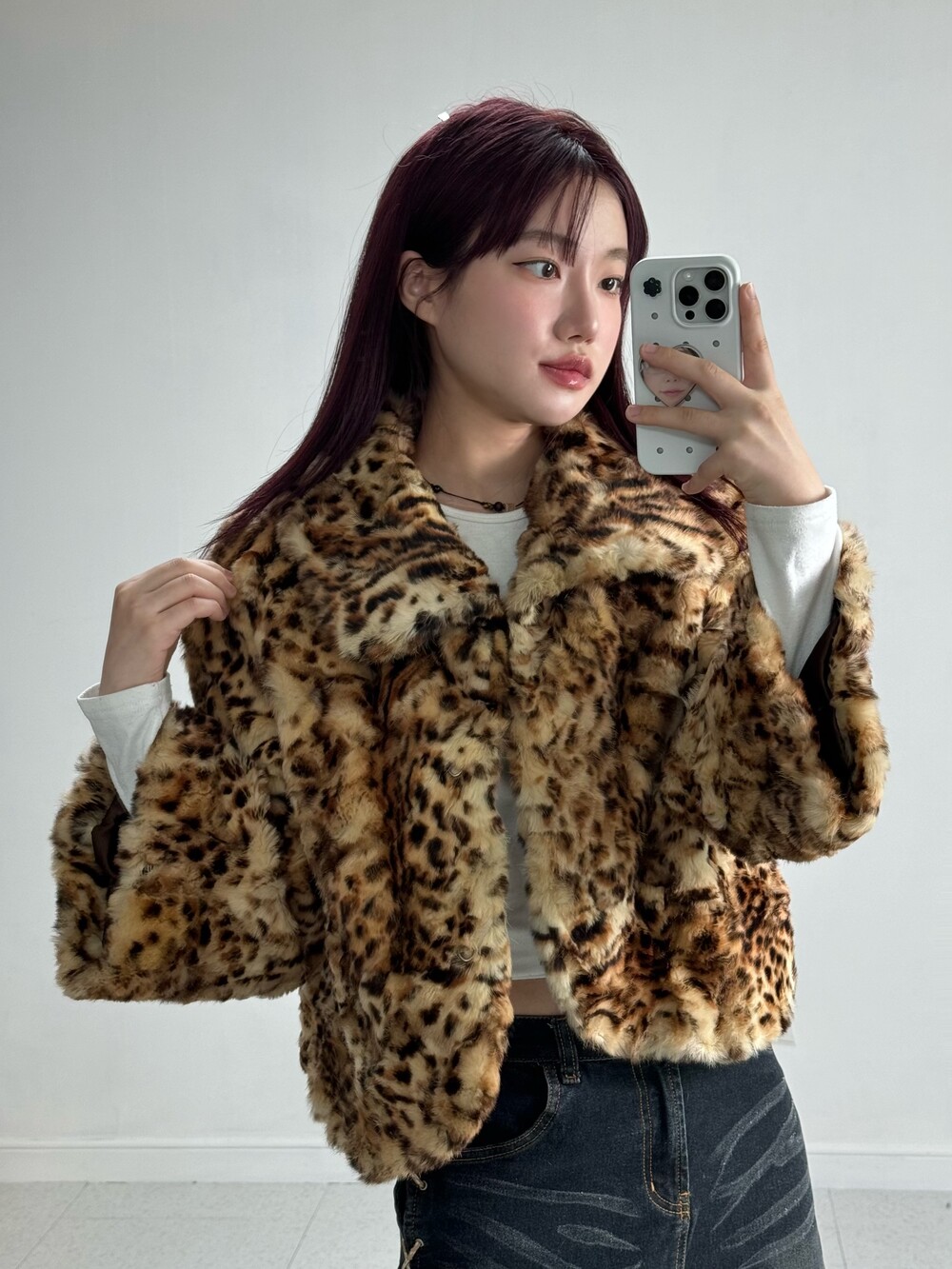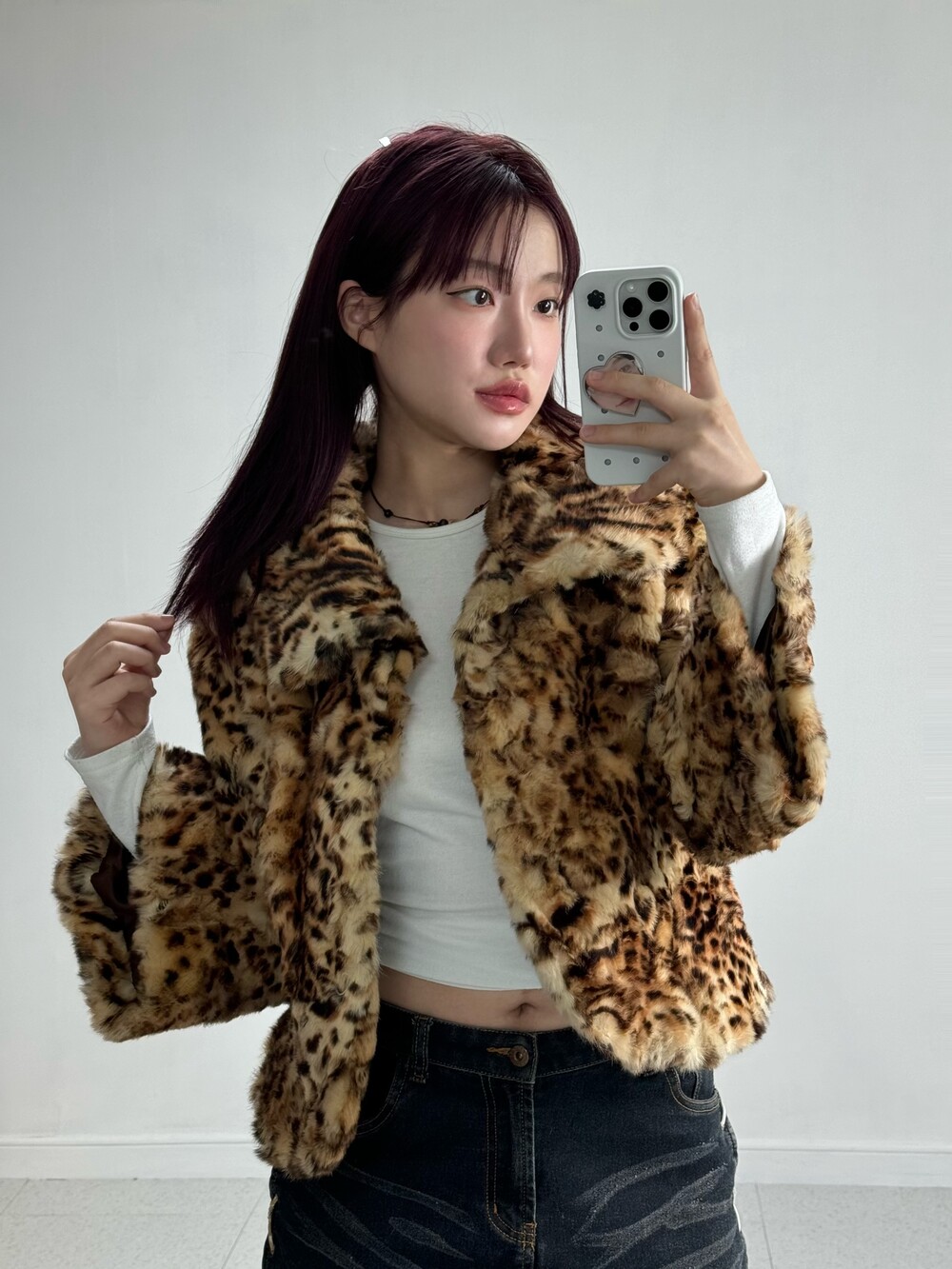 •적당한 기장감의 호피퍼자켓 입니다! 큰 카라디자인과 소매부분이 낭낭해서 더욱 여성스러움과 세련미가 뿜뿜한 아이템이에요! 오픈해서 입어줘도 예쁘구 잠궈도 예쁘구.. 뒷쪽 리본디자인도 넘 예쁘구,, 제 최애 퍼 아이템이랍니다 🖤