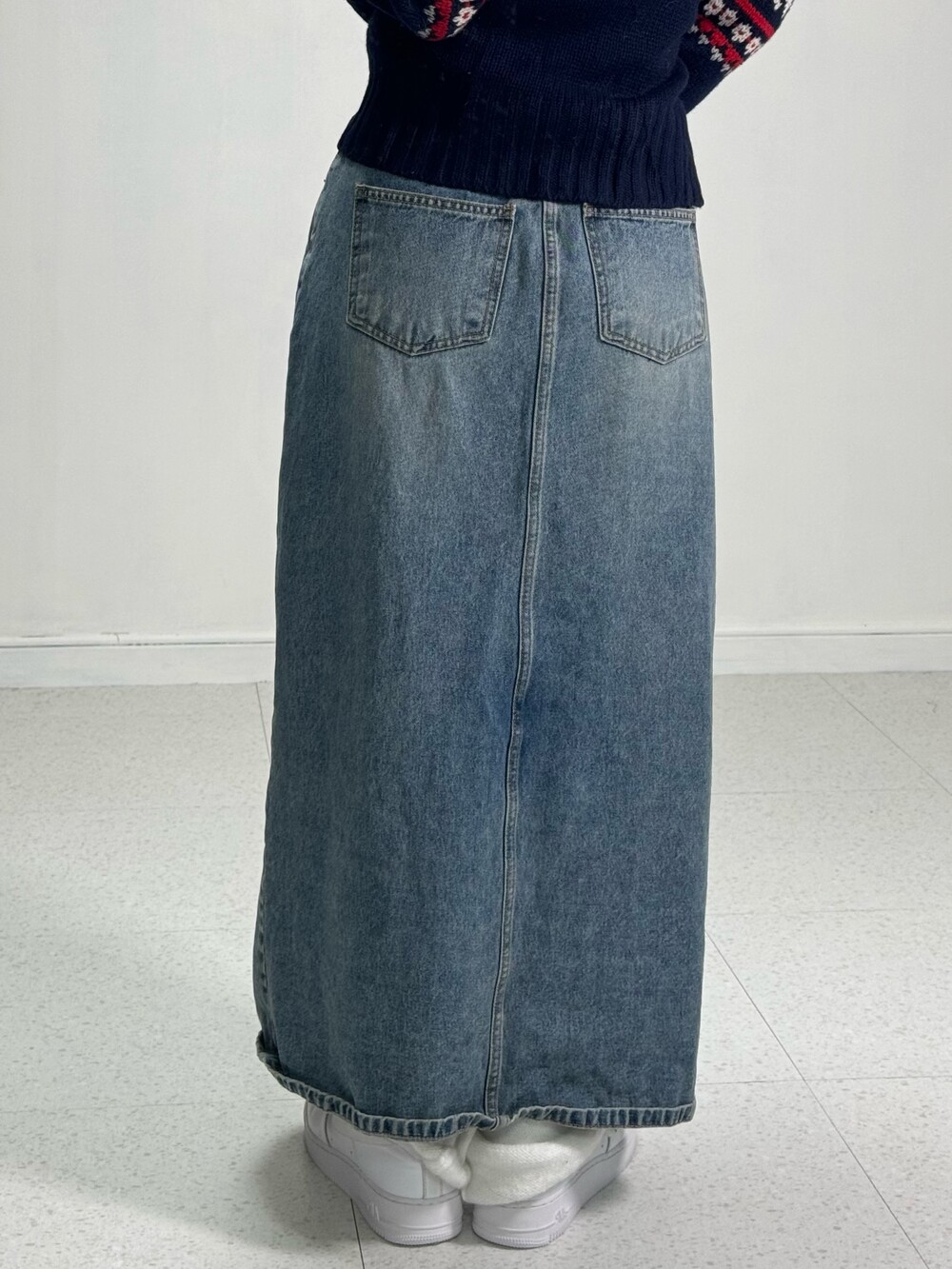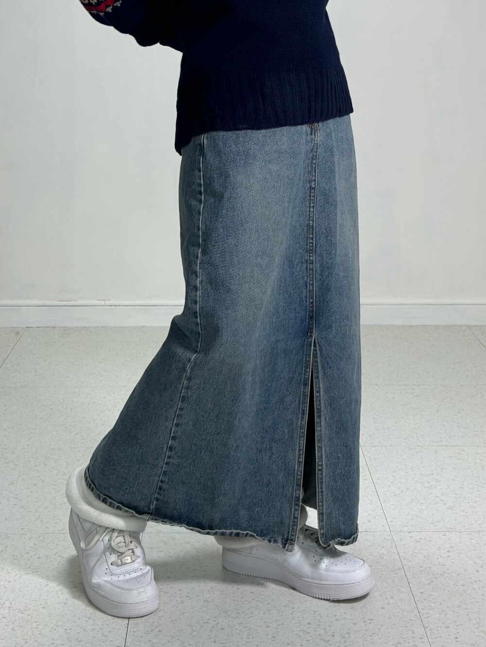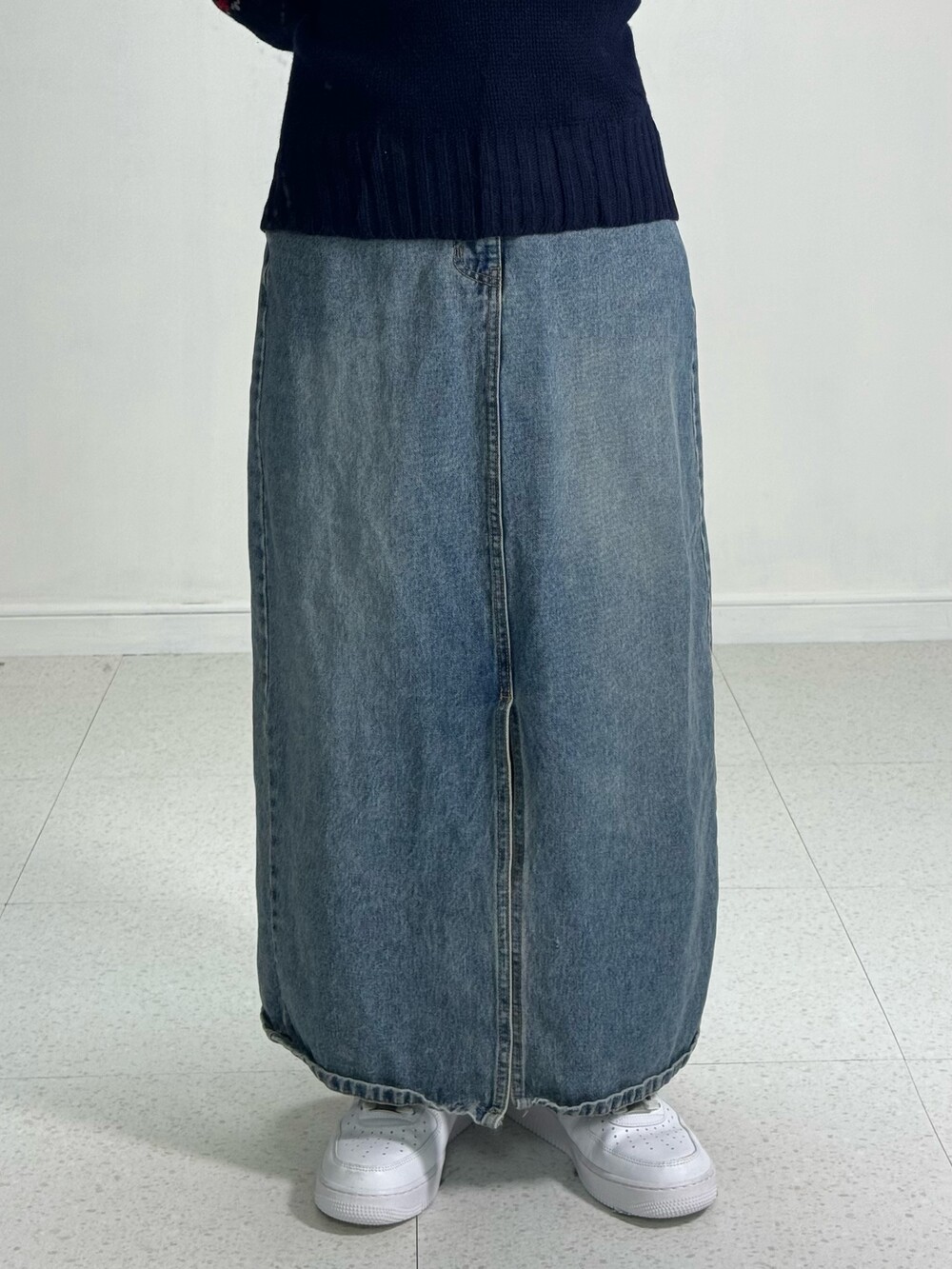 •맥시한 기장의 데님롱스커트에요! 앞에 트임이 있어 더 예쁘고 활동할때도 편안하답니다- 갓성비 가격으로 합리적으로 입어주셔요 ㅎ ㅎ