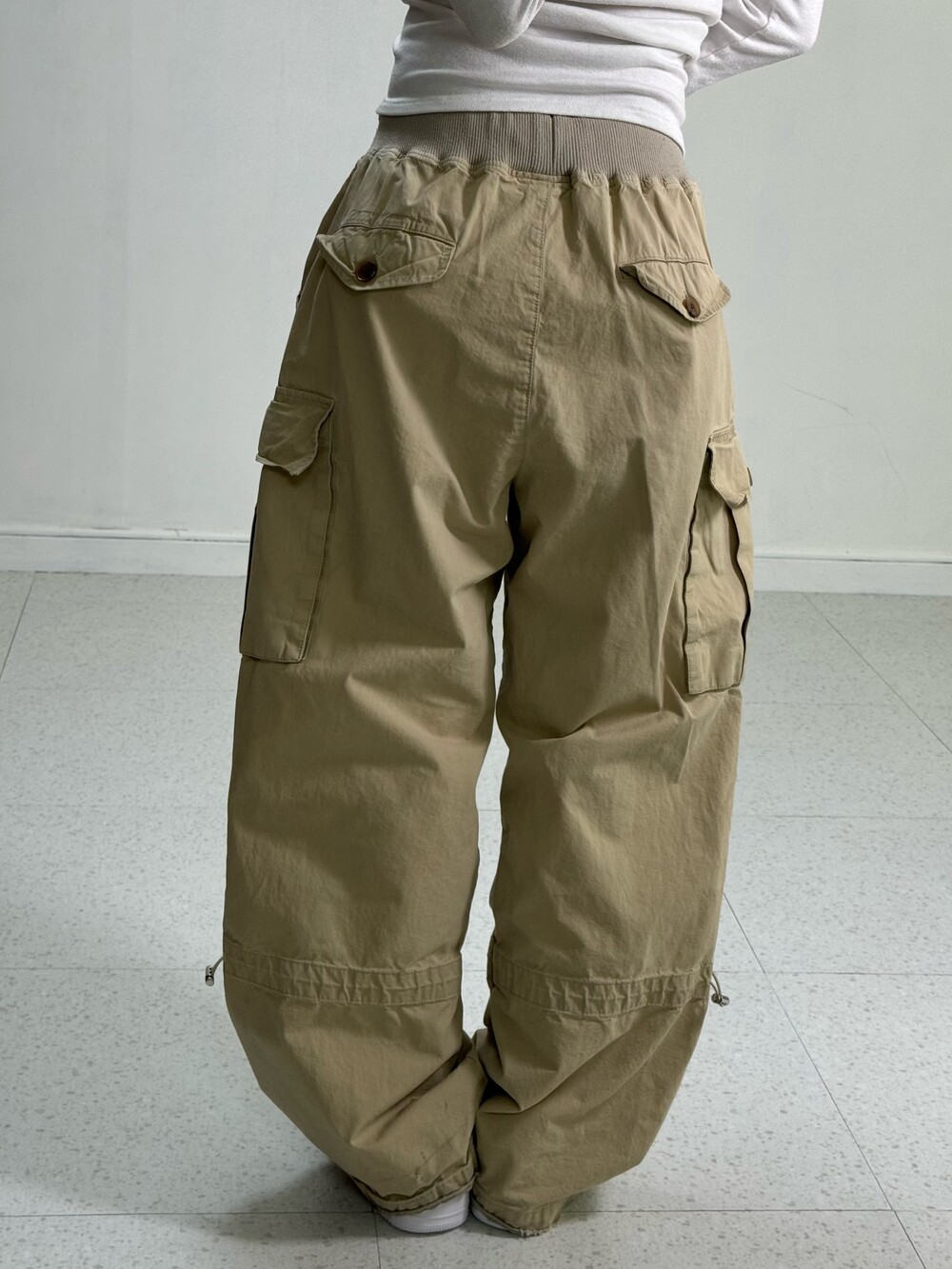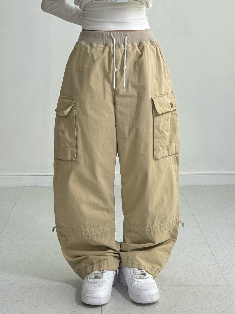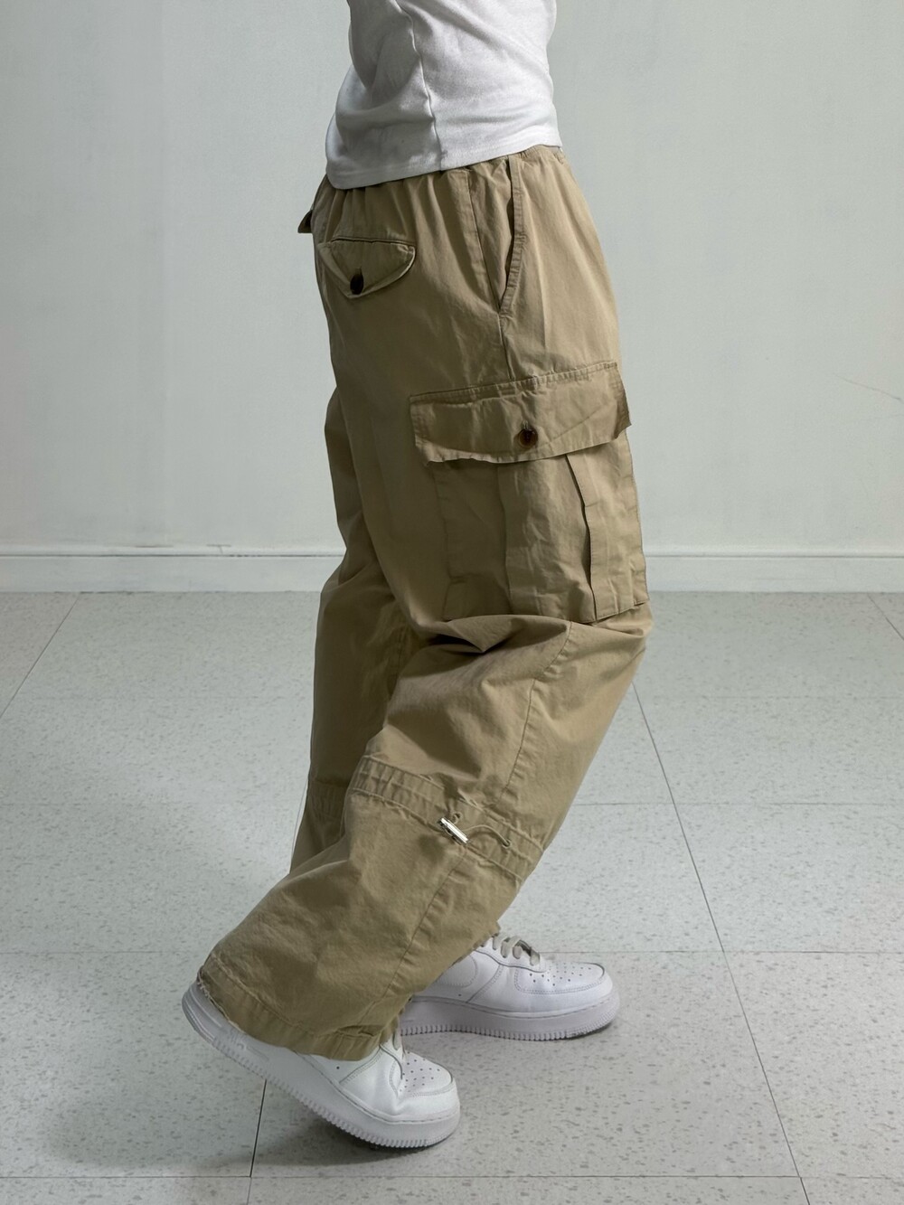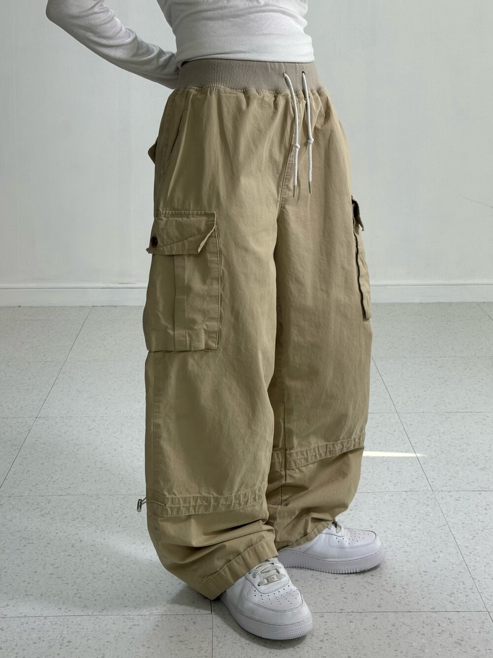 •바스락 원단의 베이지 브라운 카고팬츠 입니다! 빅포켓 디자인이 들어가 귀엽구 정강이쪽 스트링 포인트가 들어가있어 굉장히 독특하고 매력적입니다:)