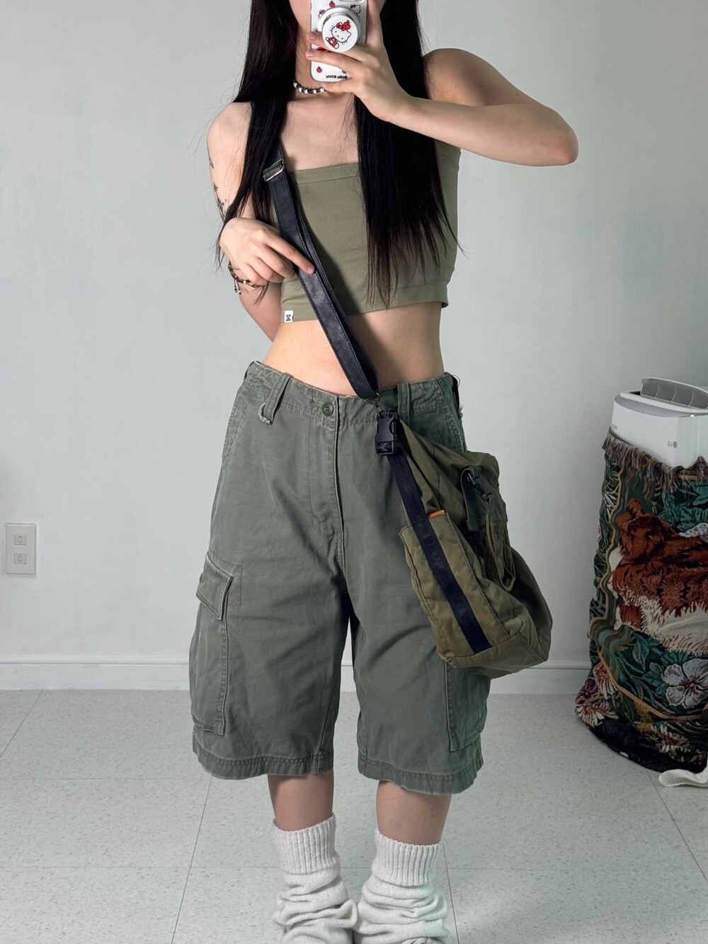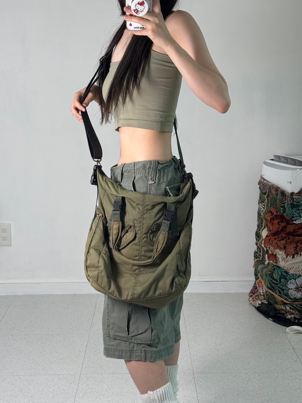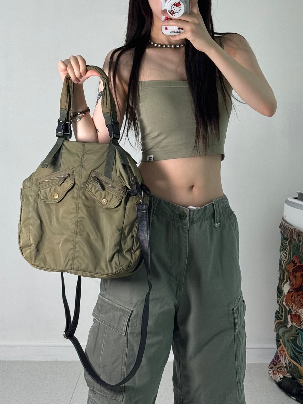 •카고 스타일 카키크로스백! 완전 빈티지한 무드 낭낭이구 줄도 레더로 되어 있어서 퀄리티도 아주 굿 이랍니닷 ㅎㅎ