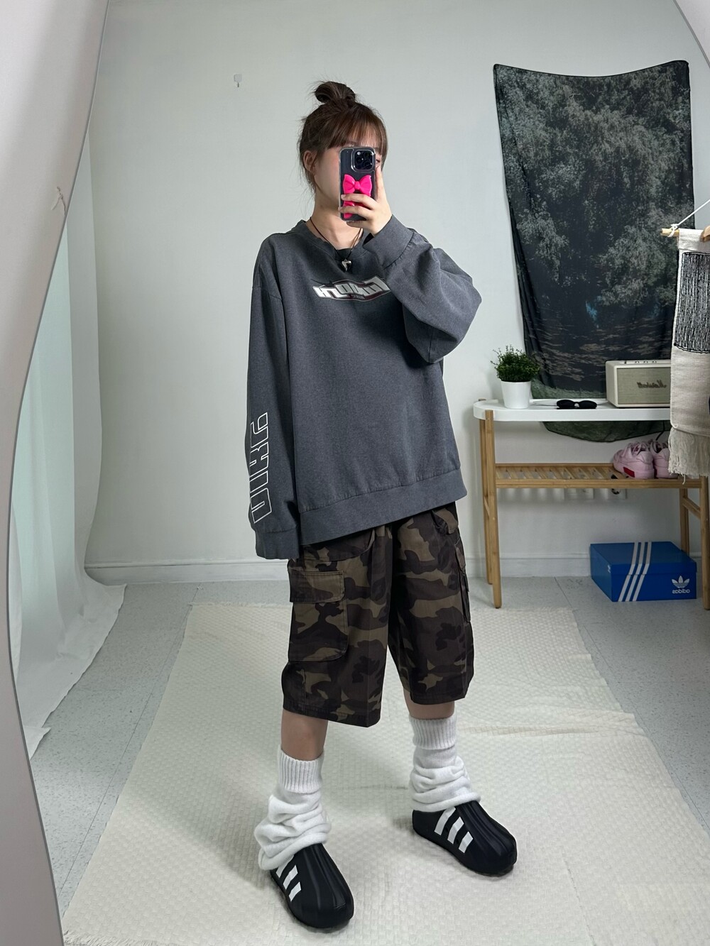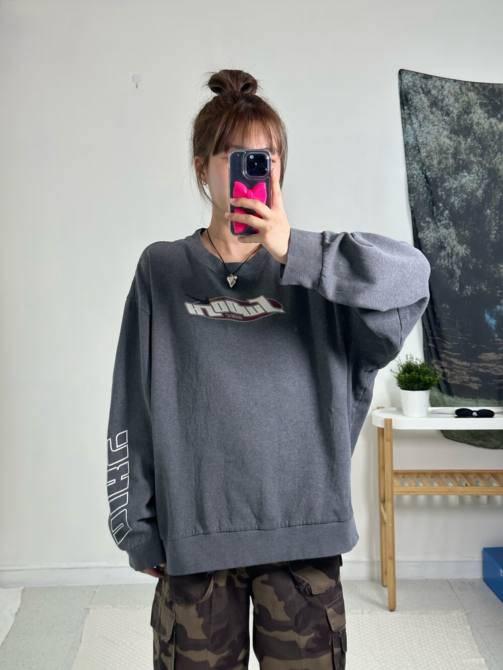 •아방방한 맨투맨 끝판왕- 식구님들 요거 디자인 정말 야무지지 않나요ㅠㅠ 소매에 나이키 프린팅과 앞에 스우시라고 적혀있는 디자인.. 심지어 스우시도 귀여운 위치에 들어가 있어 더욱 희귀하고 사랑스러운 제품이라는거! 친구랑 겹칠 일 절대 음슴