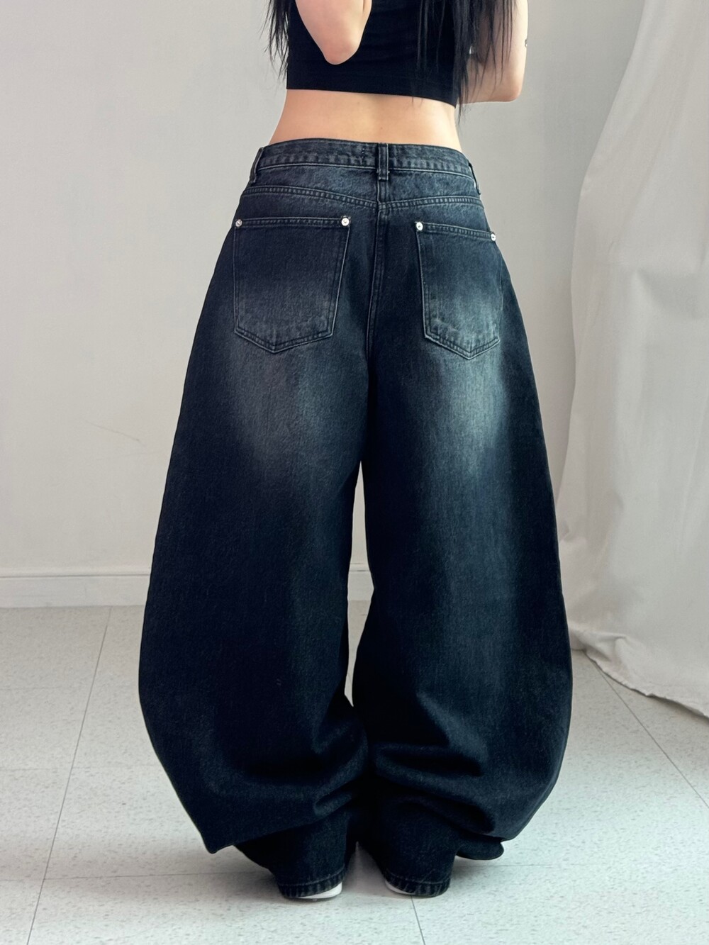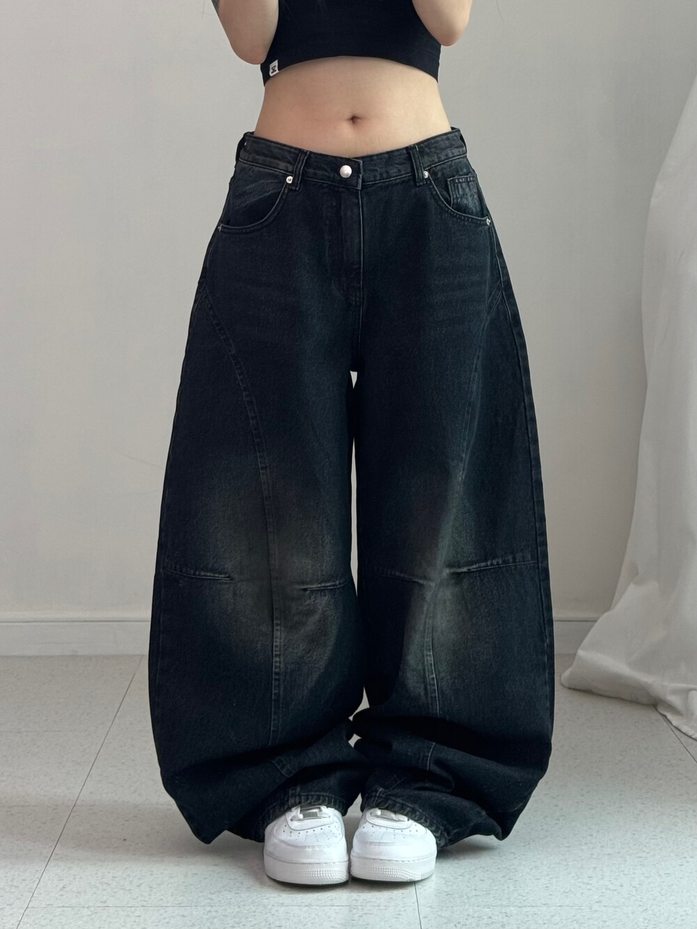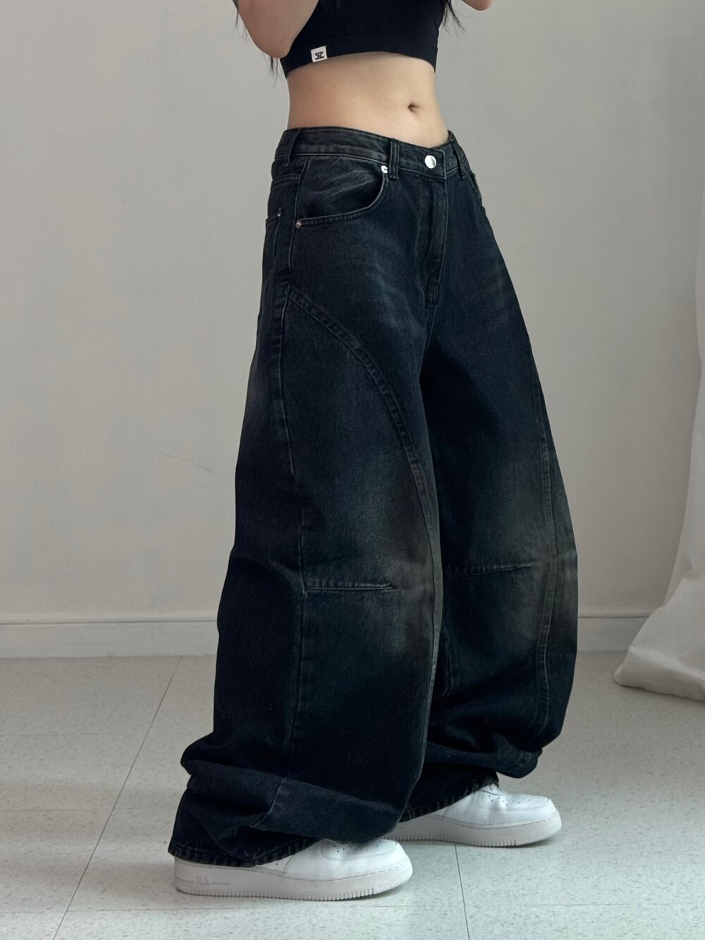 •입으면 바로 뉴진스가 되,, 팬츠 입니다^^ 빈티지한 워싱감과 디자인! 와이드한 핏까지.. 기본 티만 입어줘도 힙쟁이가 될 수 있는 만능요물템이에여🖤