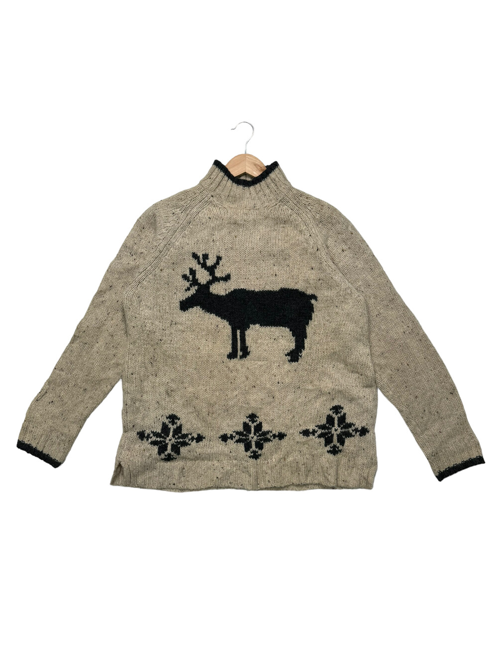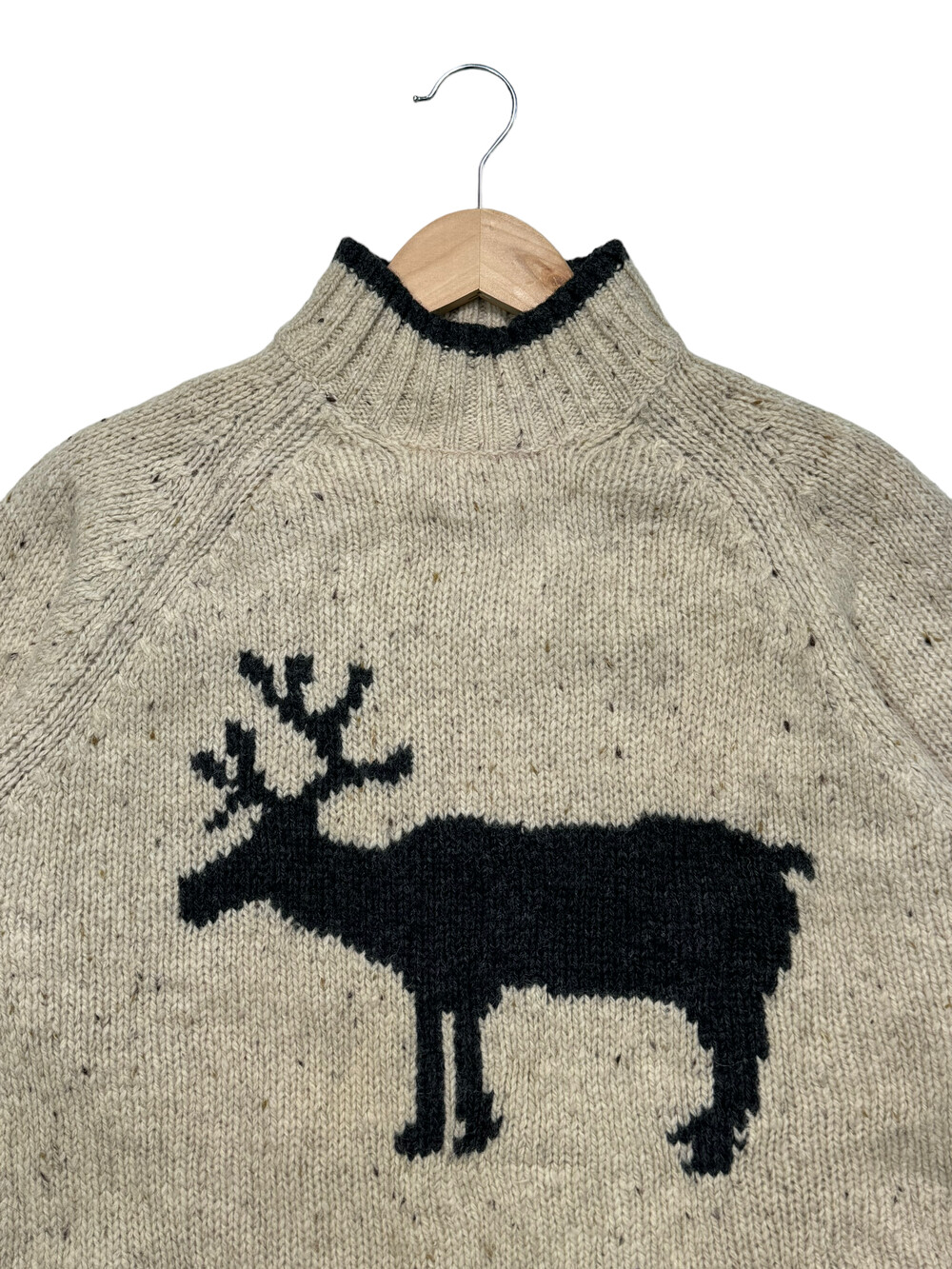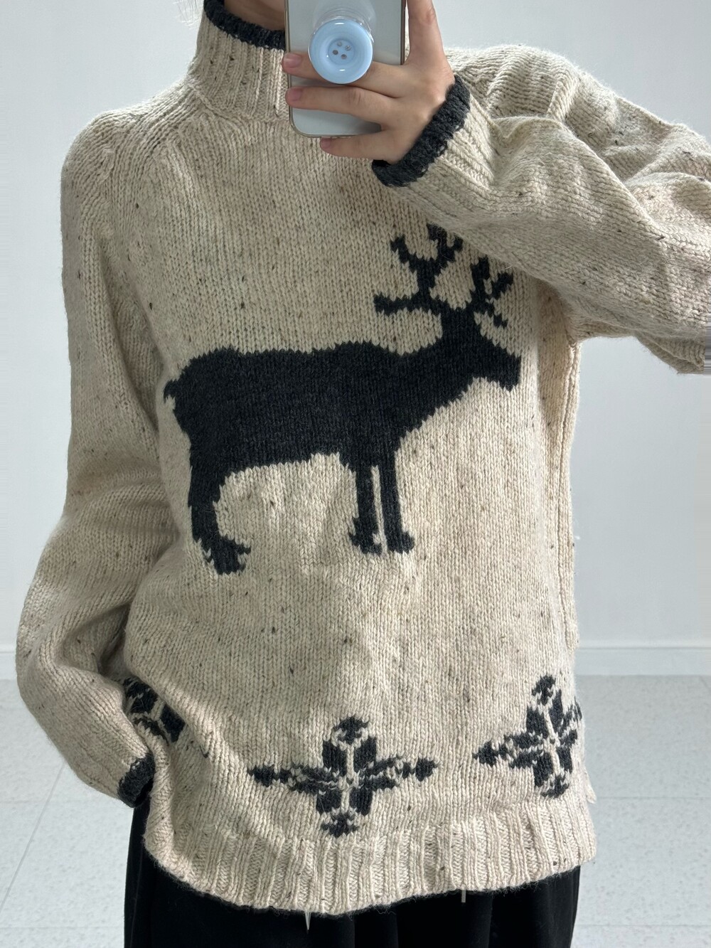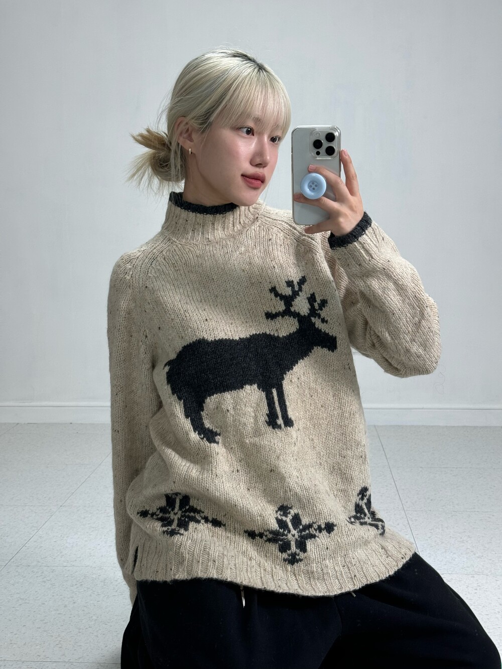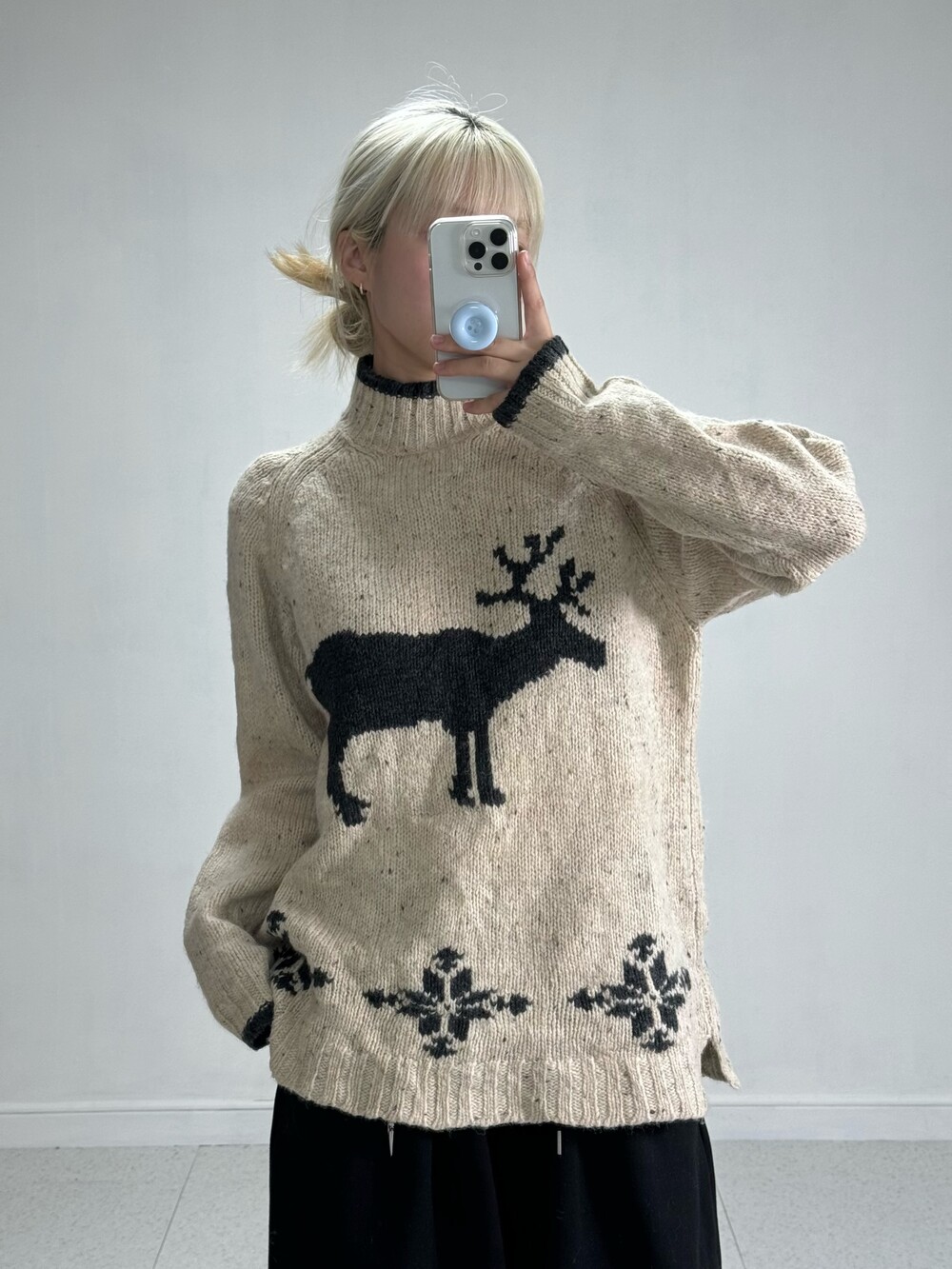 •베이지 오트밀 느낌에 블랙으로 사슴이 들어가있는,, 정말 완벽하고 사랑스러운 니트에요! 루즈한핏에 완벽한 반폴라 디자인 아이템 이랍니다 🖤