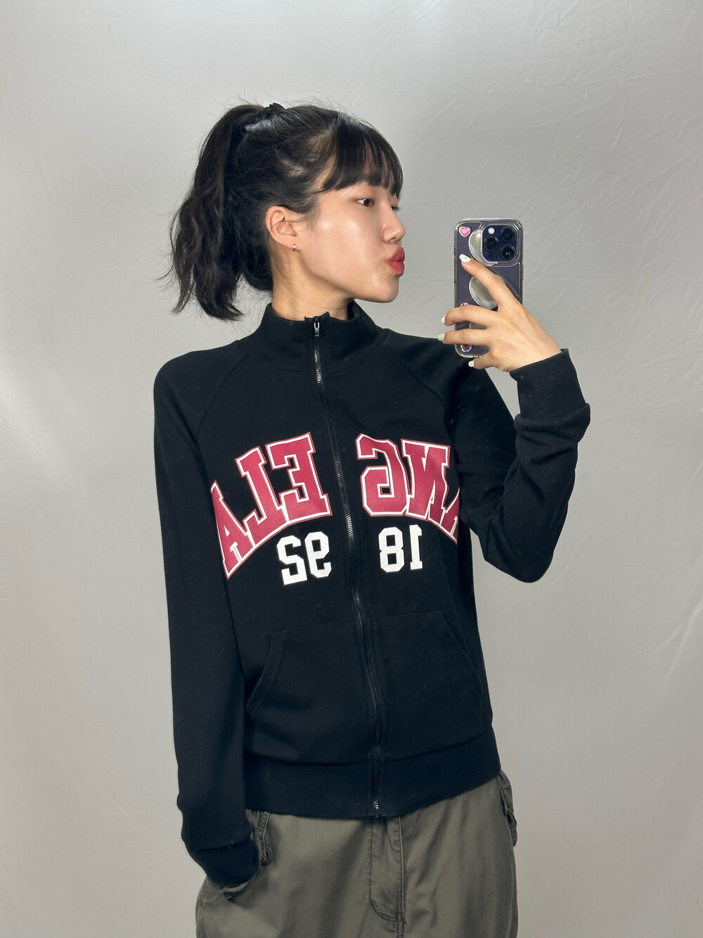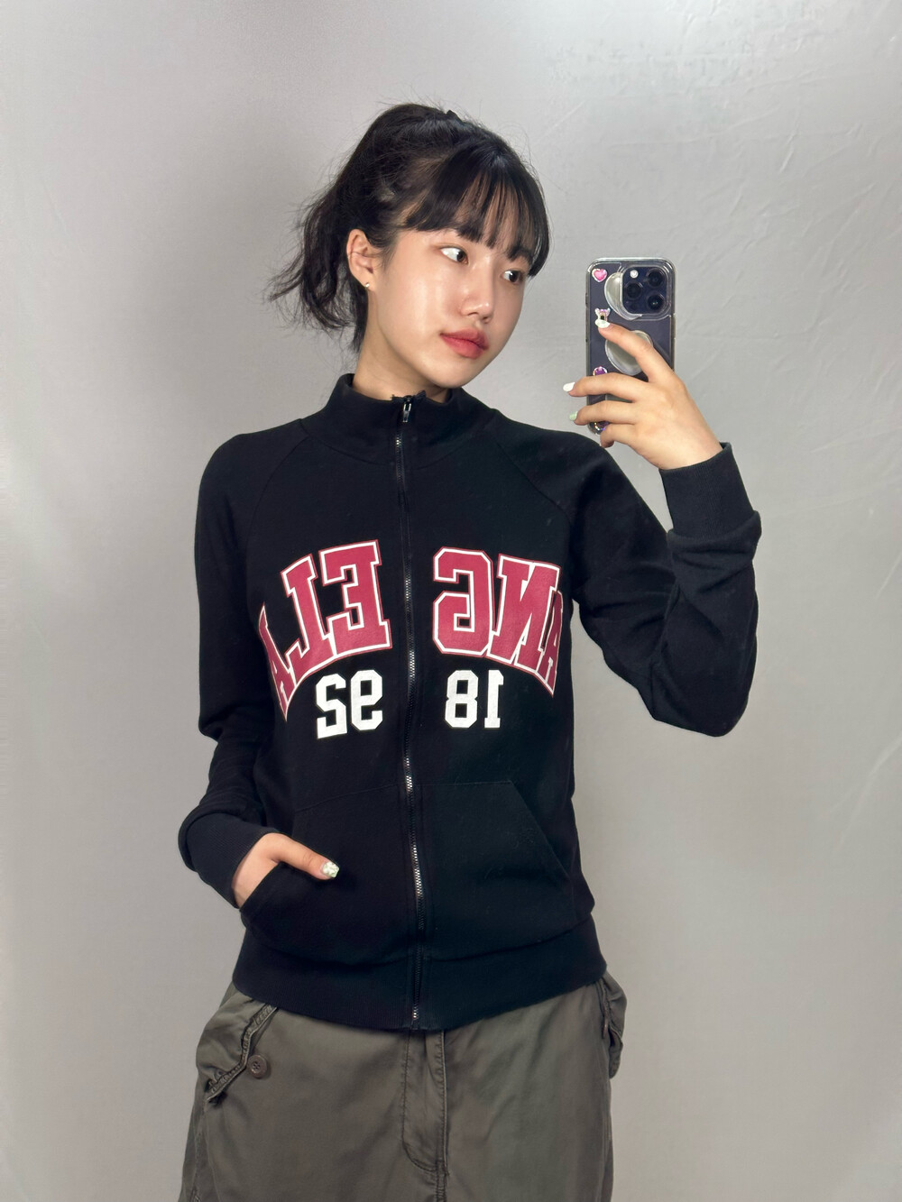 •블랙컬러의 얇은 코튼 집업이에요! 하이틴스럽게 가벼운 탑 입어주고 요고 걸쳐줘도 예쁘구 지금 날씨에 입기 딱 좋아요🖤